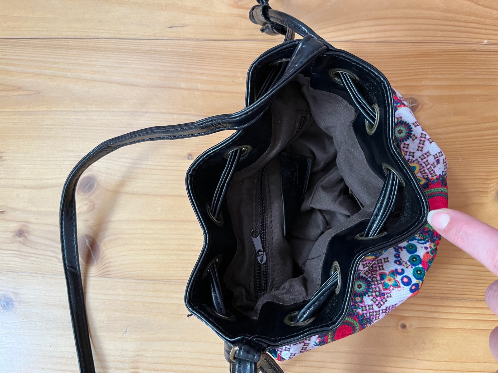 Dievcenska kabelka - batôžtek, nastaviteľný ramenny pruh, vnútorne vrecko, sťahovanie šnúrky