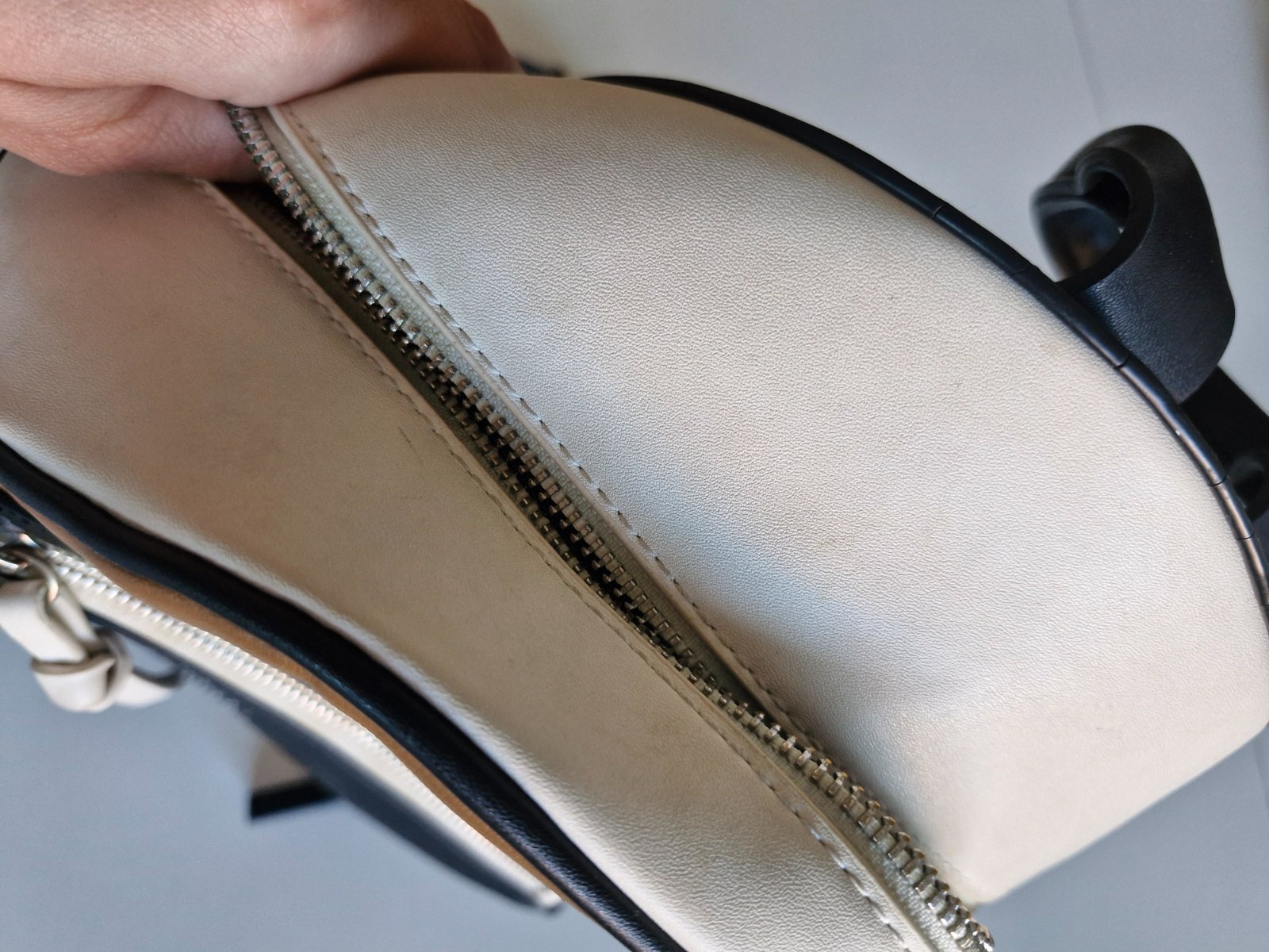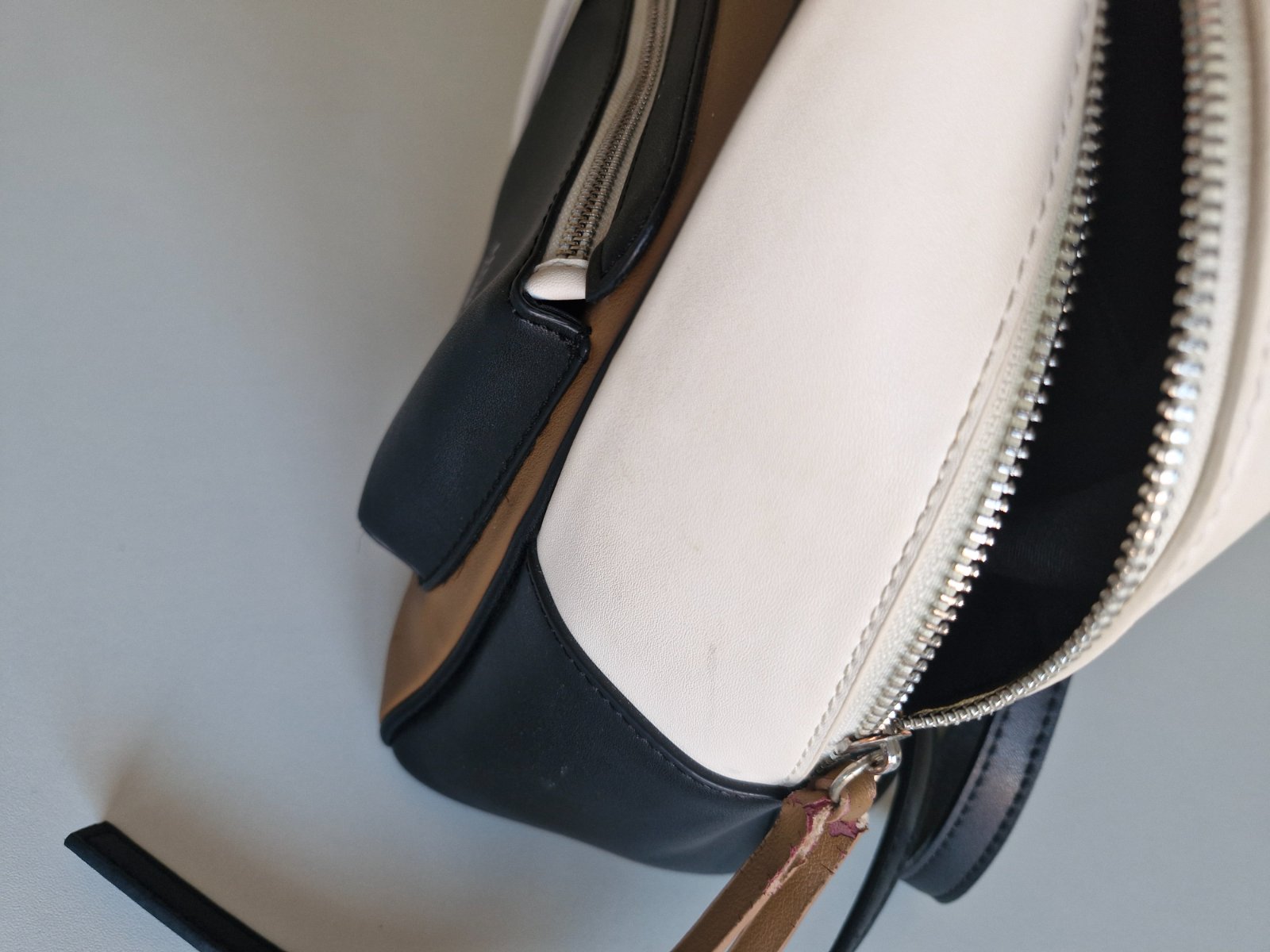 menší..stav vidíte na foto,hore putko a okolo zipsu ošúchané(všetko pekne vidieť na foto..)snažila som sa naf..,je v peknom nosenom stave,až na tie chybičky,ale ešte určite poslúži.v skutočnosti to...