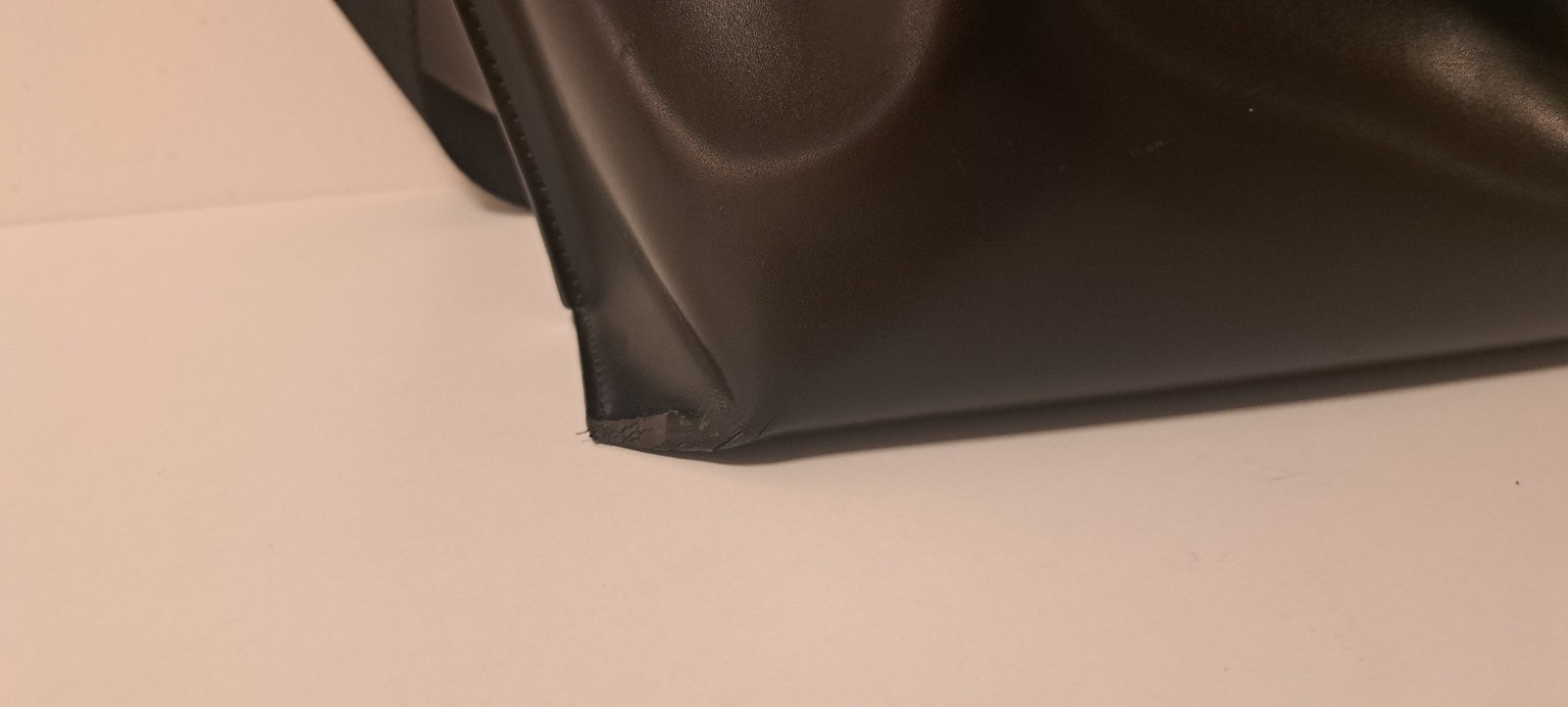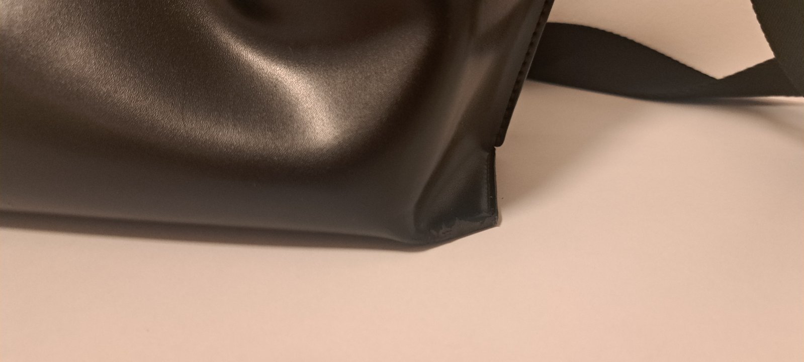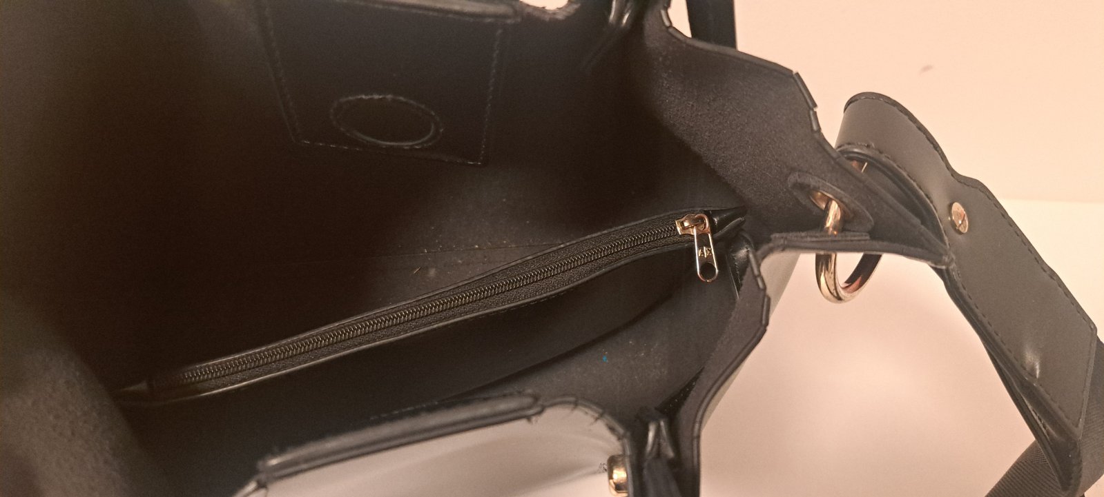 Predám čiernu lesklú kabelku, privesok, 5 priehradok, 2 na zips, jedna na patentný gombík, anti dust bag, výška 35cm, sirka 33cm, jedno vnutorne vrecko je z časti rozparane