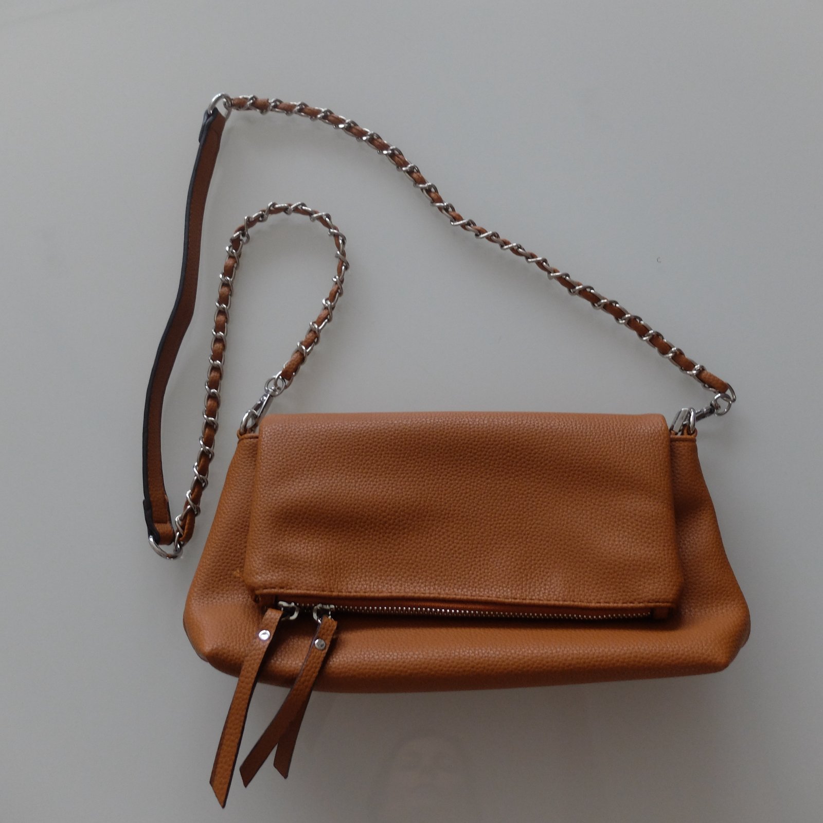 Predám kabelku s dlhým remienkom, hnedej farby. Veľkosť 22 x 18 cm. Dlhé retiazkové ramienko.