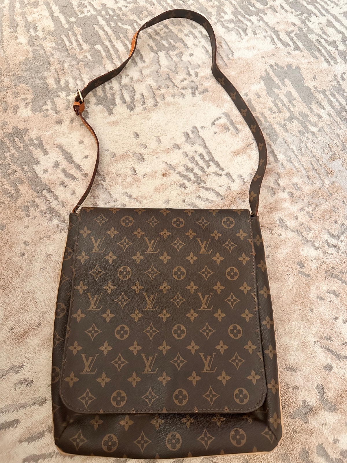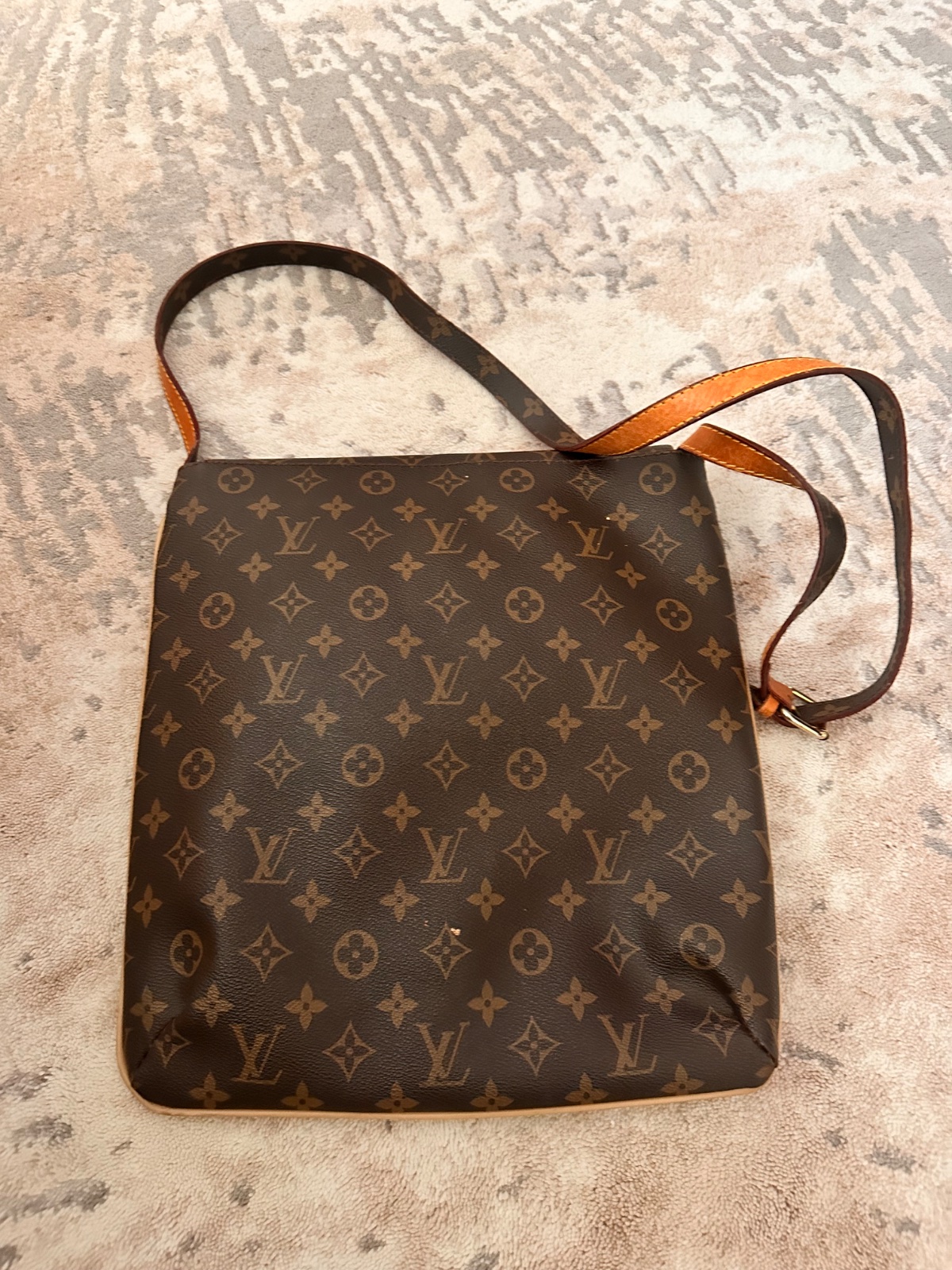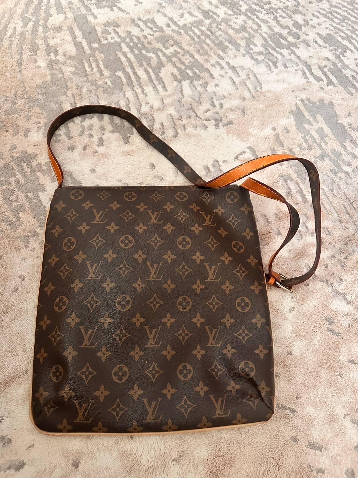 vzor: MK monogram farba: hnedá zlaté kovanie veľká priestranná rozmery: šírka dole 31cm, šírka hore 41cm, výška 29cm umelá nepravá koža