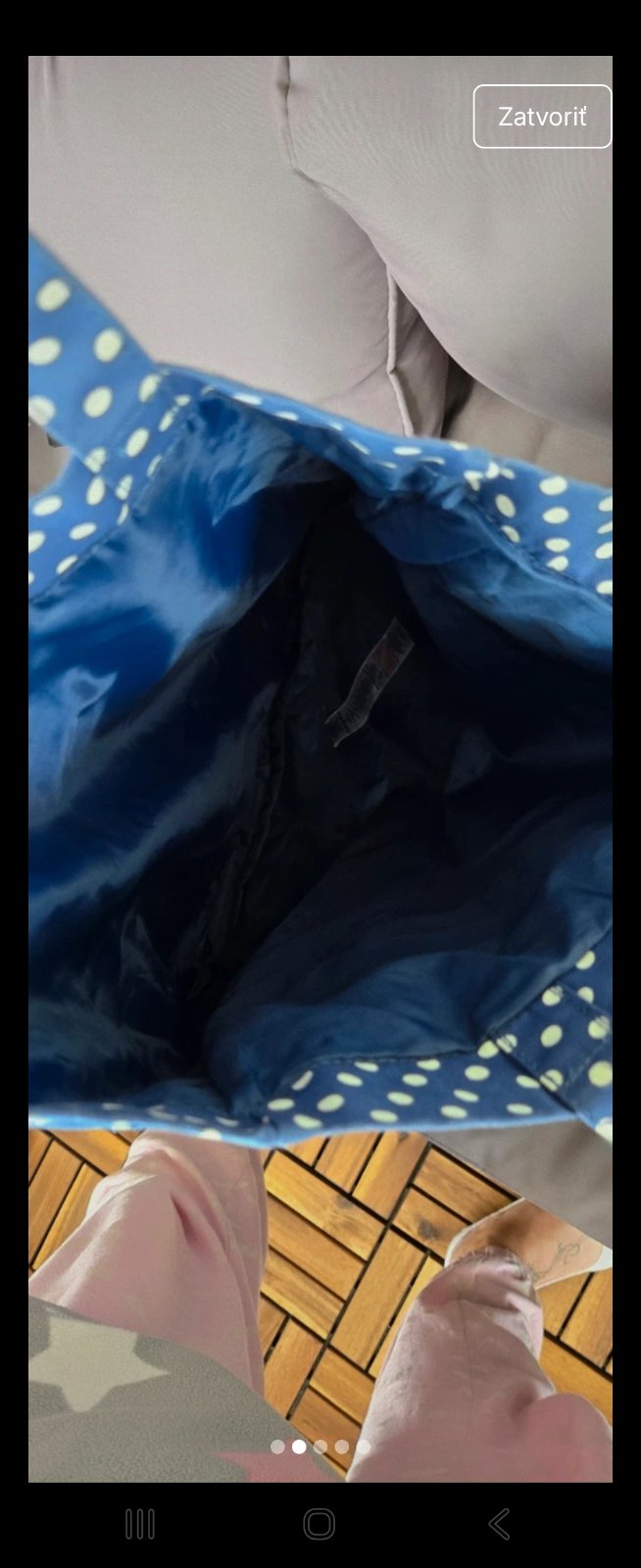 Nova textilna taska - vnutri ma jedno velke vrecko a v nom tri mensie + klip na kluce, zapina sa kabelka na cvok