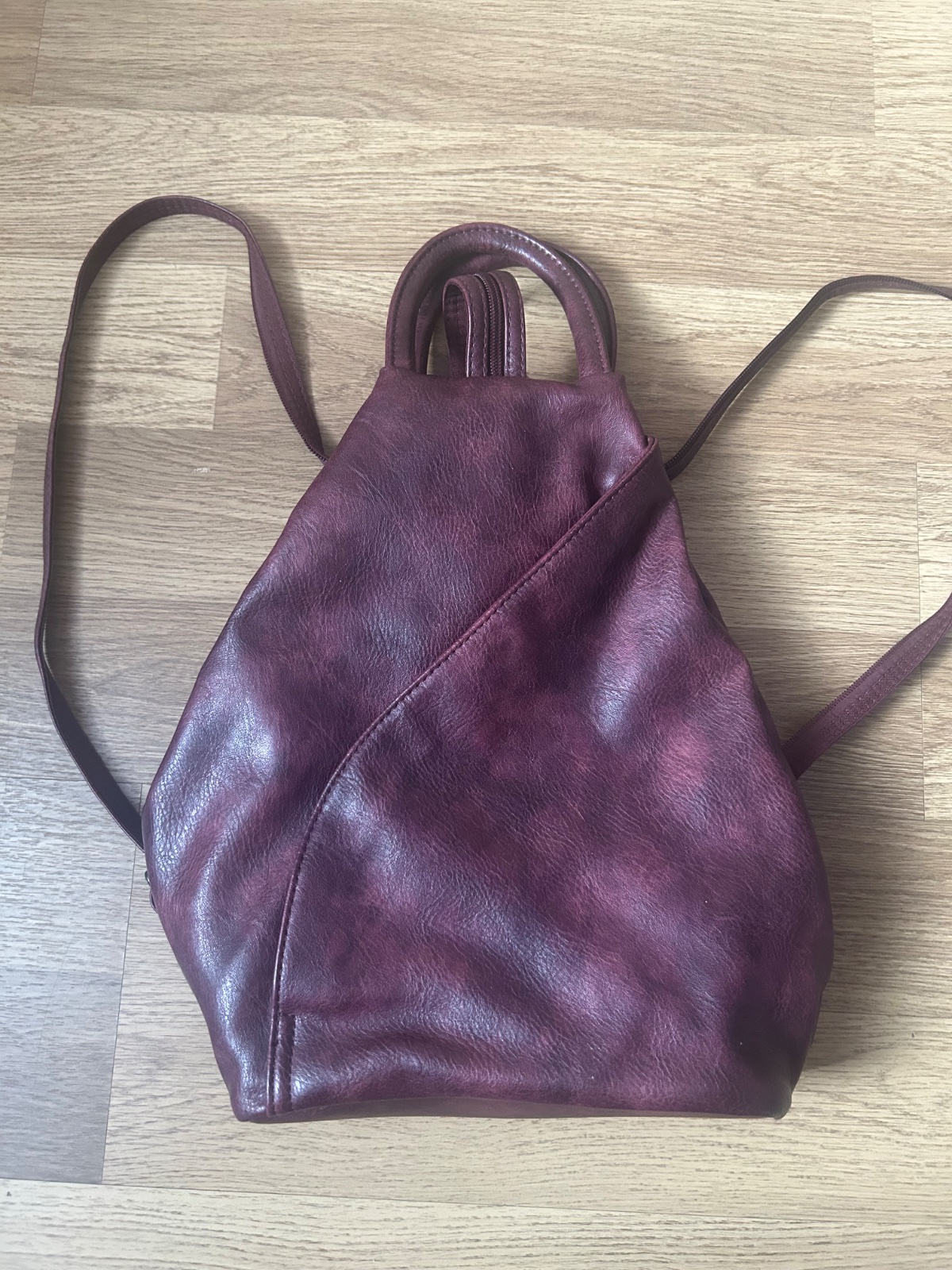 Rozmery 23 x 27 cm, nastaviteľná dĺžka popruhov, farba je niečo medzi bordovou a fialovou, nešlo mi to lepšie odfotiť (pridávam viacero fotiek na ukážku). Už som ho ponosila tak posúvam ďalej za sy...