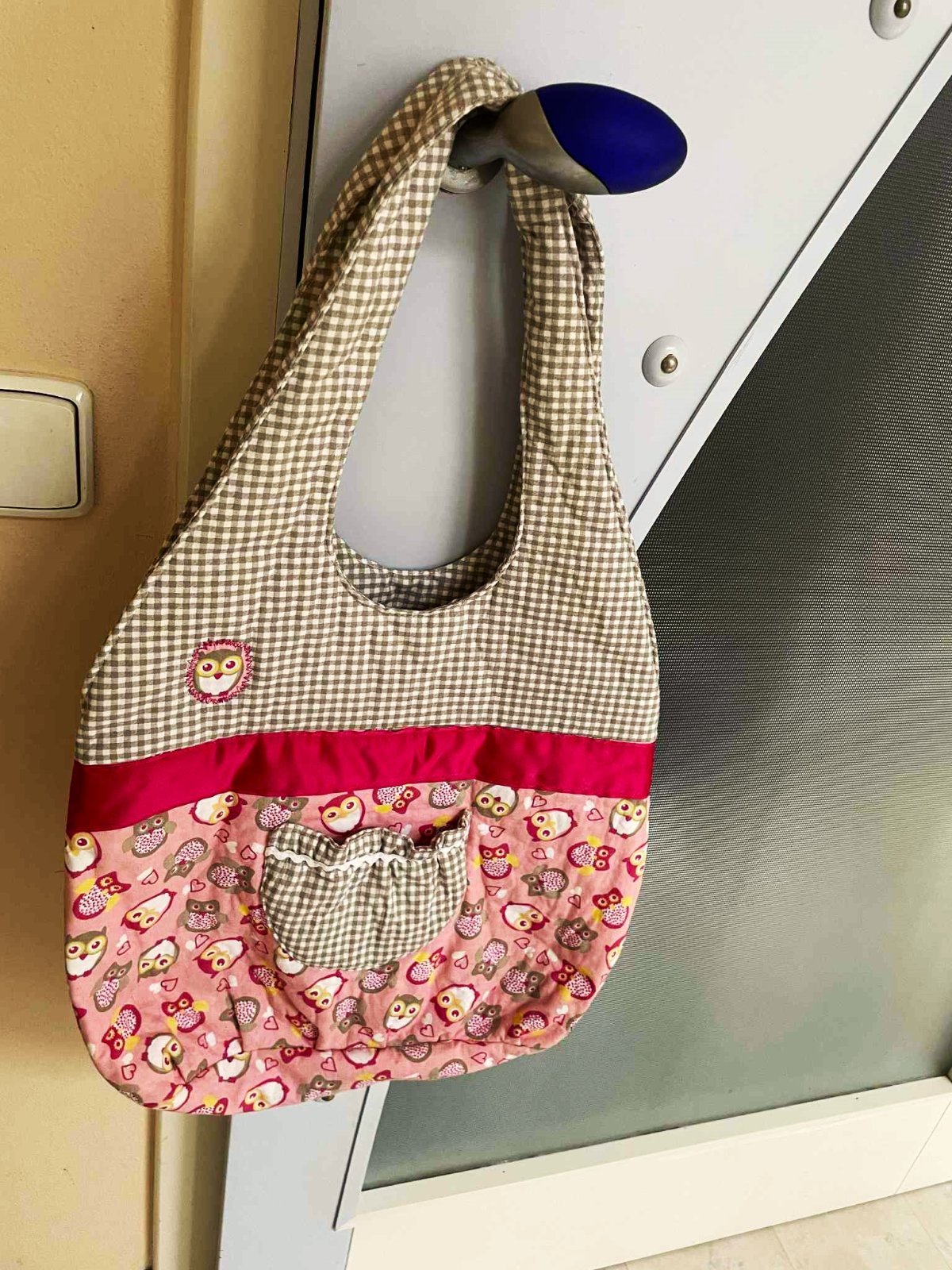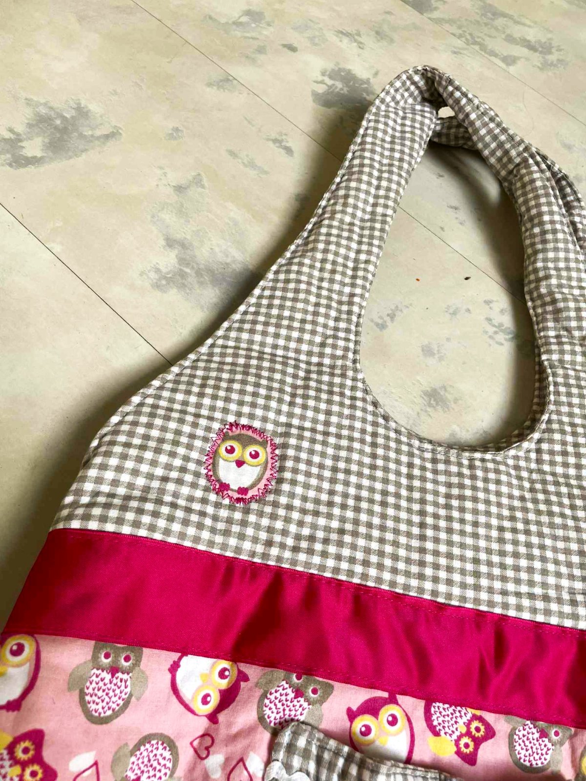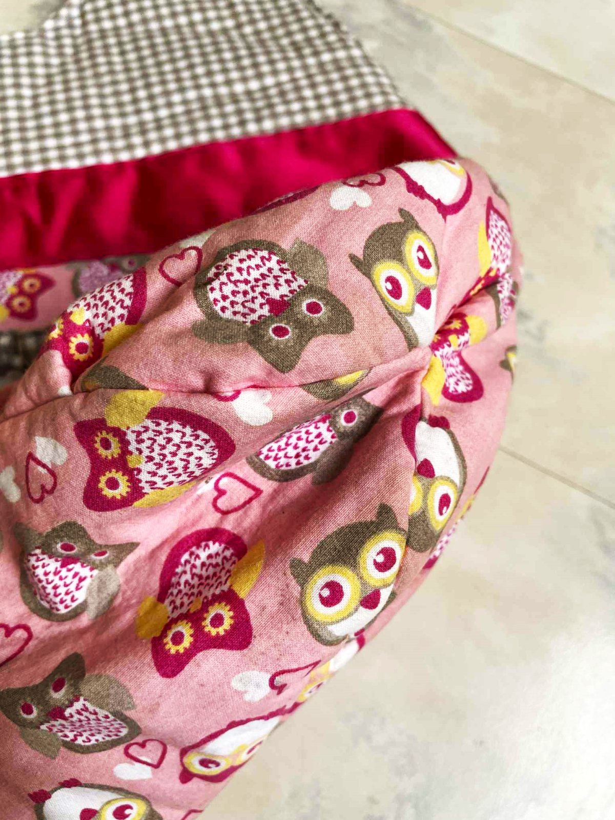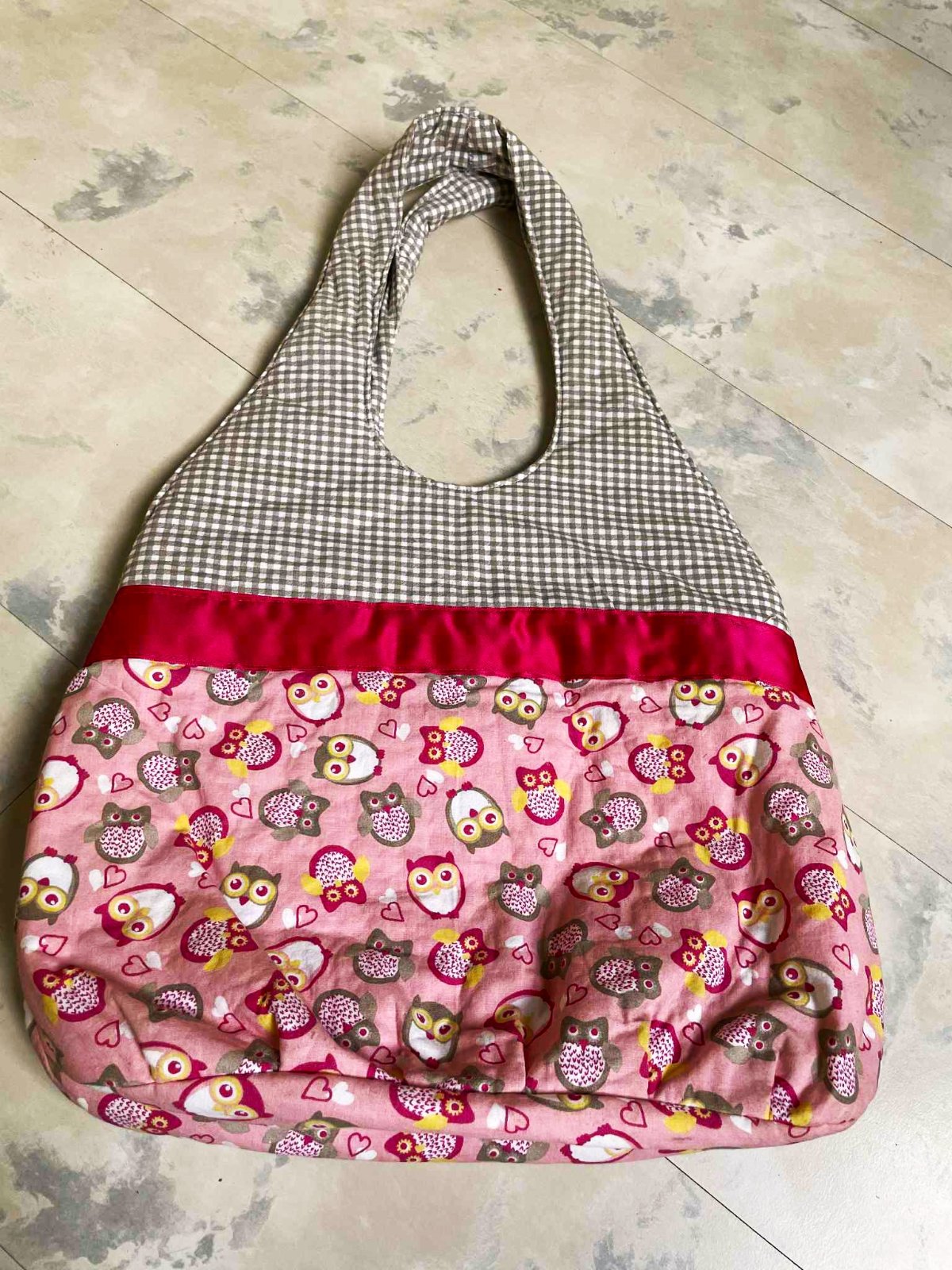 plátenná futrovaná taška,v top stave, bavlna + cyklámenový pruh je z lesklého saténu,pevná a priestranná, šírka = 37 cm,dno = 15 x 37 cm, výška celej tašky s rúčkami = 61 cm,výška meraná v strede = 33 cm,dá sa oprať v pračke
