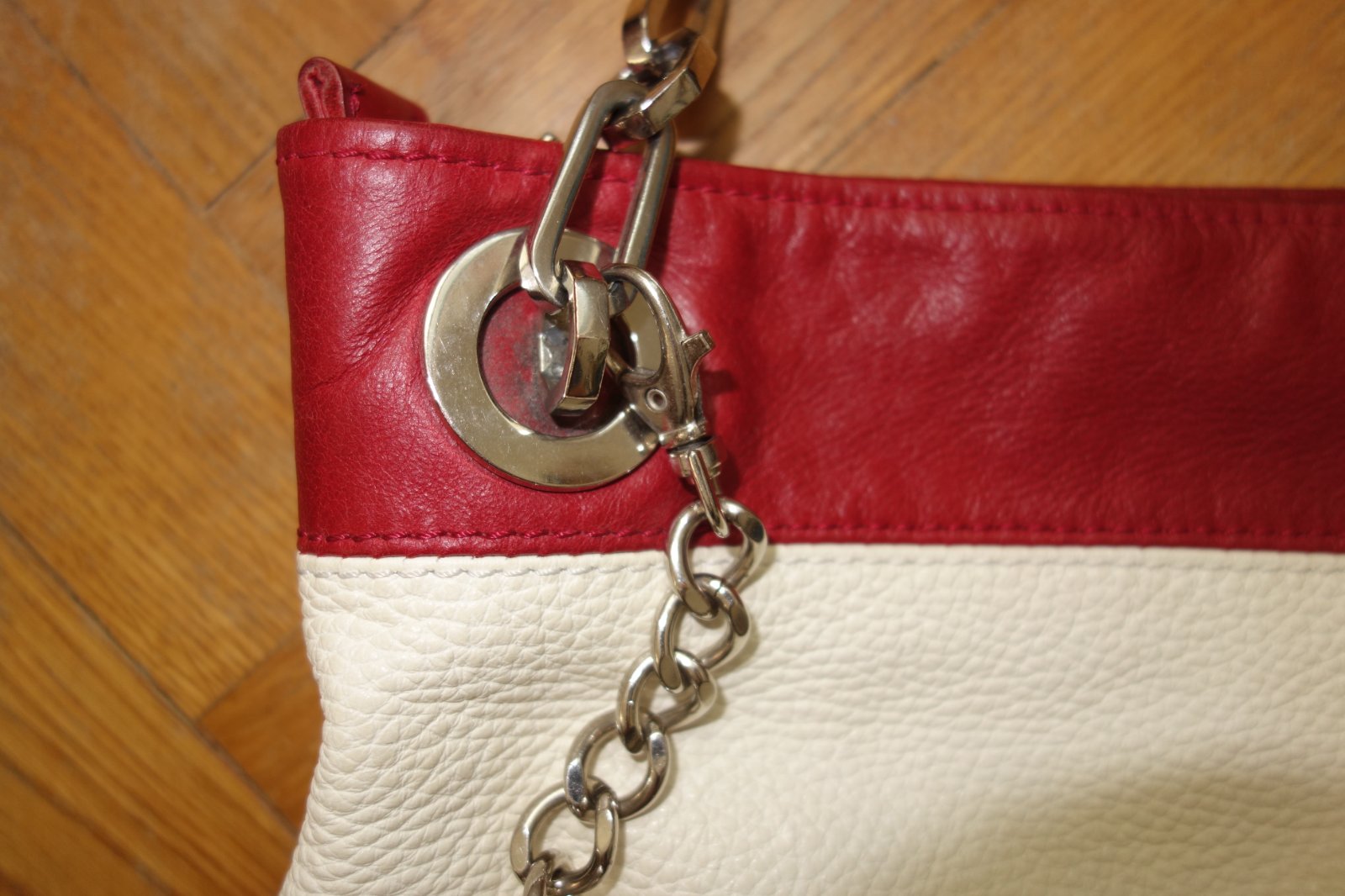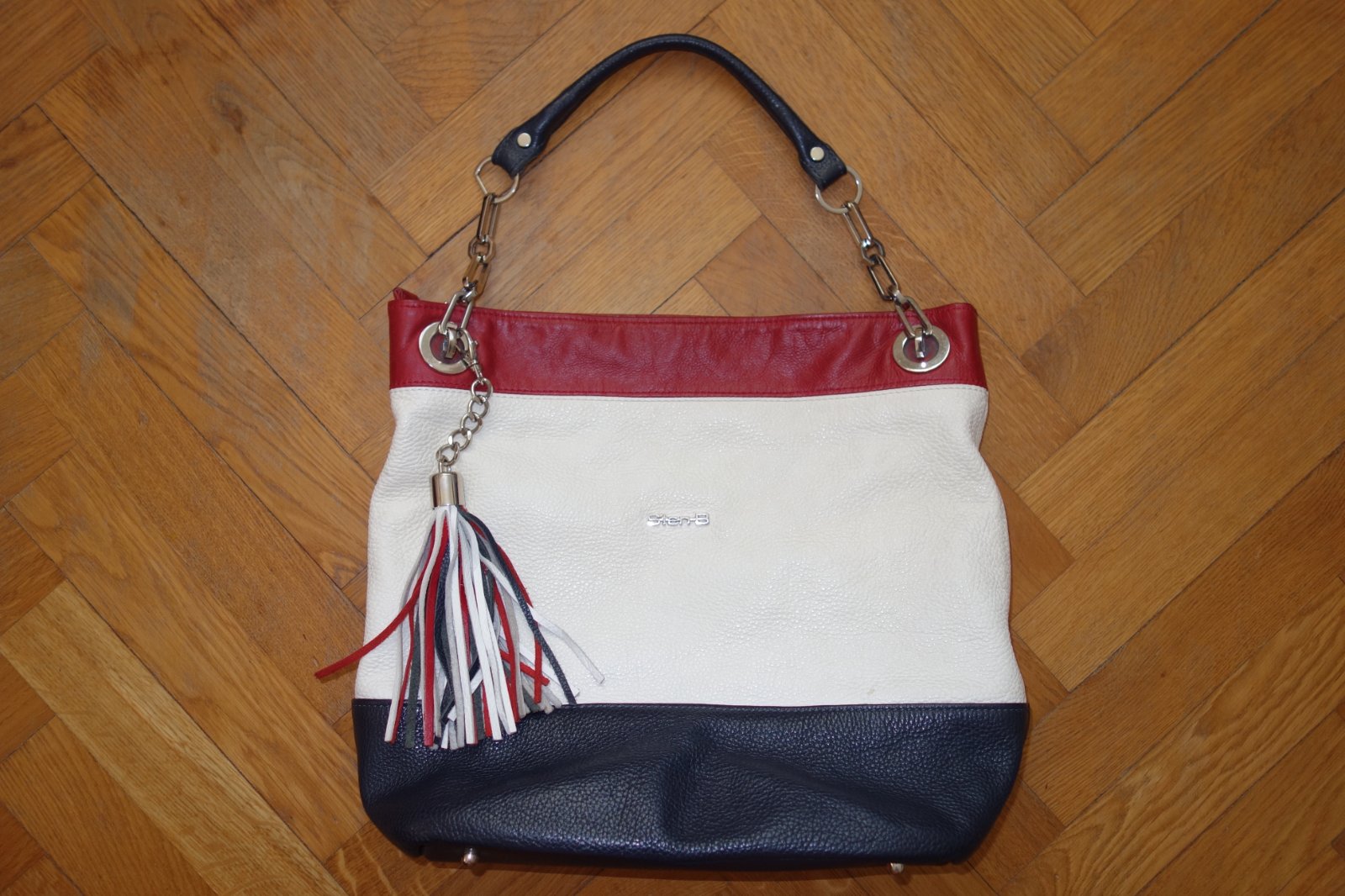 Výborný stav. Kožená kabelka z kvalitnej talianskej kože. Domáca slovenská ručná výroba. Vakovitý tvar, nosenie cez rameno alebo v ruke. Prívesok so strapcom odopínateľný. Zapínanie na zips. Vnútri tri úložné priestory, plus bočné vrecká. 40 x 32 cm. Pôvodná cena 146 €