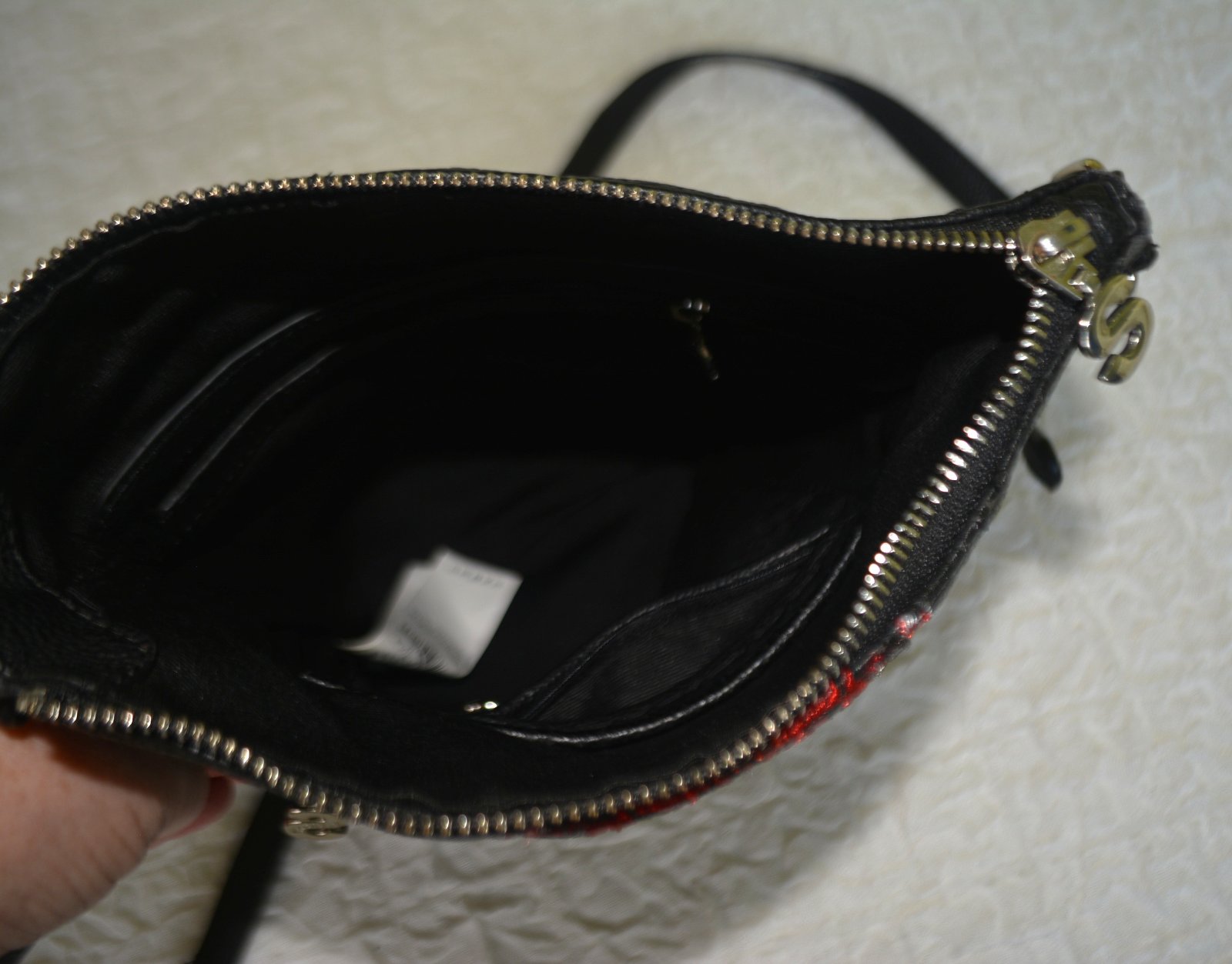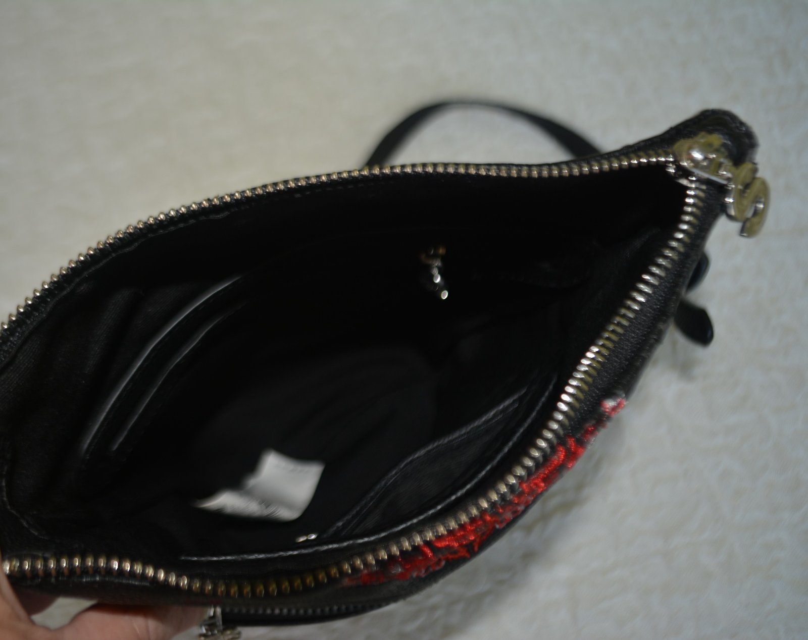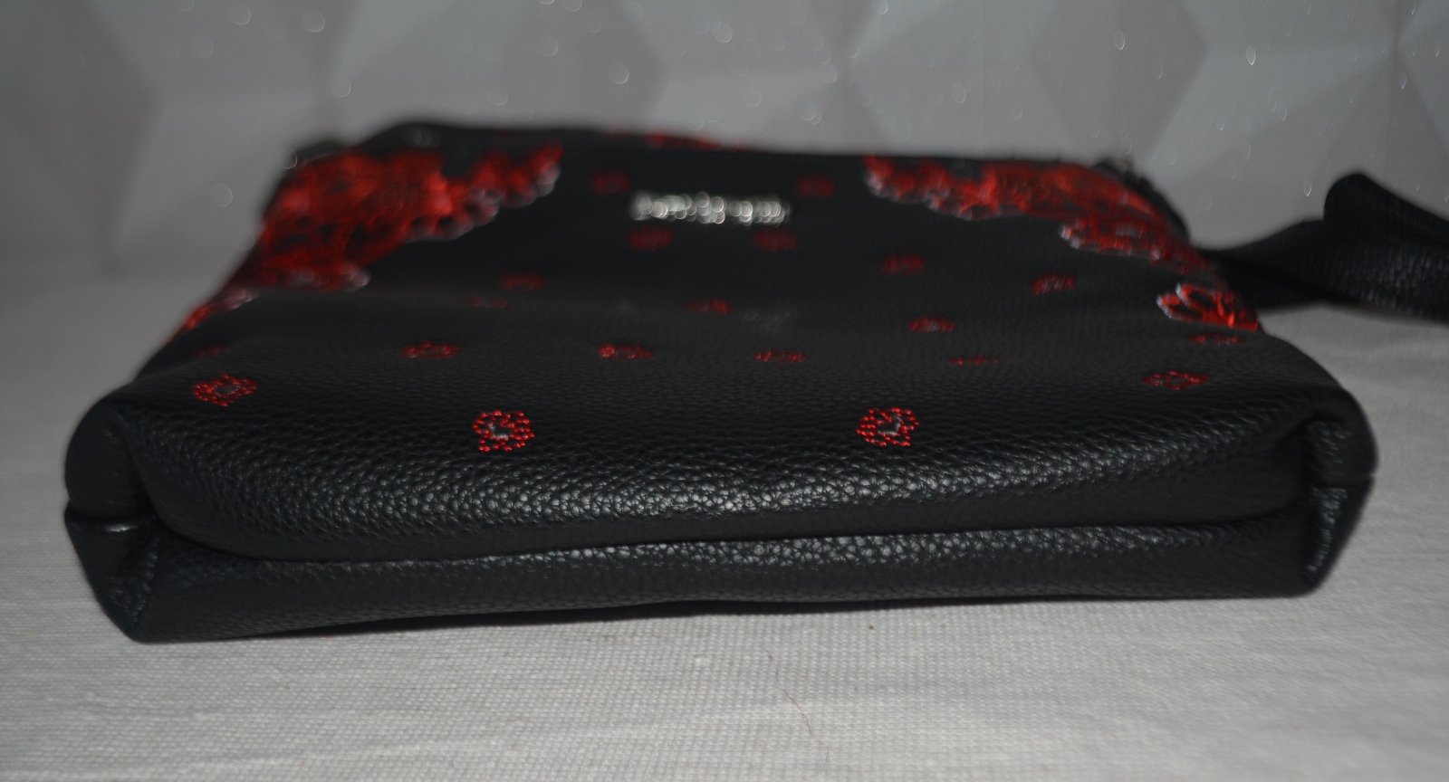 Elegantná dámska crossbody kabelka Manuela Foulard Ghana s červenými výšivkami od značky Desigual. Túto kabelku si doslova zamilujete.