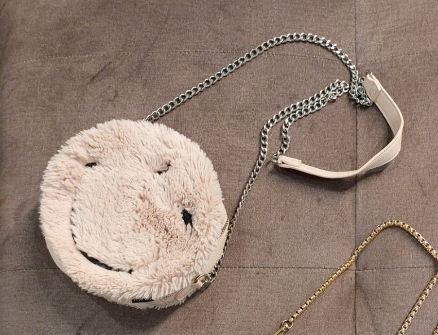 Kabelka pre parádnice, z príjemnej kožušinky, púdrovo ružová so smajlíkom