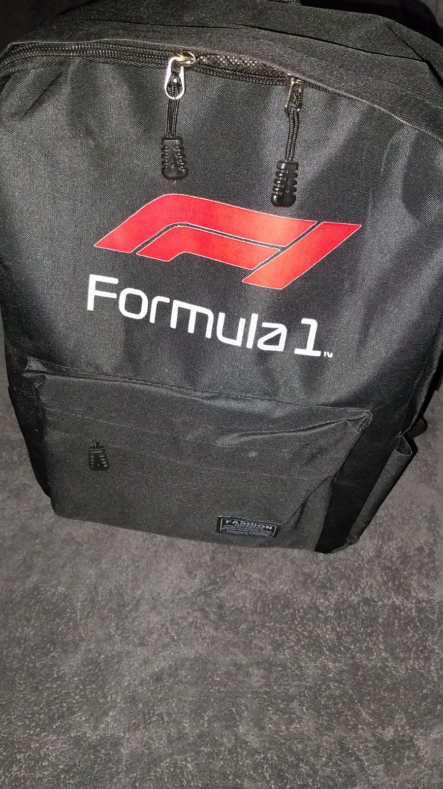Čierny batoh s nápisom Fromula 1