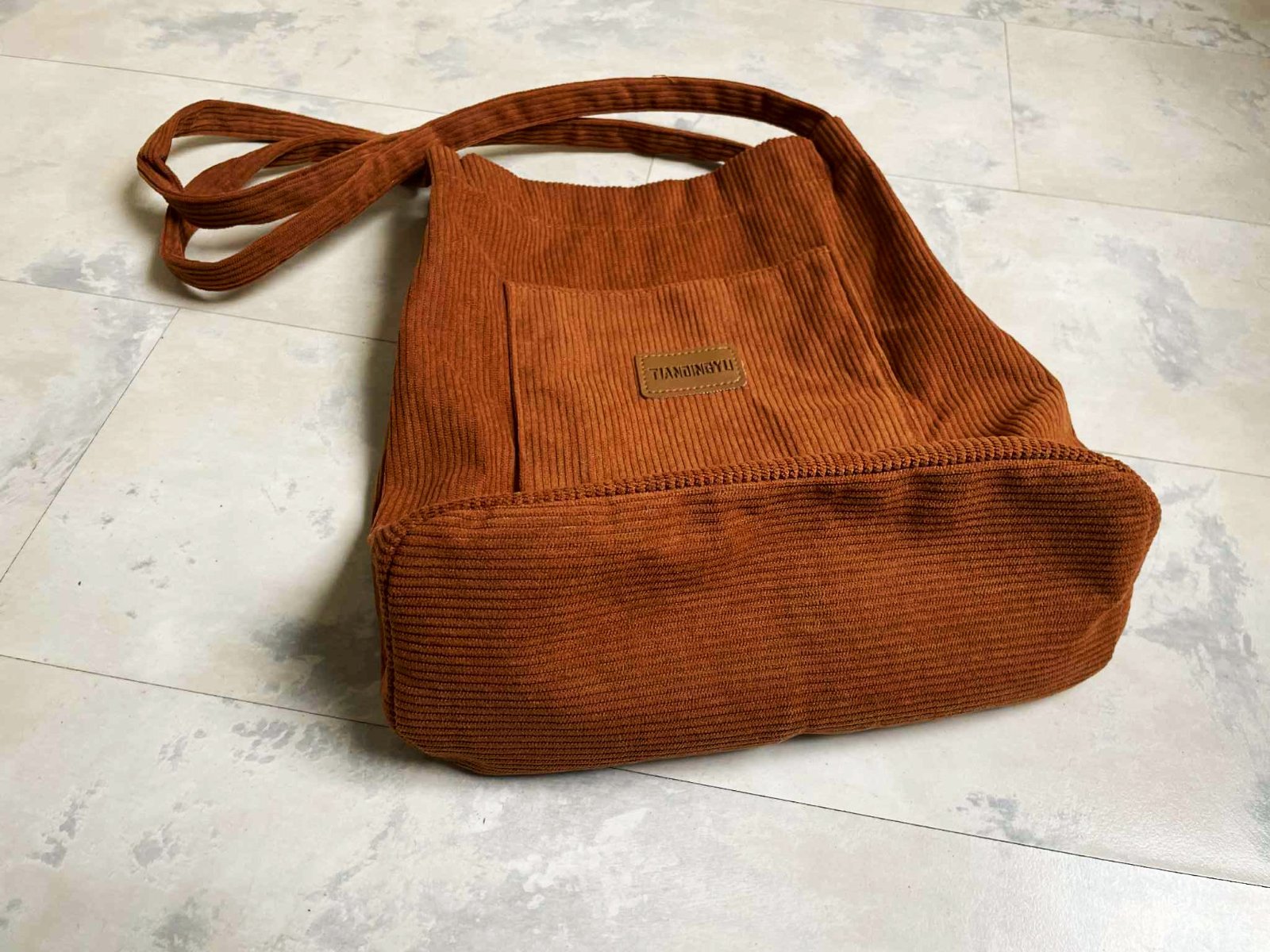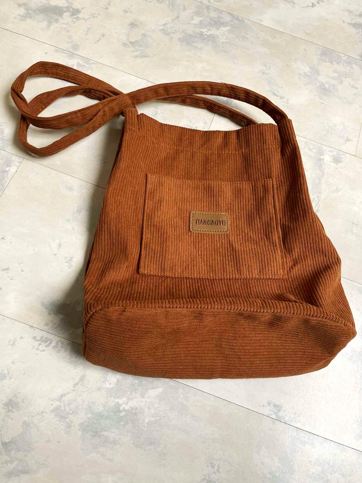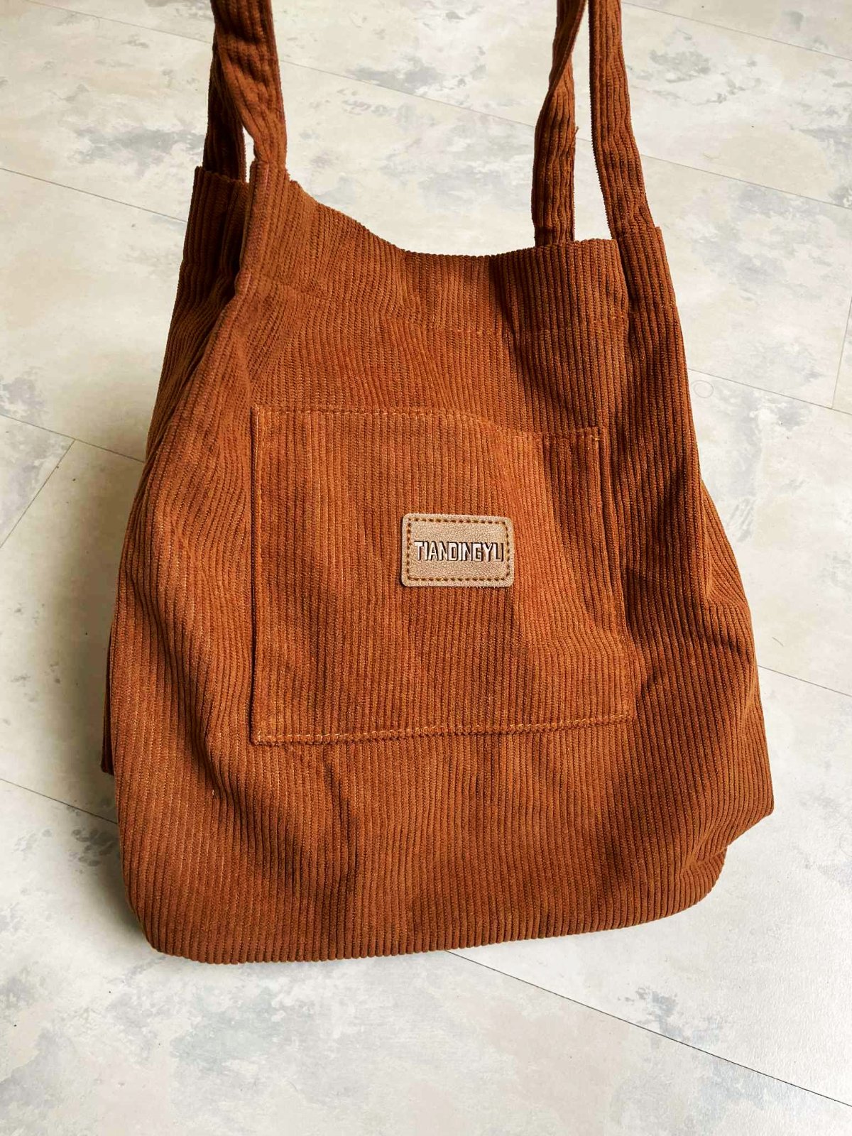 textilná podšitá taška z mančestru na magnetku,výška 33 cm, šírka 28 cm,dno 12 cm, rúčka 65 cm,farba hrdzavo svetlohnedá