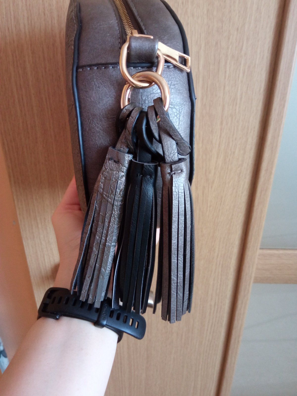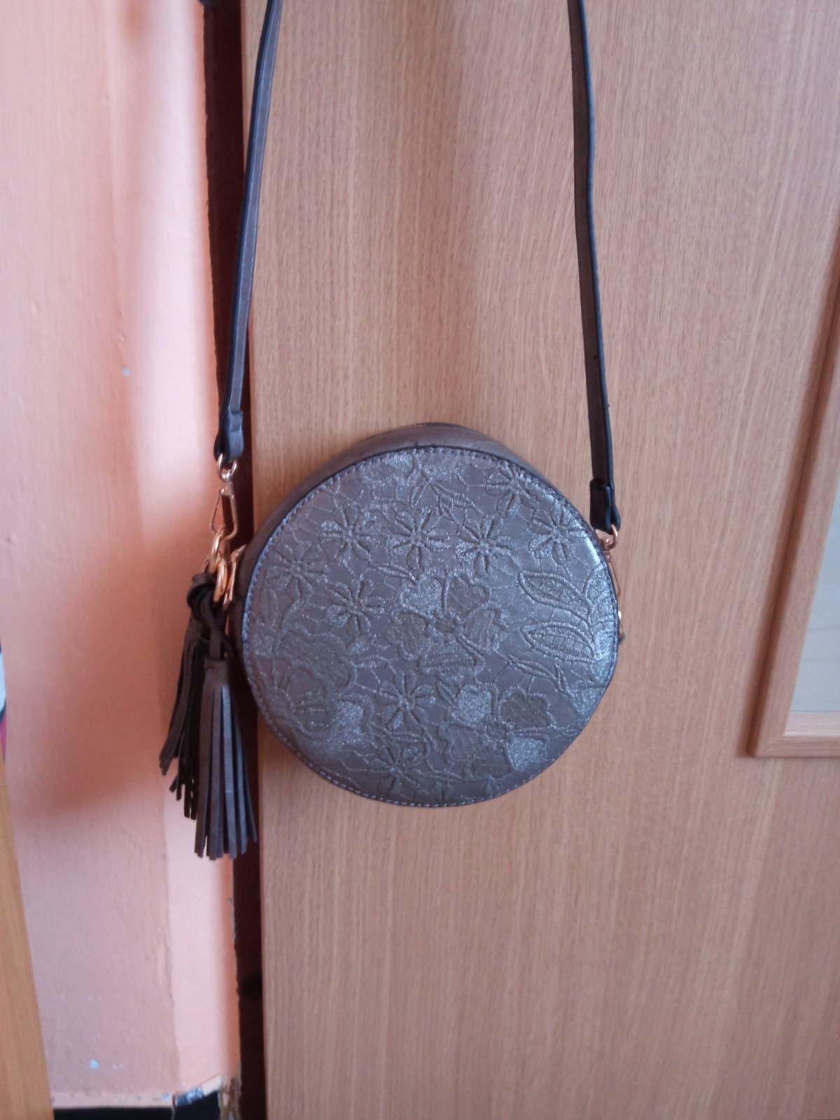 Predám malú okrúhlu kabelku, zvláštnej farby, je taká hnedo-sivo-medená, nedá sa jednoznačne opísať, má jednu priehradku, priemer 18 cm. Použitá asi 5x,ako nová. Dôvod predaja, že je pre mňa veľmi malá. Cena 10€ plus poštovné.