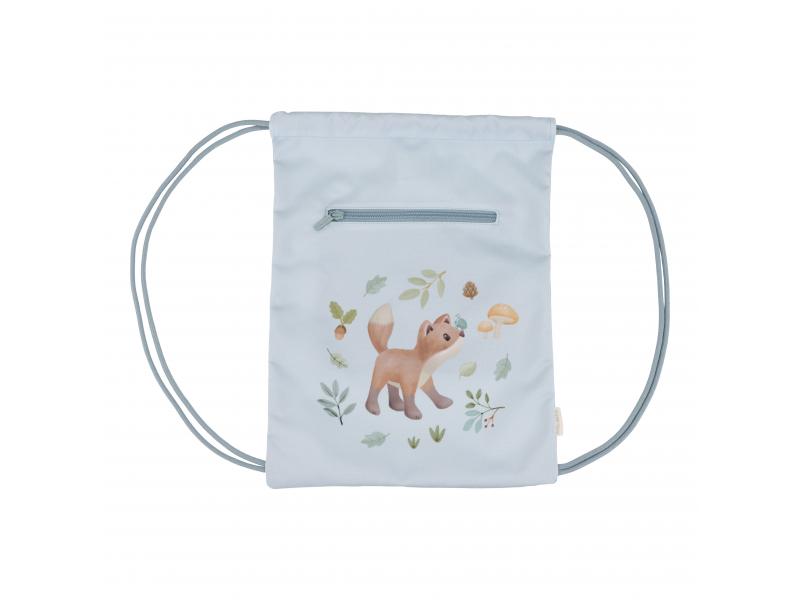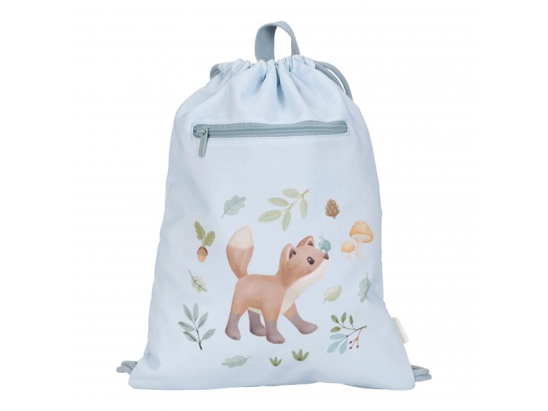 Športový vak potlačený nežnými prírodnými motívmi je ideálnym doplnkom do školy na telocvik či na športový krúžok. Dvojité sťahovacie šnúrky umožňujú nosenie ako batoh, vďaka pútku ho ľahko napr. zavesíte na vešiak v šatni. Vonkajšie vrecko na zips ponúka priestor na bezpečné uloženie drobností. Vnútri nájdete popisovateľnú menovku.