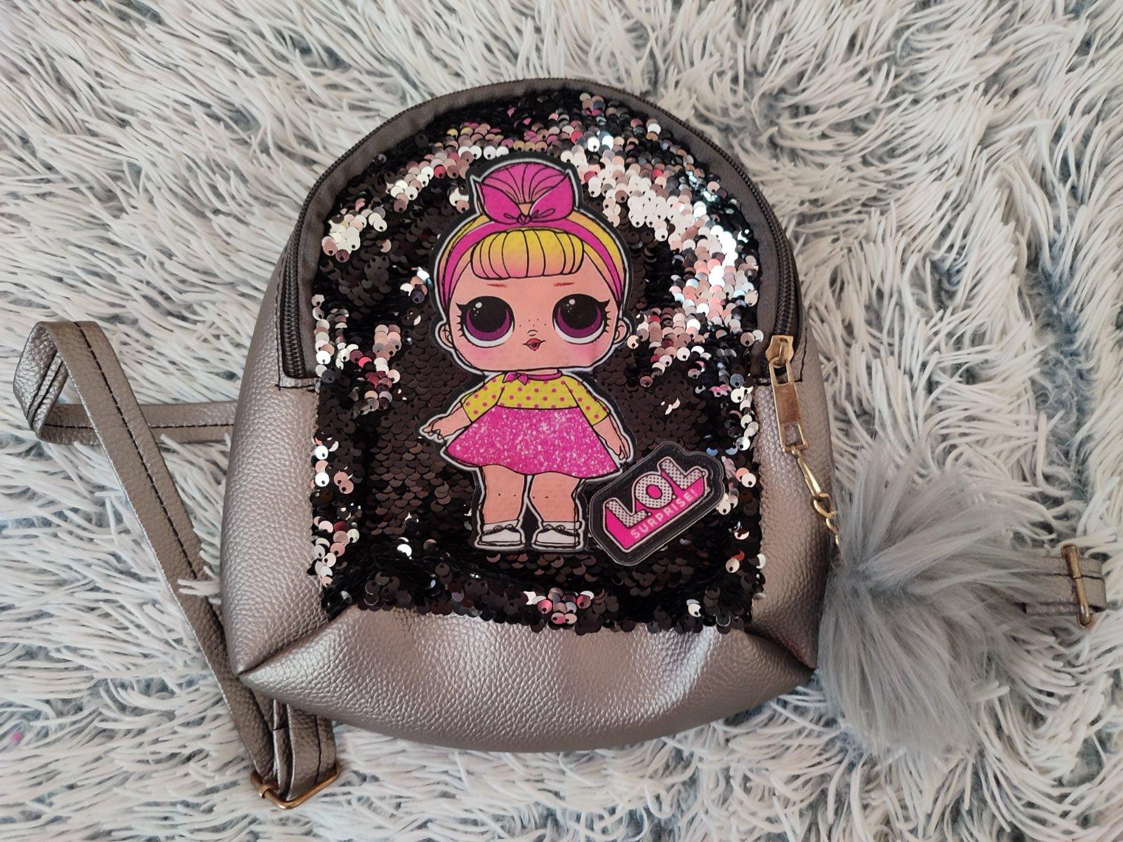 Možno raz použitý ruksak s meniacim trblietkami a obrázkom LOL, 23x25 cm.