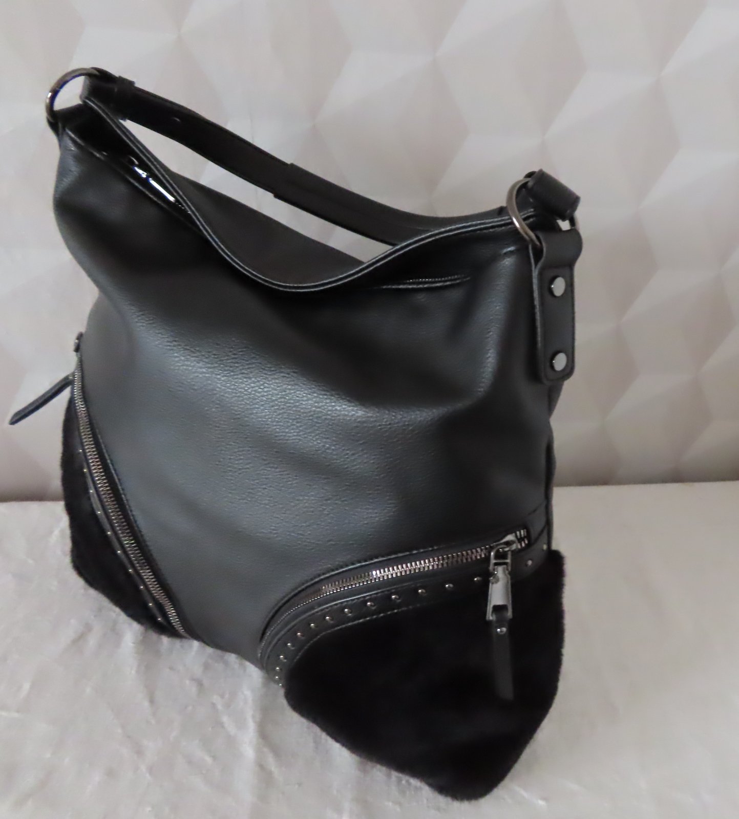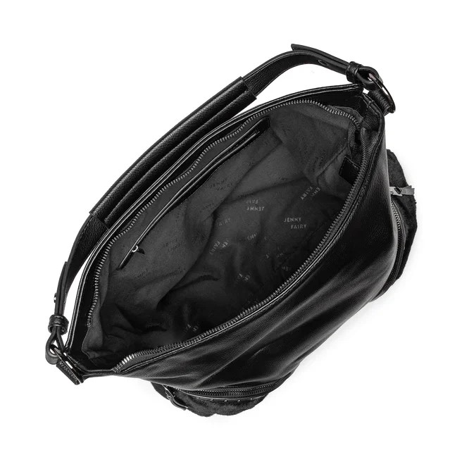 Dámska kabelka čierna, Jenny Fairy, kombinácia kvalitnej koženky a jemnej kožušinky.