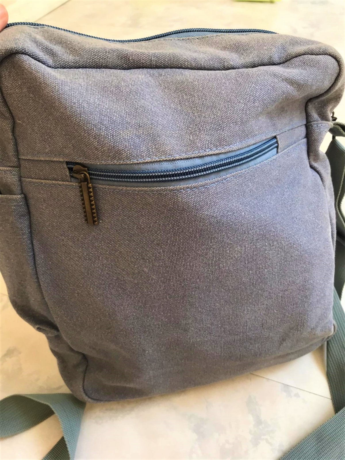 plátenná pevná a nezničená taška na plece - over cross,vo farbe vyblednutej rifloviny,kombinovaná s tmavohnedou koženkou,materiál pevný kepper,šírka = 24 cm,výška = 27 cm,boky a dno = 9 cm, dno spevnené,vyfutrovaná,zvonku na zadnej časti zips (kapsička ),nastaviteľná rúčka....