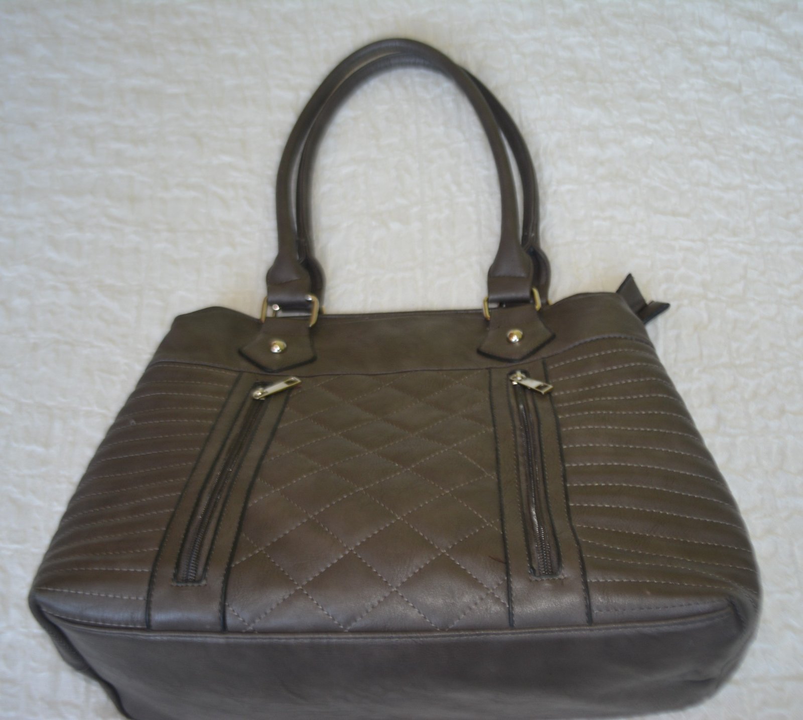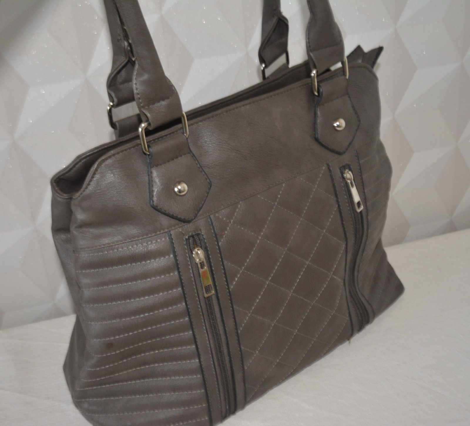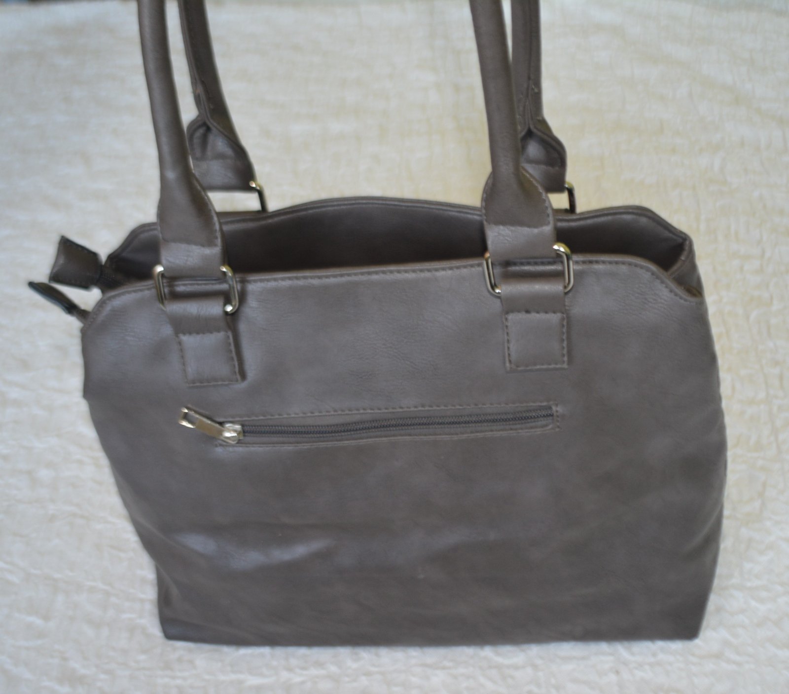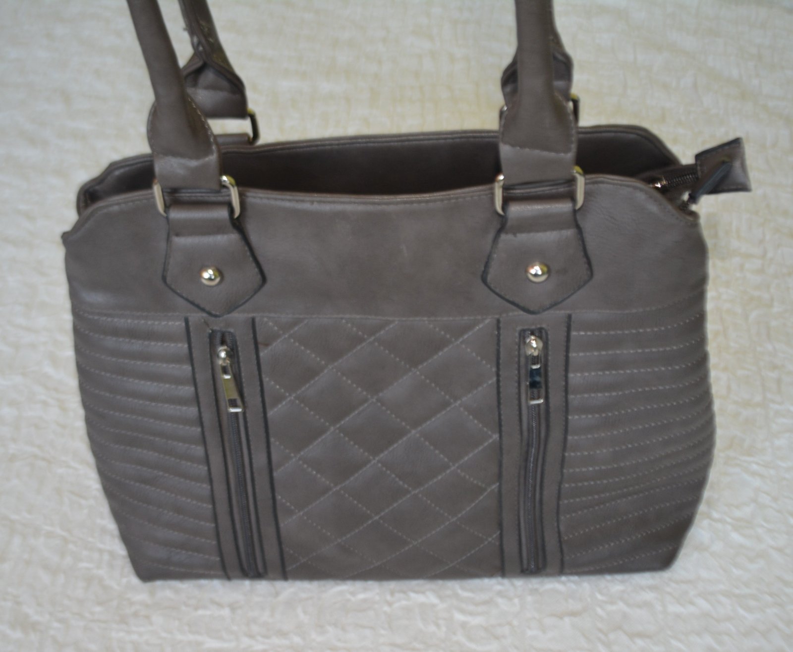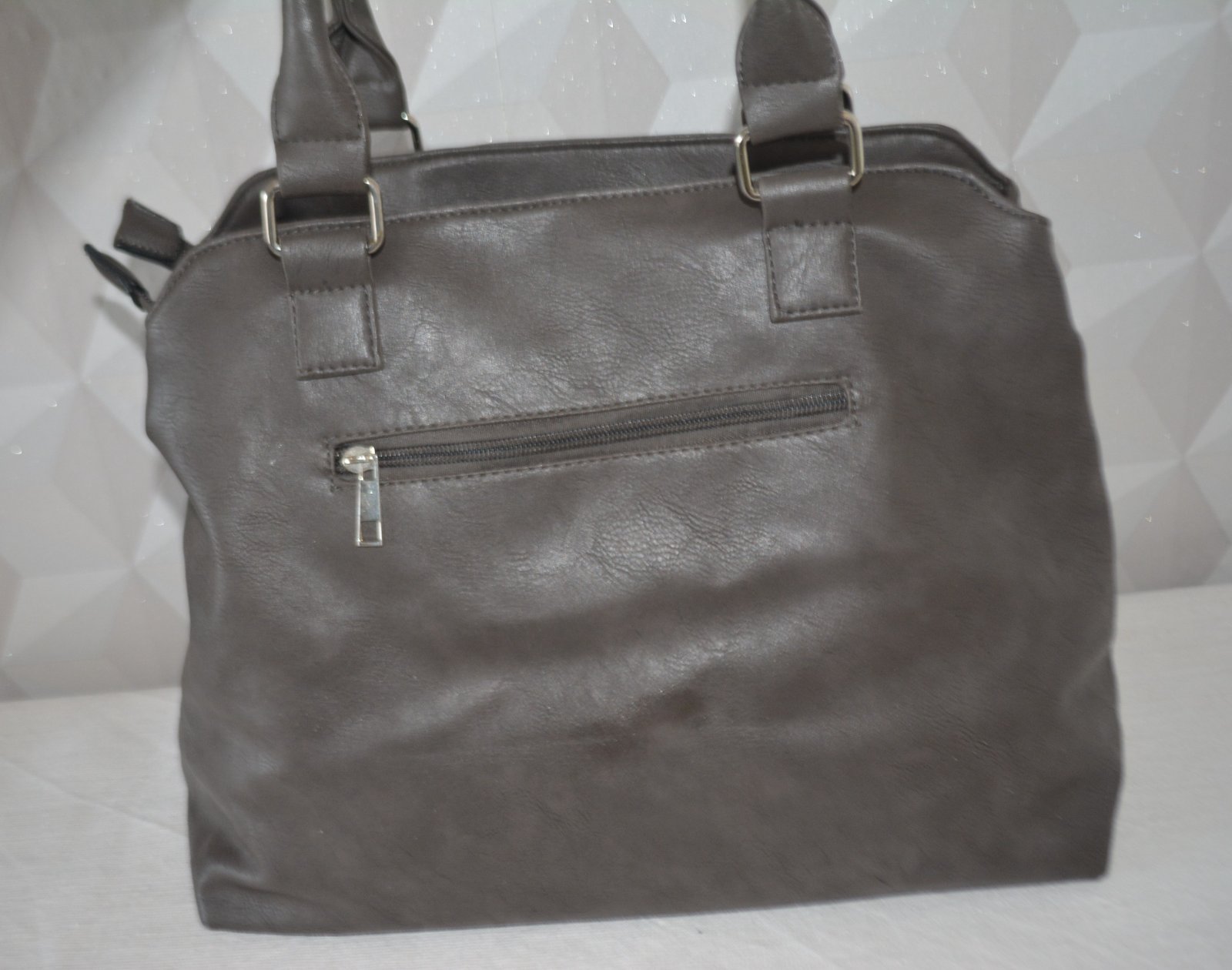 Dámska kabelka, šedo-hnedá. Zapínanie na zips. Vhodná na nosenie v ruke, ale aj na pleci.