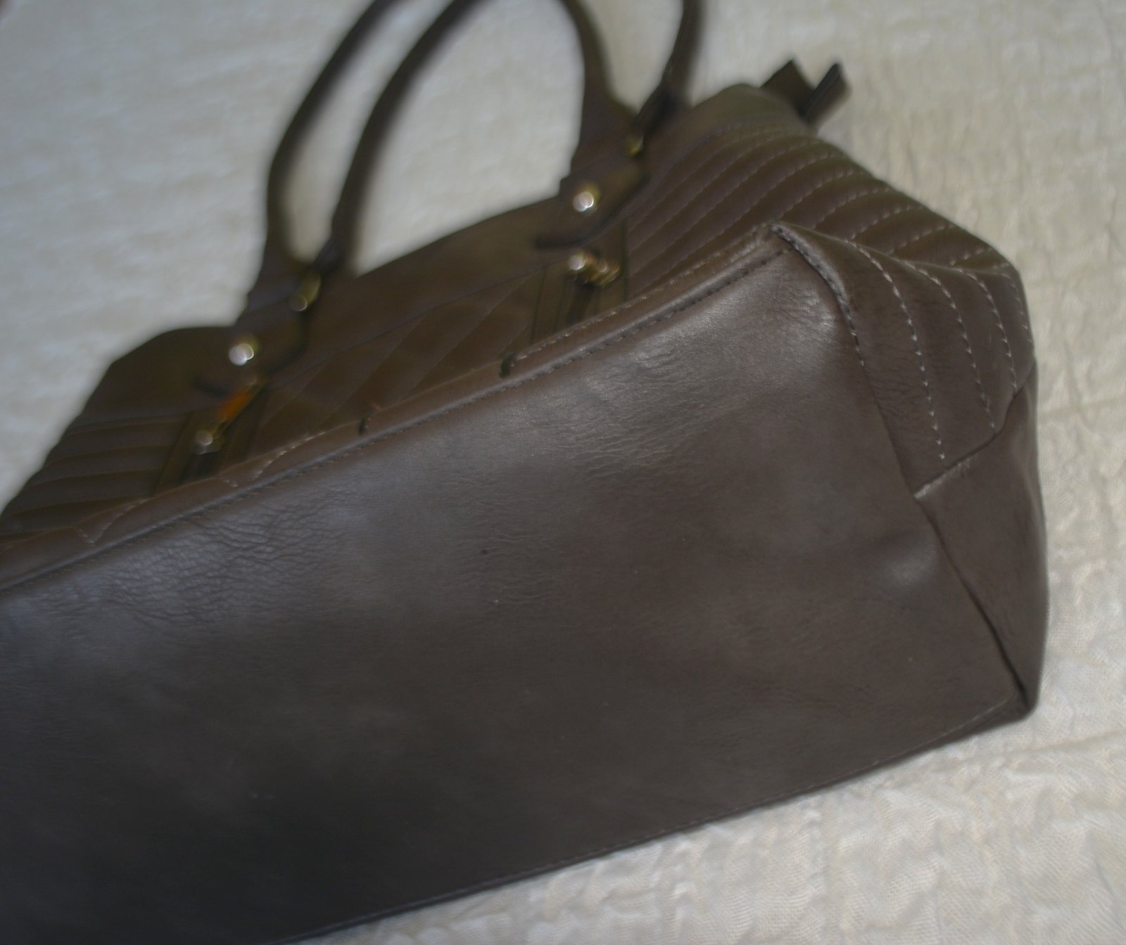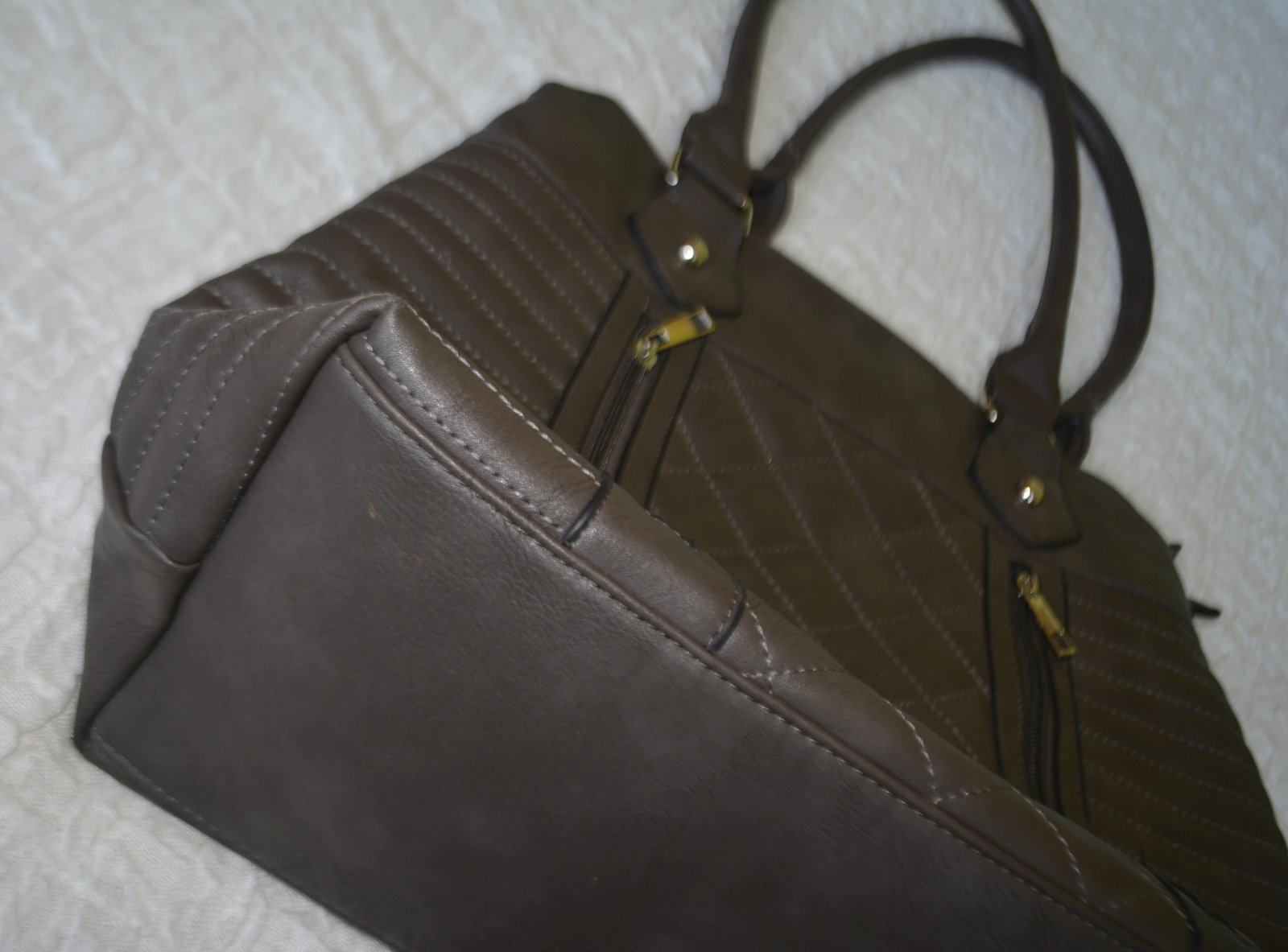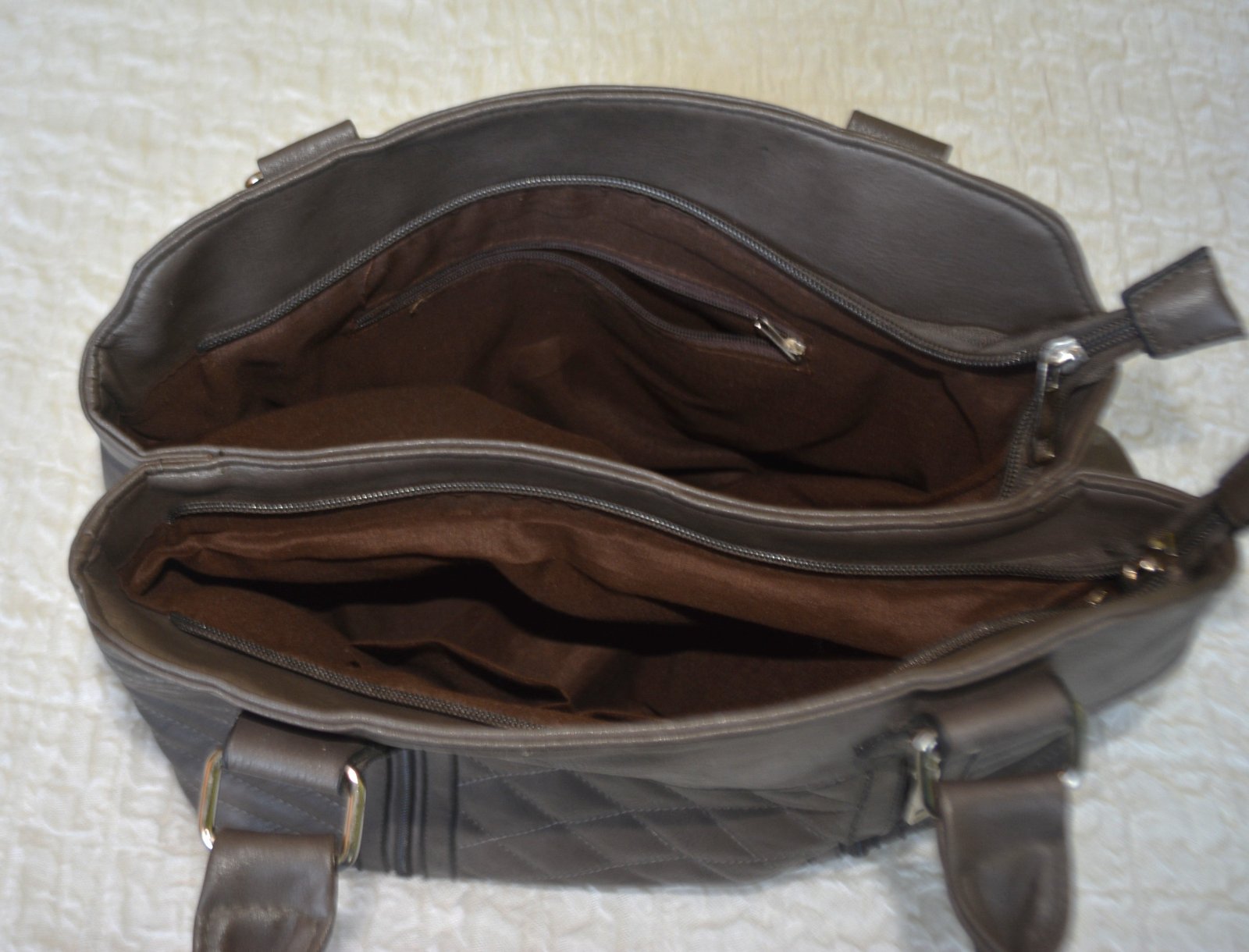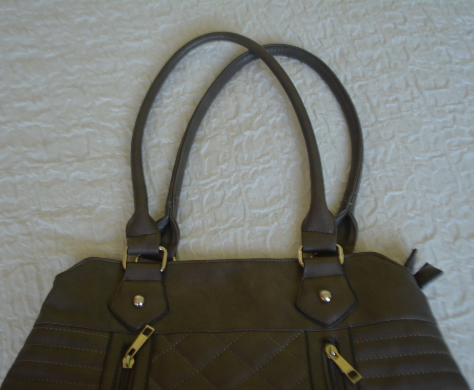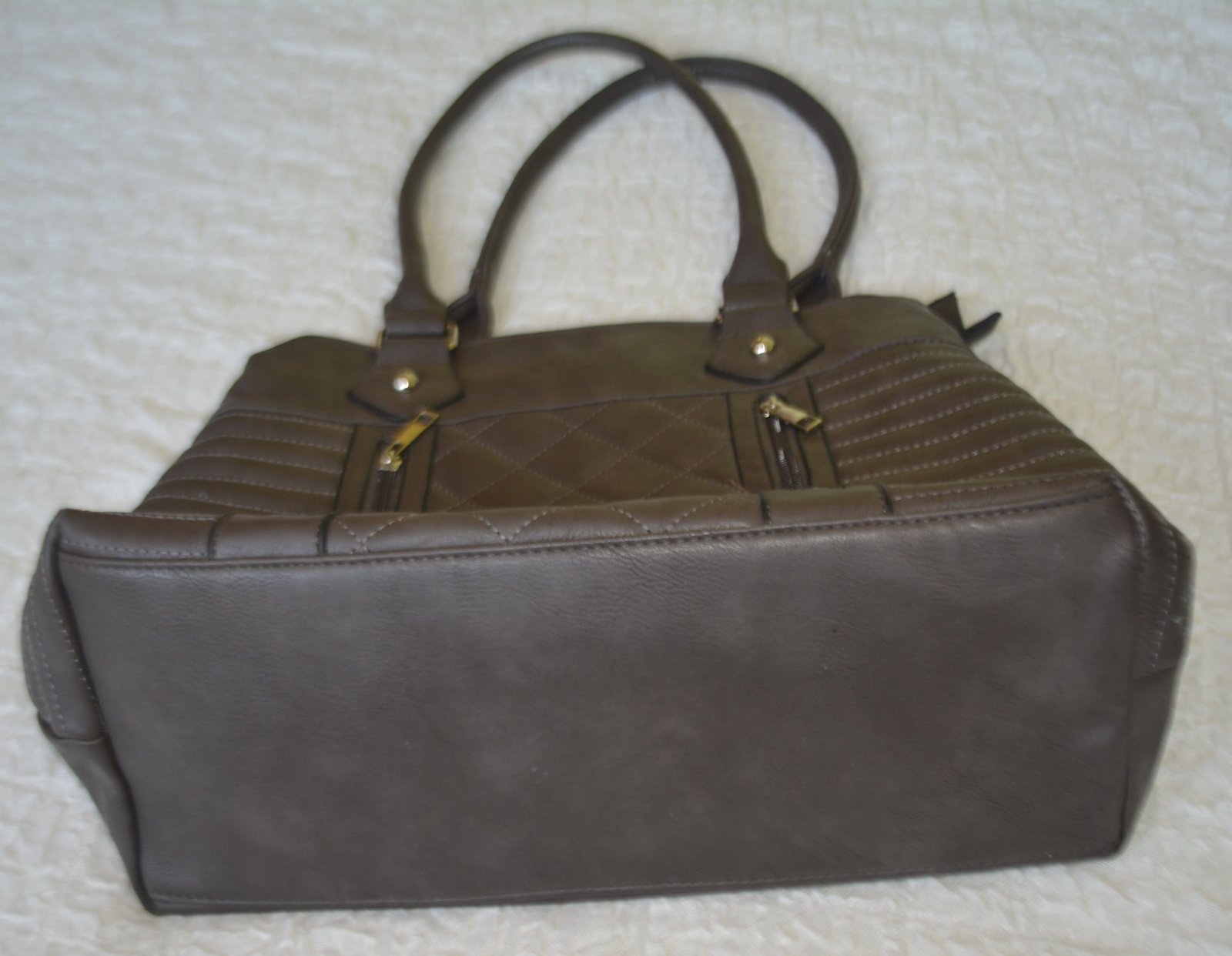 Dámska kabelka, šedo-hnedá. Zapínanie na zips. Vhodná na nosenie v ruke, ale aj na pleci.