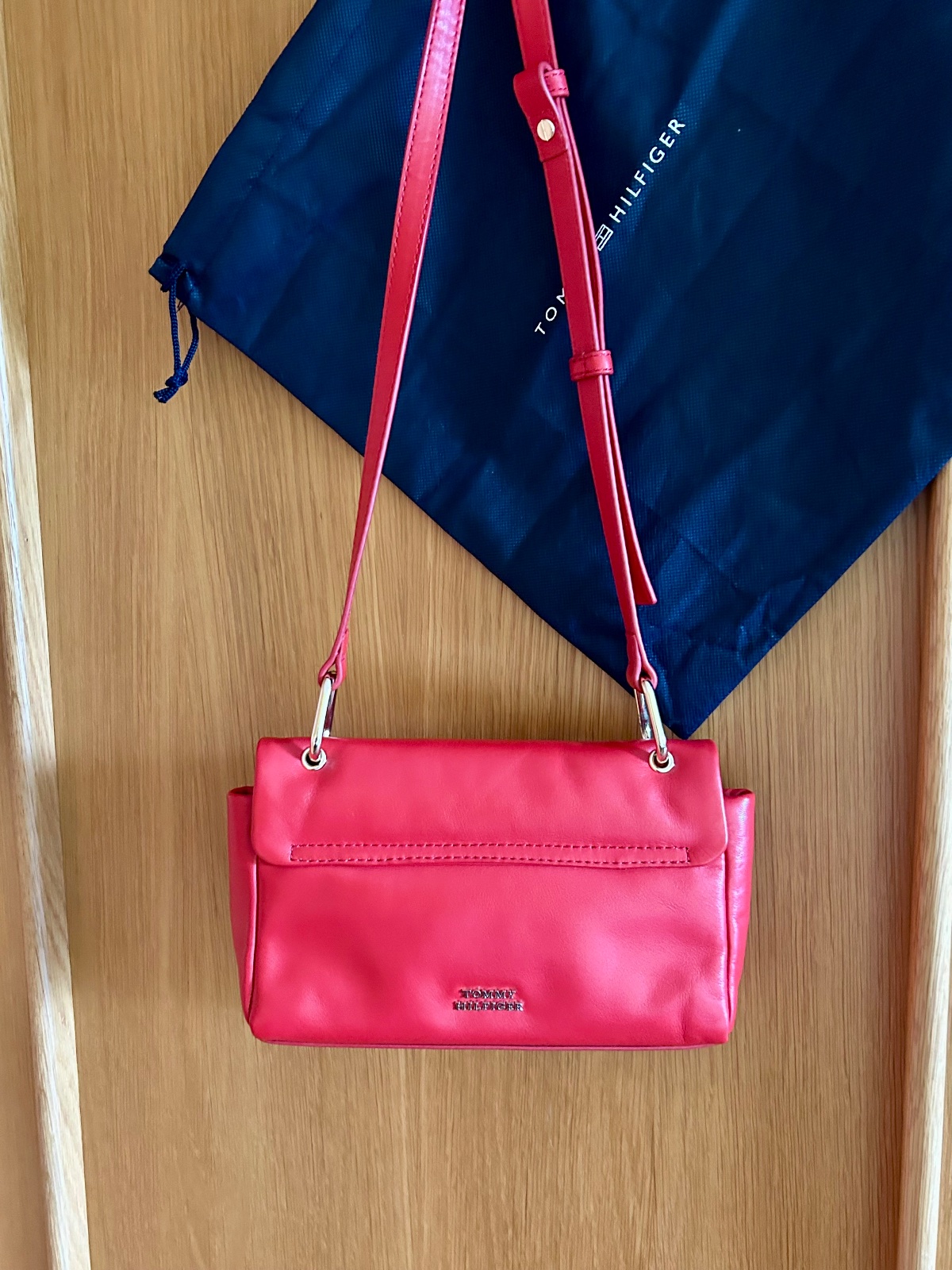 Predám zaujímavú crossbody kabelku zn.TOMMY HILFIGER, sýta jemná pravá koža, zlaté kovanie, zapínanie na iniciálky značky. Vo vnútri vrecko na zips na cennosti, nastaviteľný popruh podľa potreby. Rozmery: 21x12,5x cm. Zmestí sa do nej všetko dôležité, aj veľký iPhone. Pôvodná cena 229,95 EUR. Samozrejmosťou je látkové vrecko na uskladnenie.