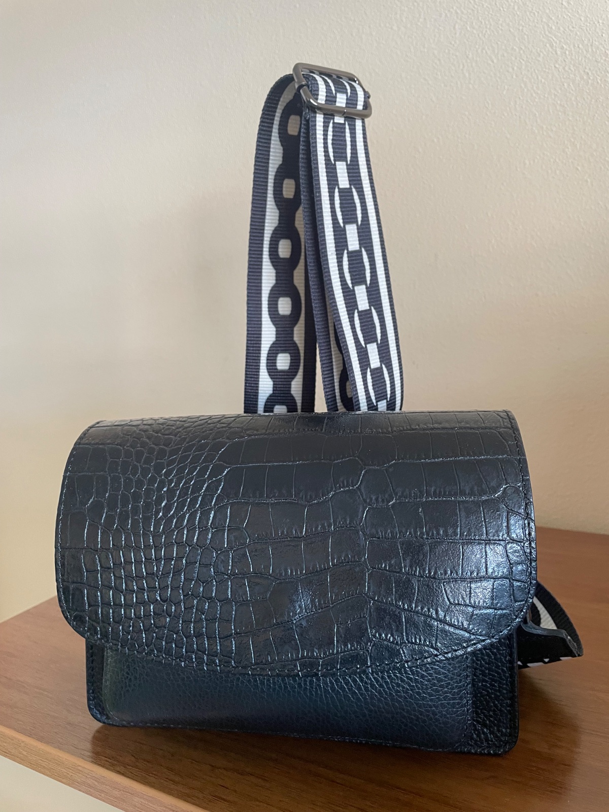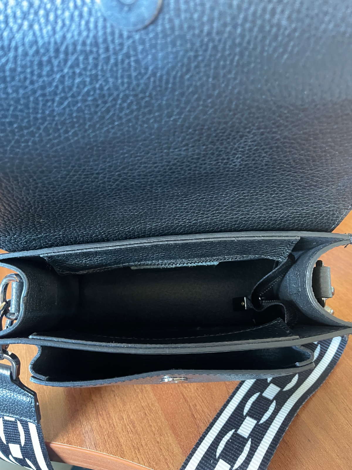 Nosená nie veľmi popruh je vnútri popraskaný. Pri nosení nevidno všetko nafotené.