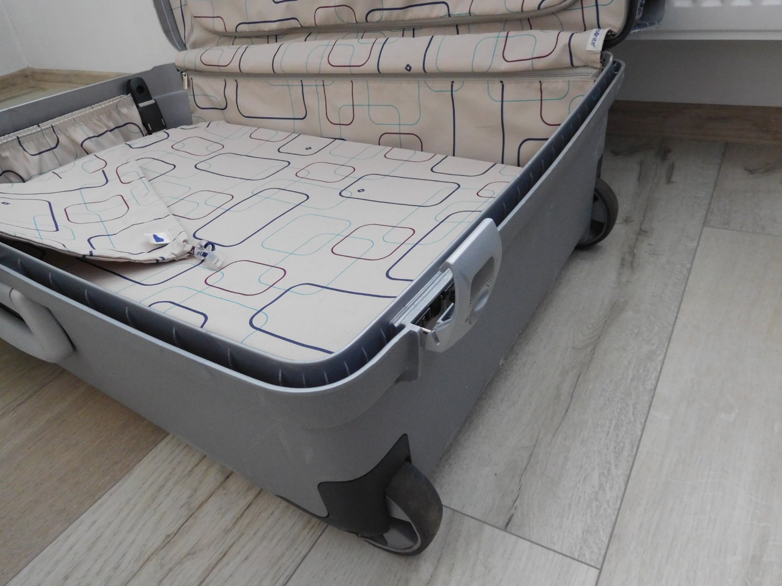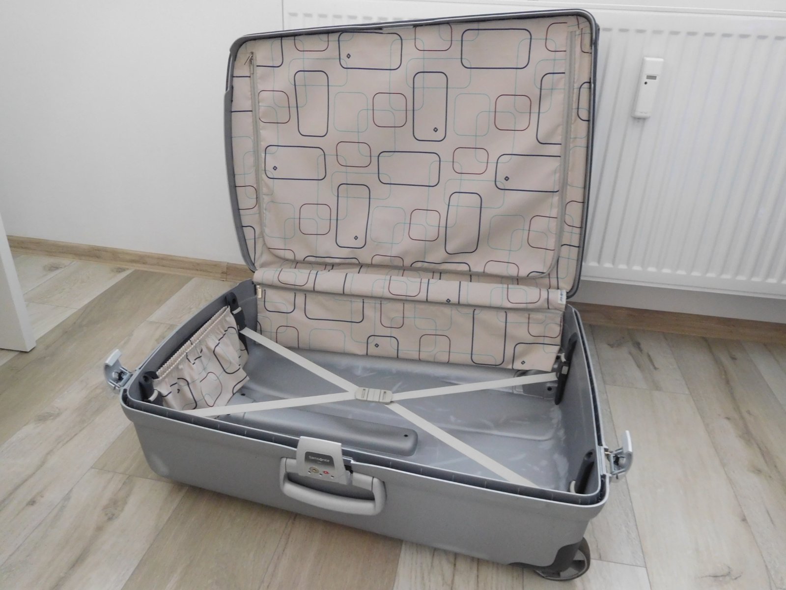 Ponúkam na predaj viď foto kufor SAMSONITE o rozmeroch 80 x 54 x 30 cm, kufor je používaný, samoszejme sem tam škrabanec nič čo by bránilo k ďalšiemu užívaniu, kolieska funkčné, vnútro tak ako na foto,