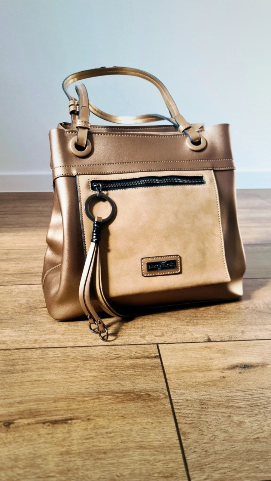 Medená veľká kabelka, zn. Pierre Cardin, farba - medená/ bronzova/ béžová, materiál- eko koža, par krát vzatá- výborný stav (ako na foto)