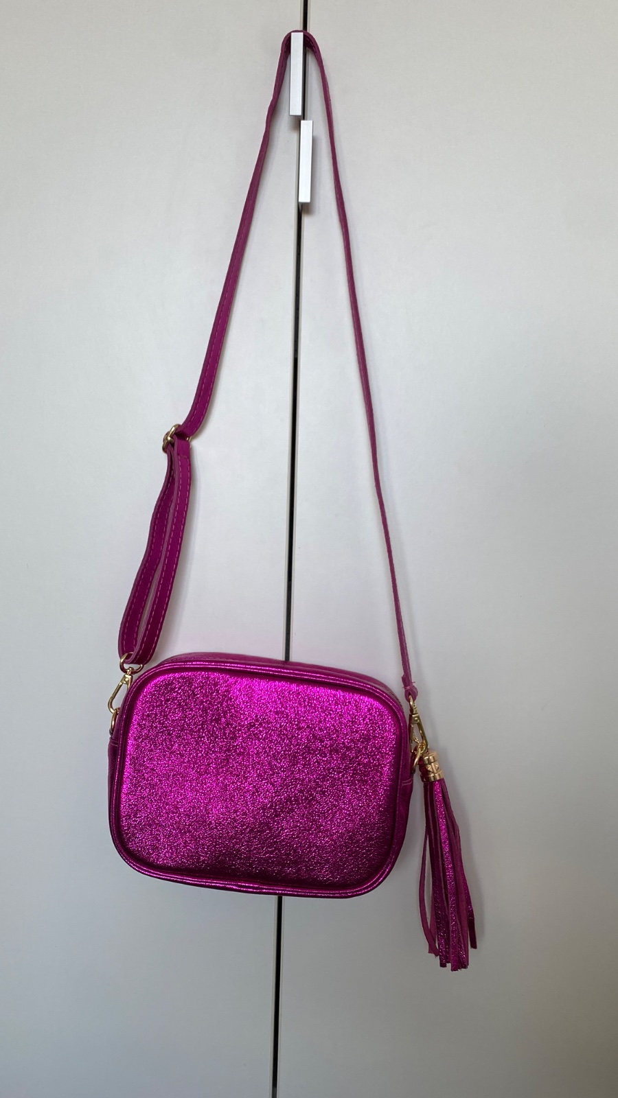 Kožená ružová trblietavá kabelka