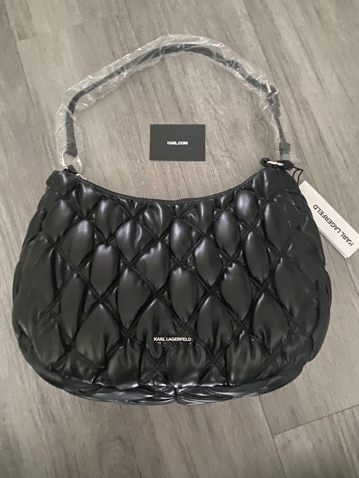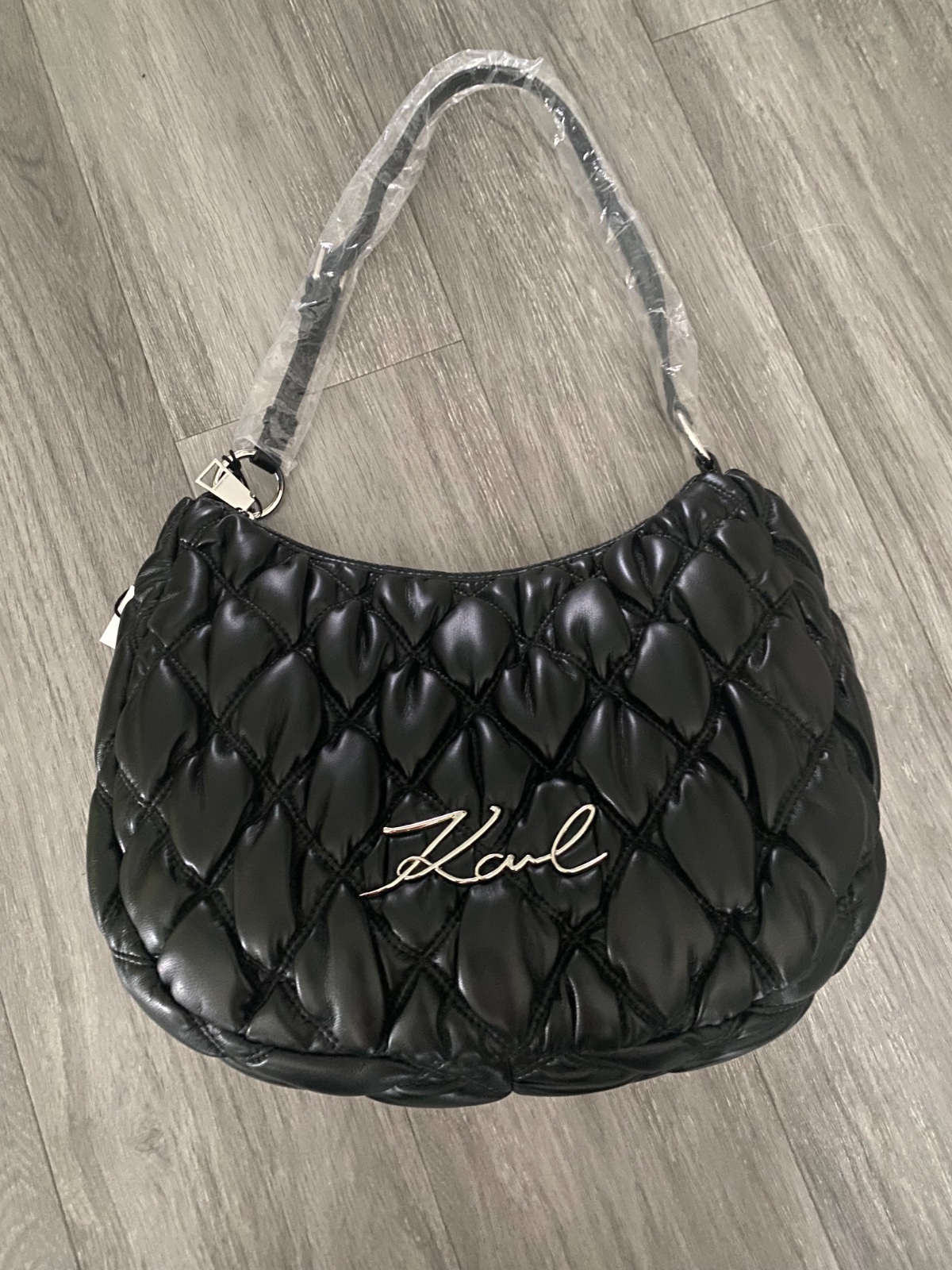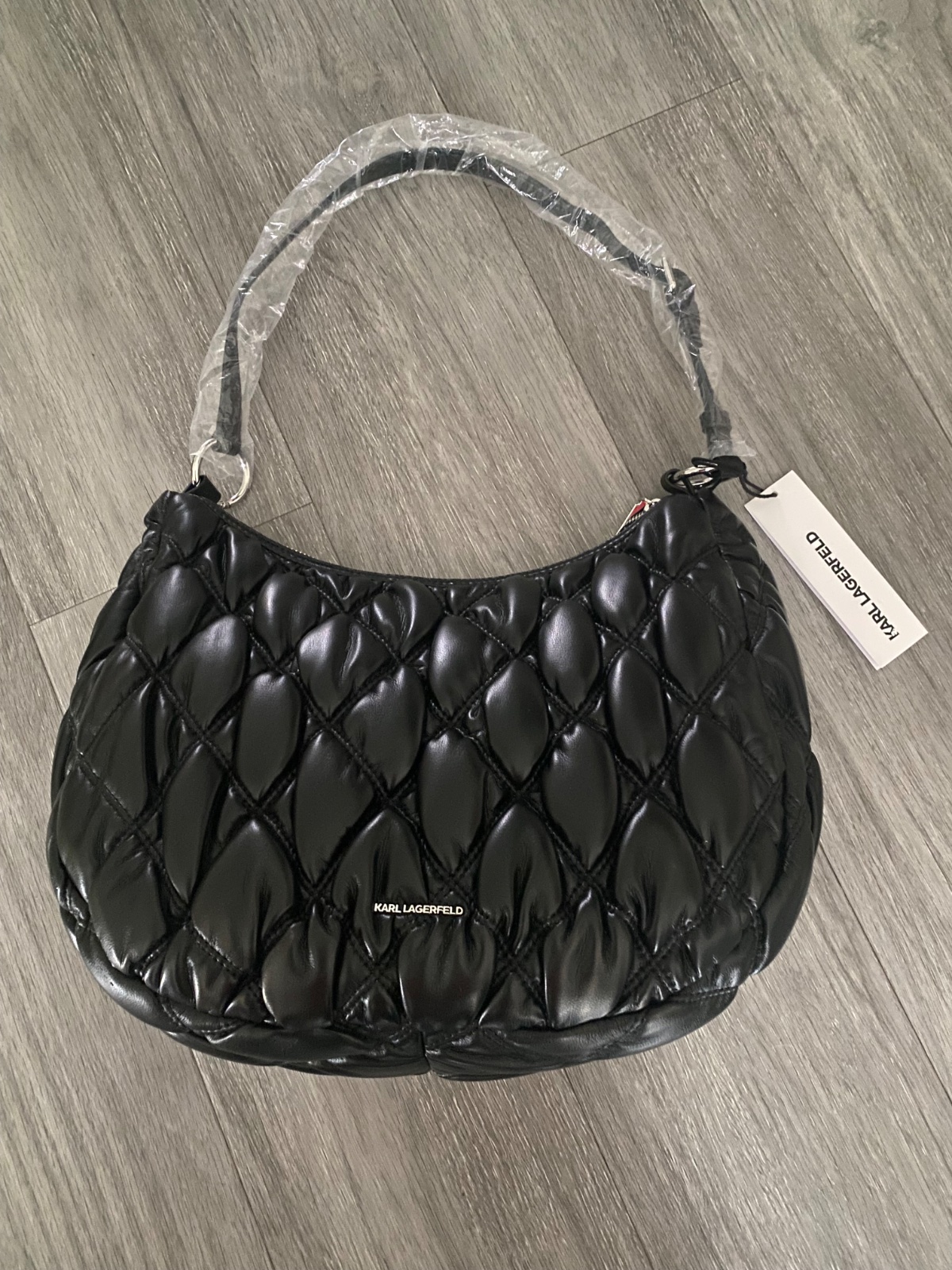 • Povrch: jemne prešívaný alebo hladký, s decentným logo nápisom KARL LAGERFELD vpredu