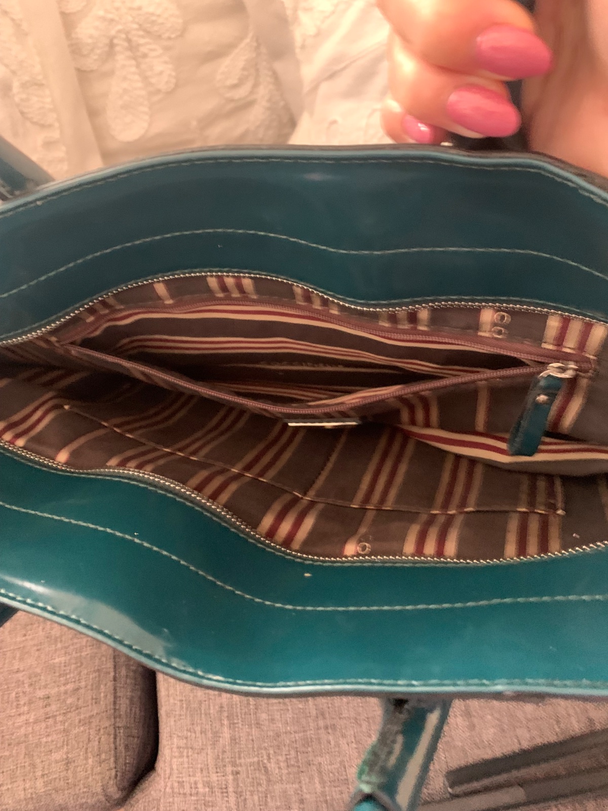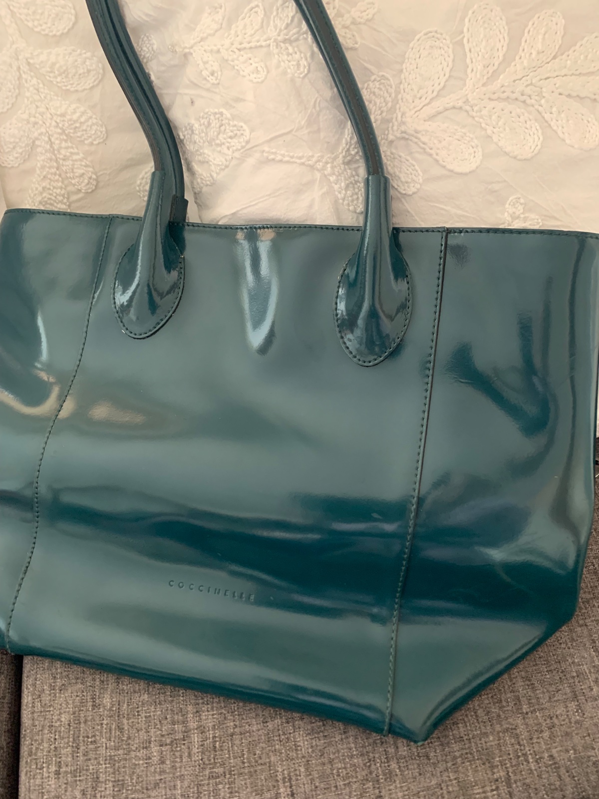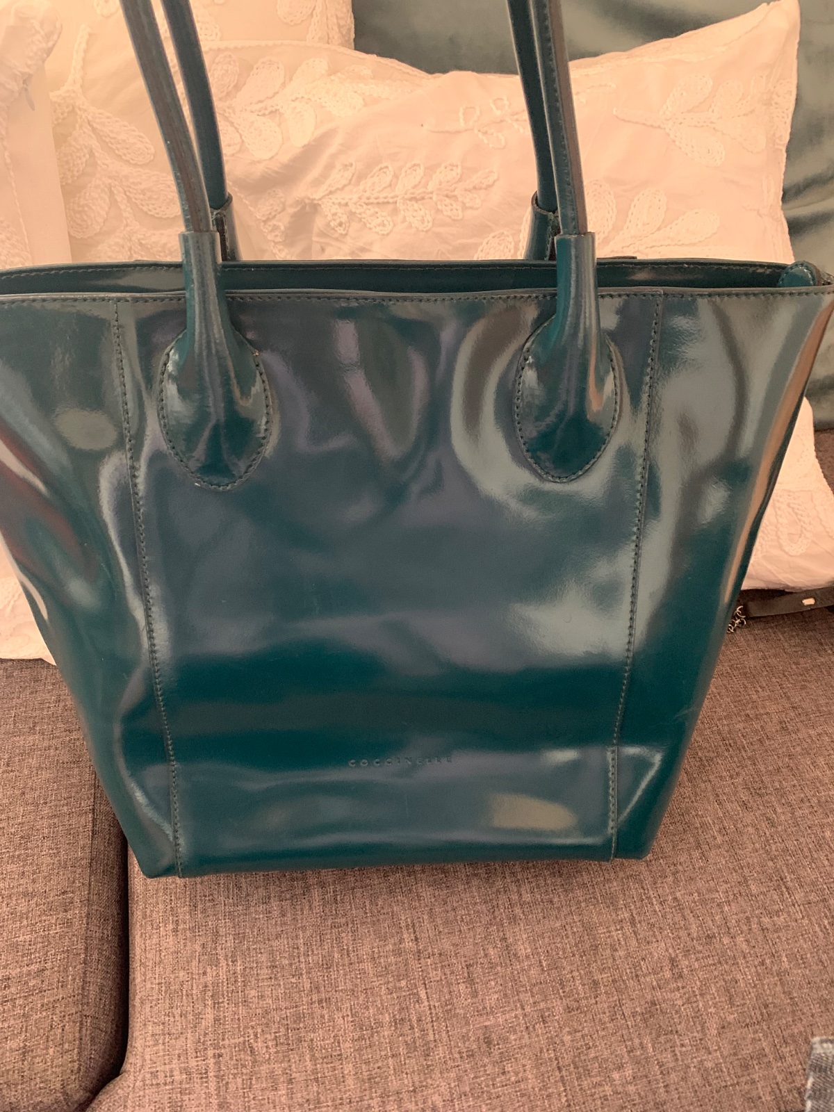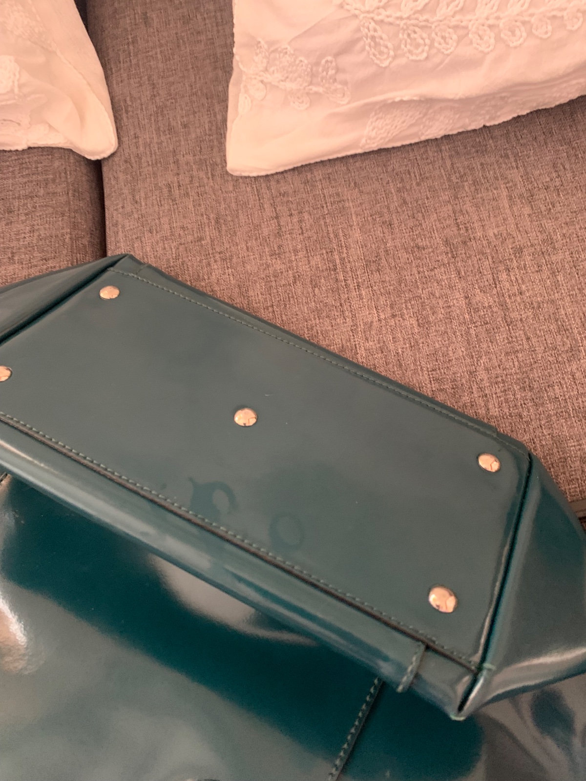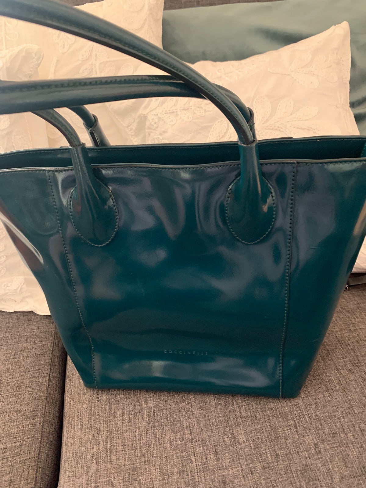 nosená, drobné znämky opotrebenia, čistä a udržiavaná lakovaná koža