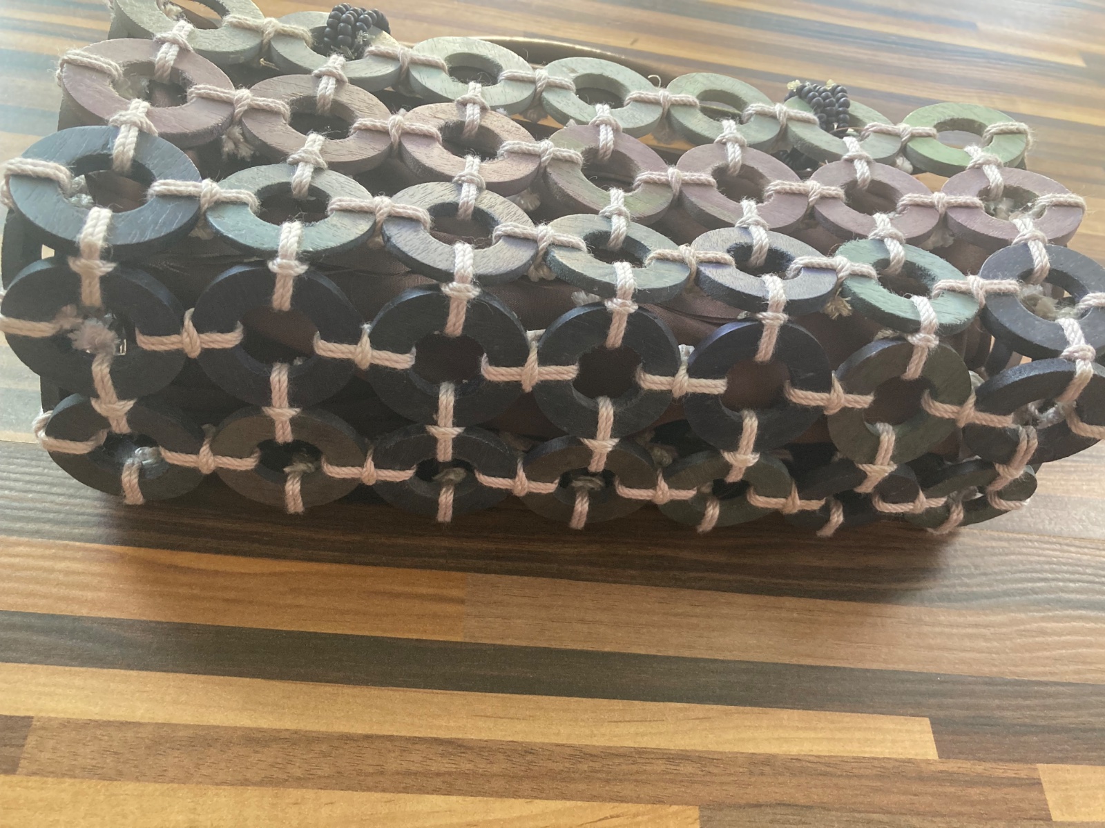 Raz použitá, z drevených kruhov a bavlnenou podšívkou. Stav, detaily a rozmery viď na fotkách.