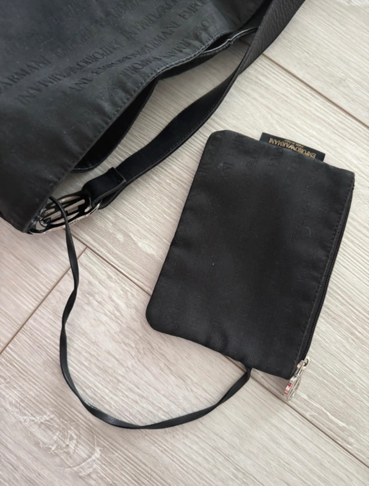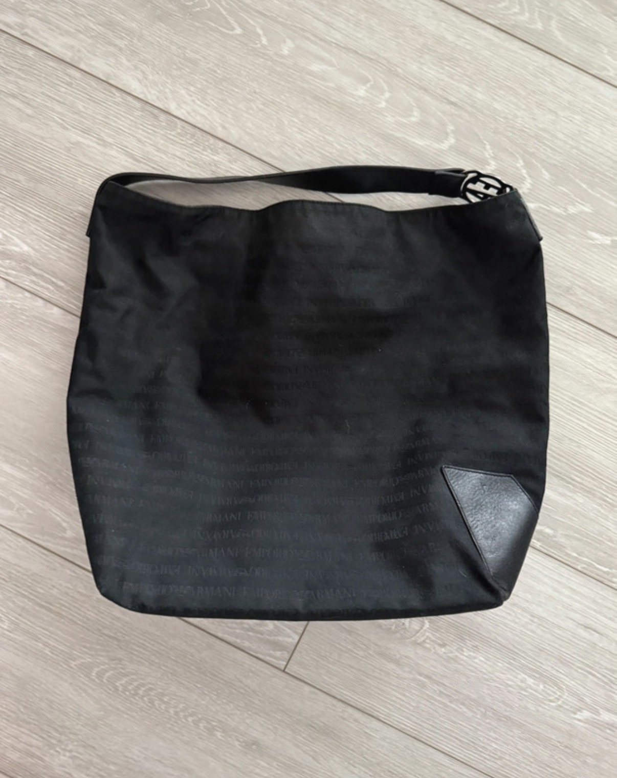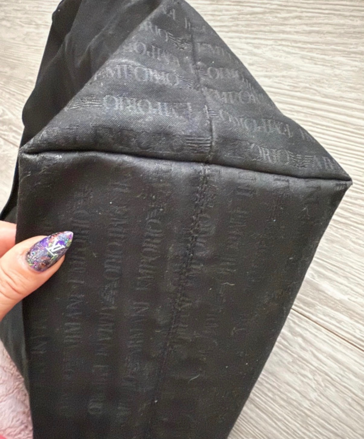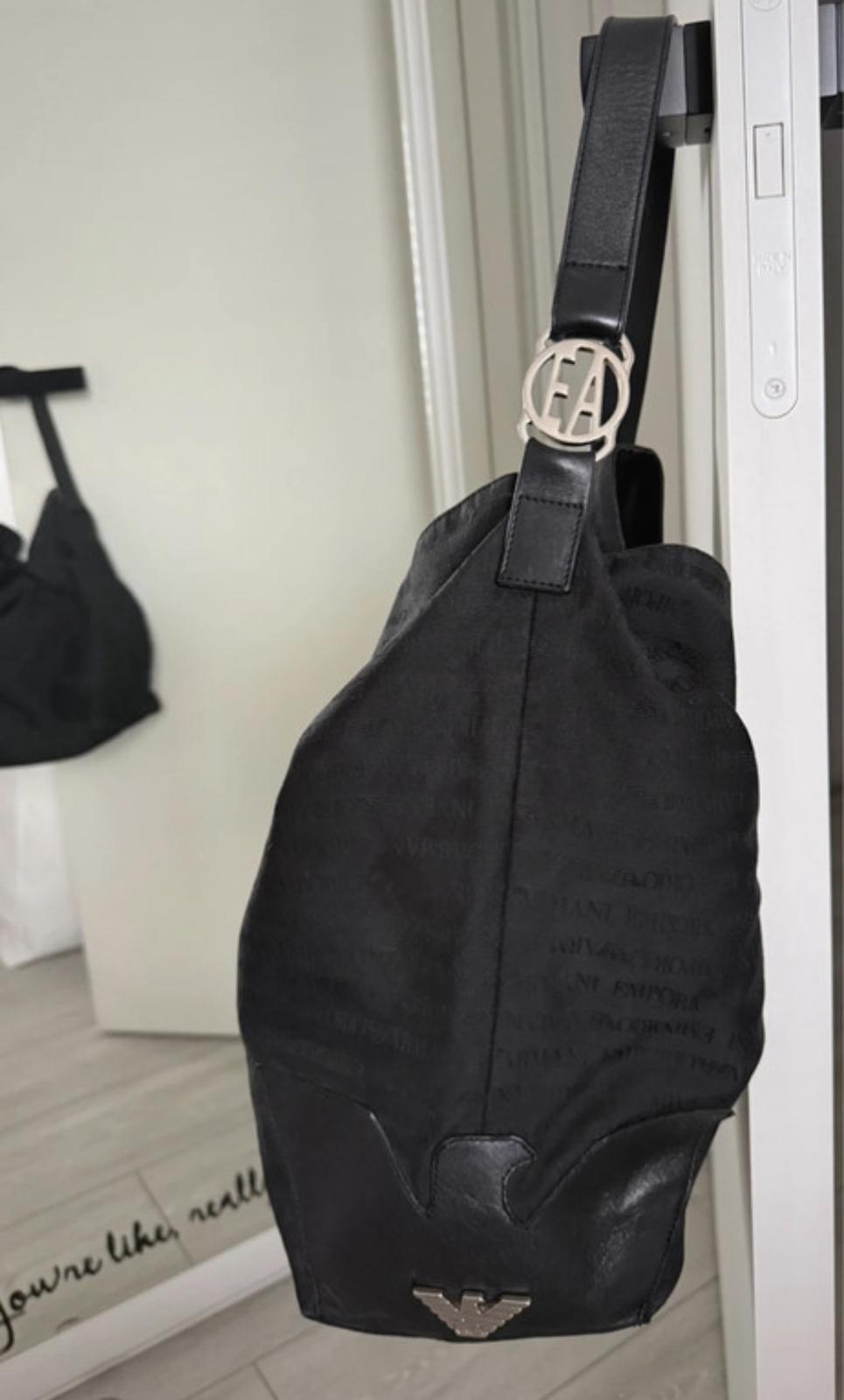 Veľká čierna taška shopper Armani. Zapínanie na magnet, vo vnútri malá taštička. Materiál kanvas s logom značky a koža. Nosená, ale stále krásna. Nosenie vidno najviac na rohoch (najviac na jednom ako je kožené logo). Všetko je na fotkách.