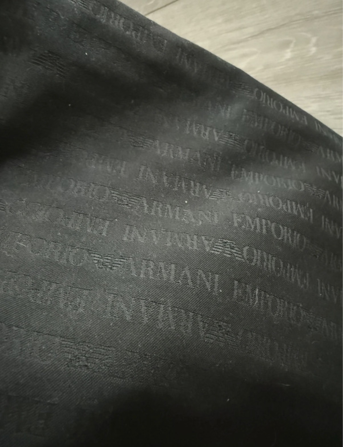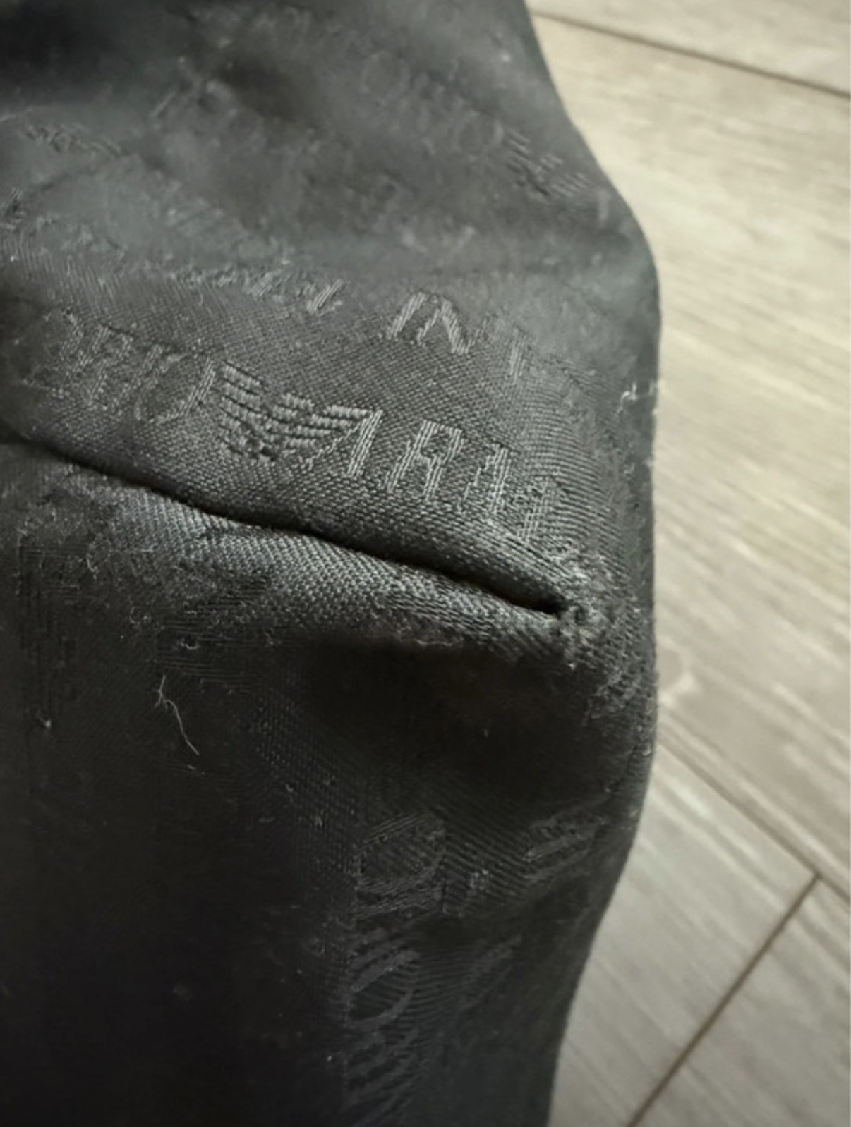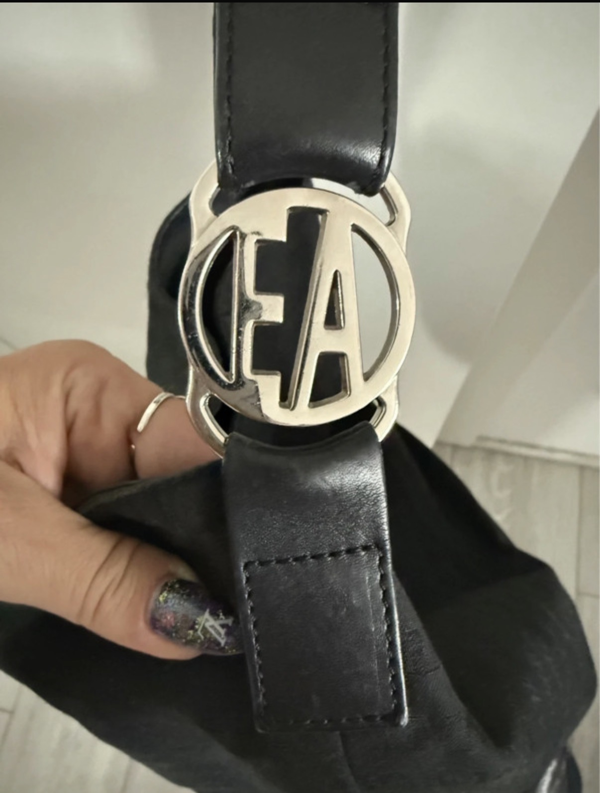 Veľká čierna taška shopper Armani. Zapínanie na magnet, vo vnútri malá taštička. Materiál kanvas s logom značky a koža. Nosená, ale stále krásna. Nosenie vidno najviac na rohoch (najviac na jednom ako je kožené logo). Všetko je na fotkách.