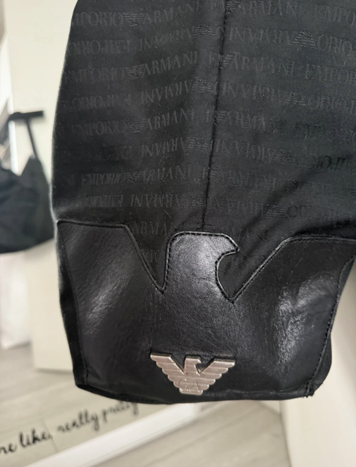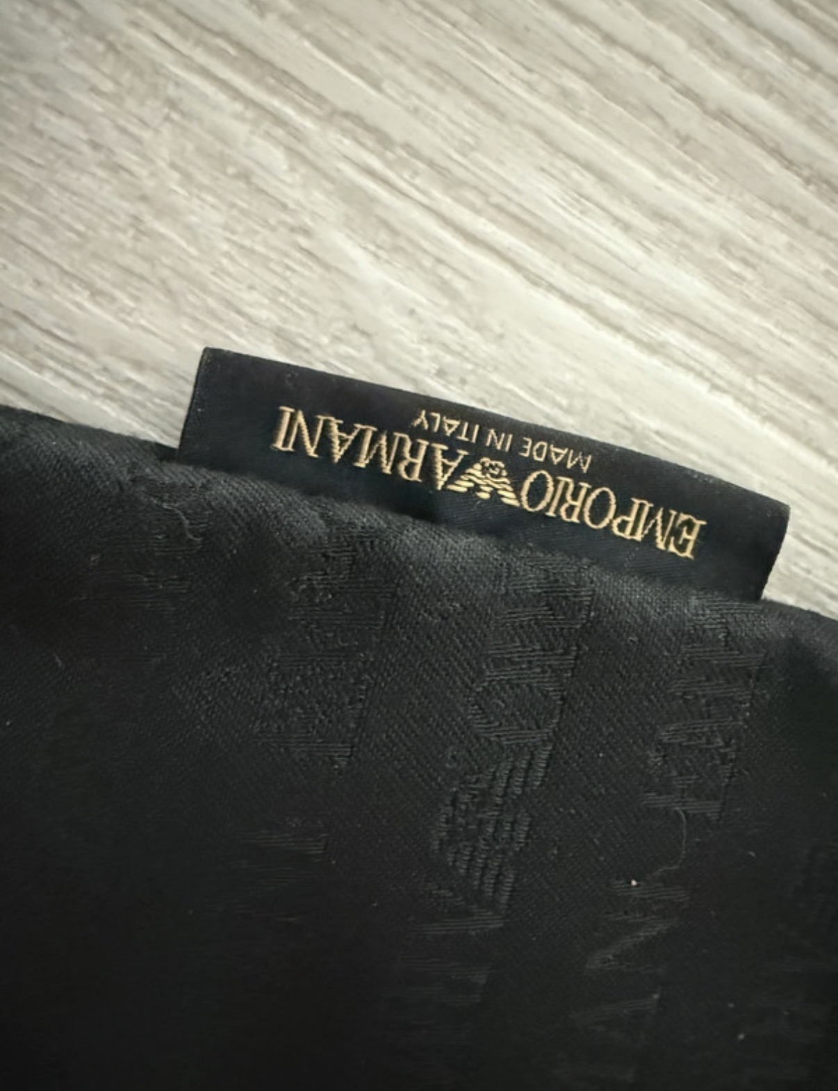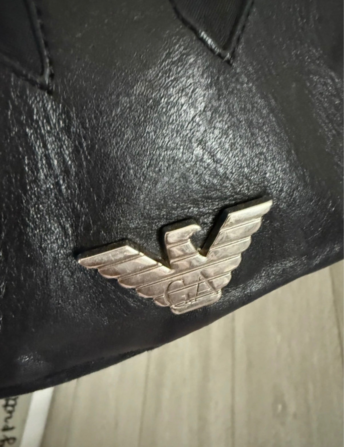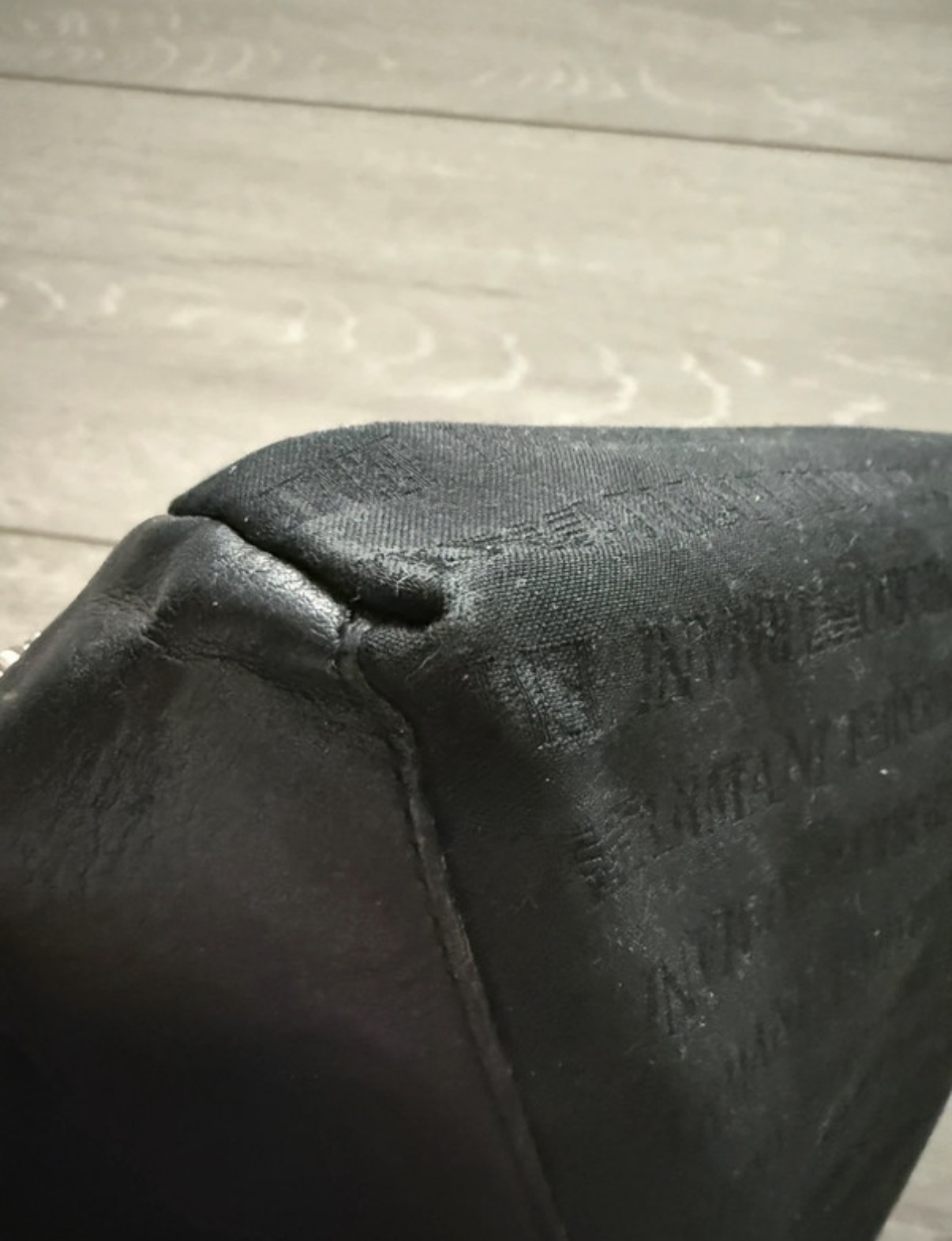 Veľká čierna taška shopper Armani. Zapínanie na magnet, vo vnútri malá taštička. Materiál kanvas s logom značky a koža. Nosená, ale stále krásna. Nosenie vidno najviac na rohoch (najviac na jednom ako je kožené logo). Všetko je na fotkách.