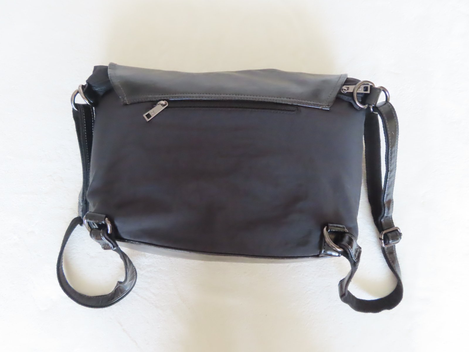 Ruksak so zatváraním na zips + preklop, traky nastaviteľné.