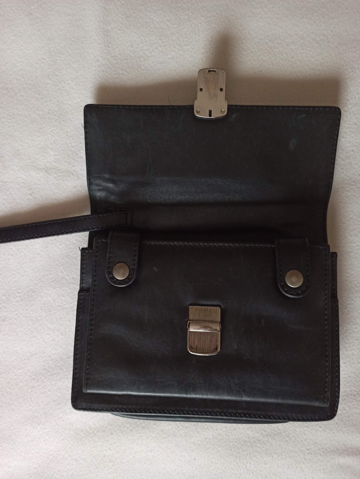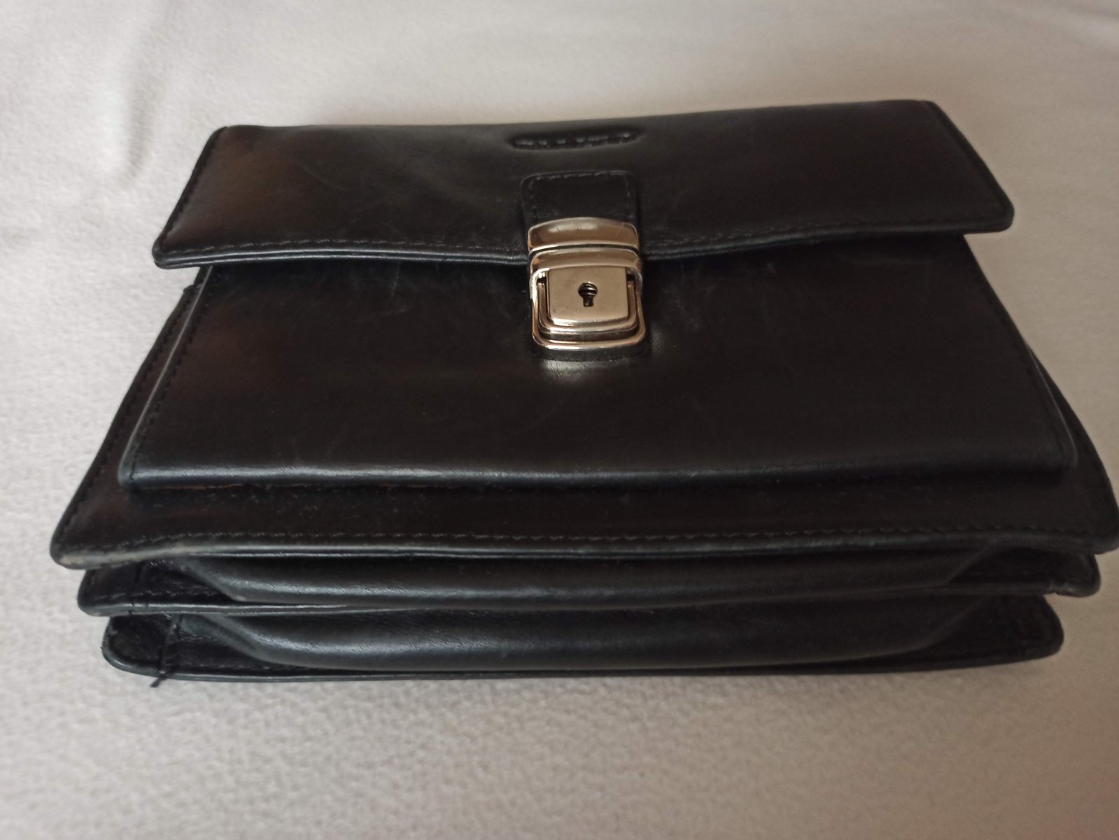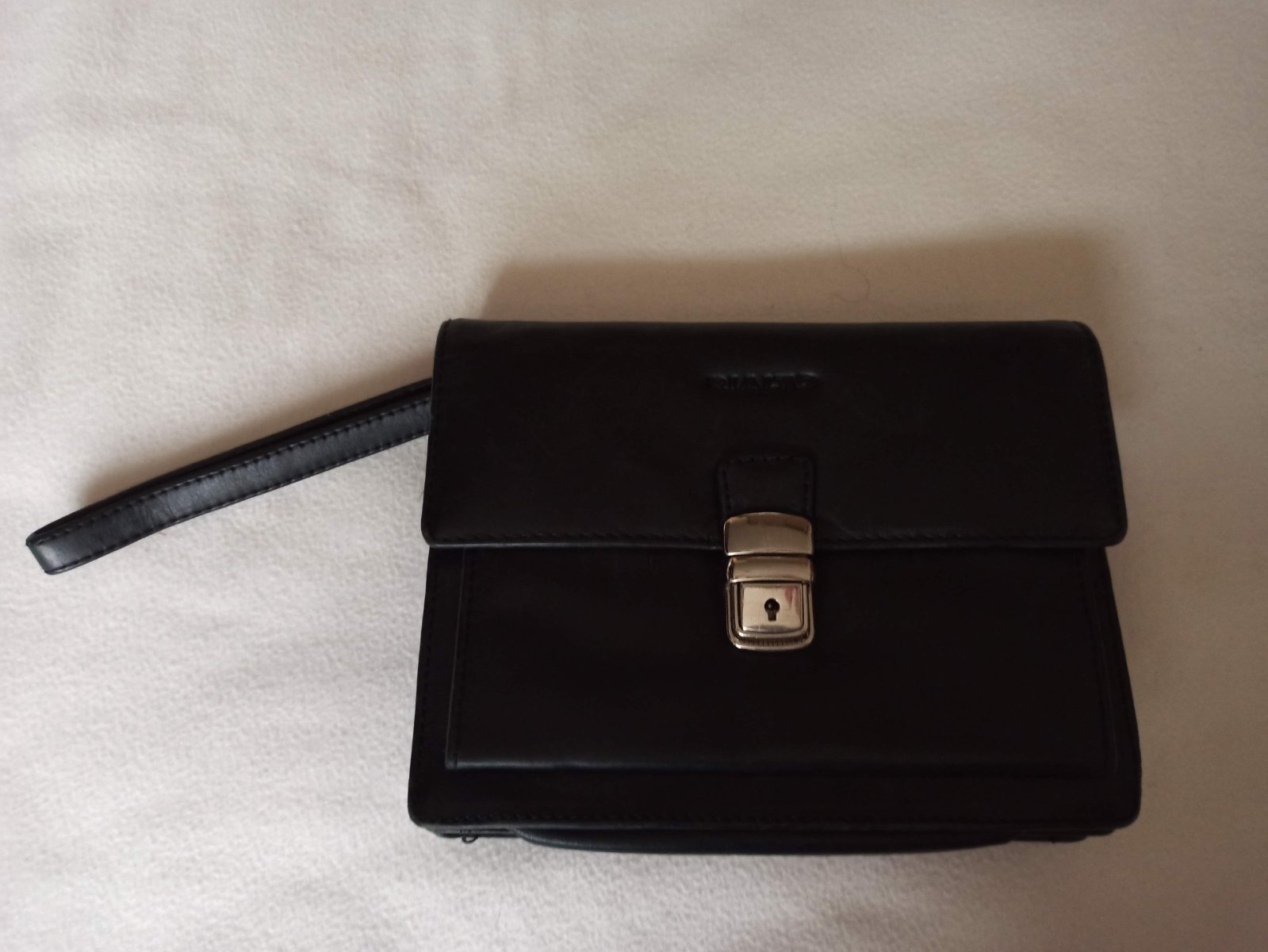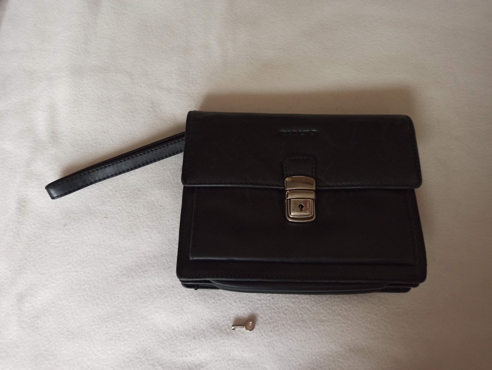 Kožená pánska etua do ruky s kovovým zapínaním, na kľúčik, čierna, vo veľmi dobrom stave, bežné známky používania