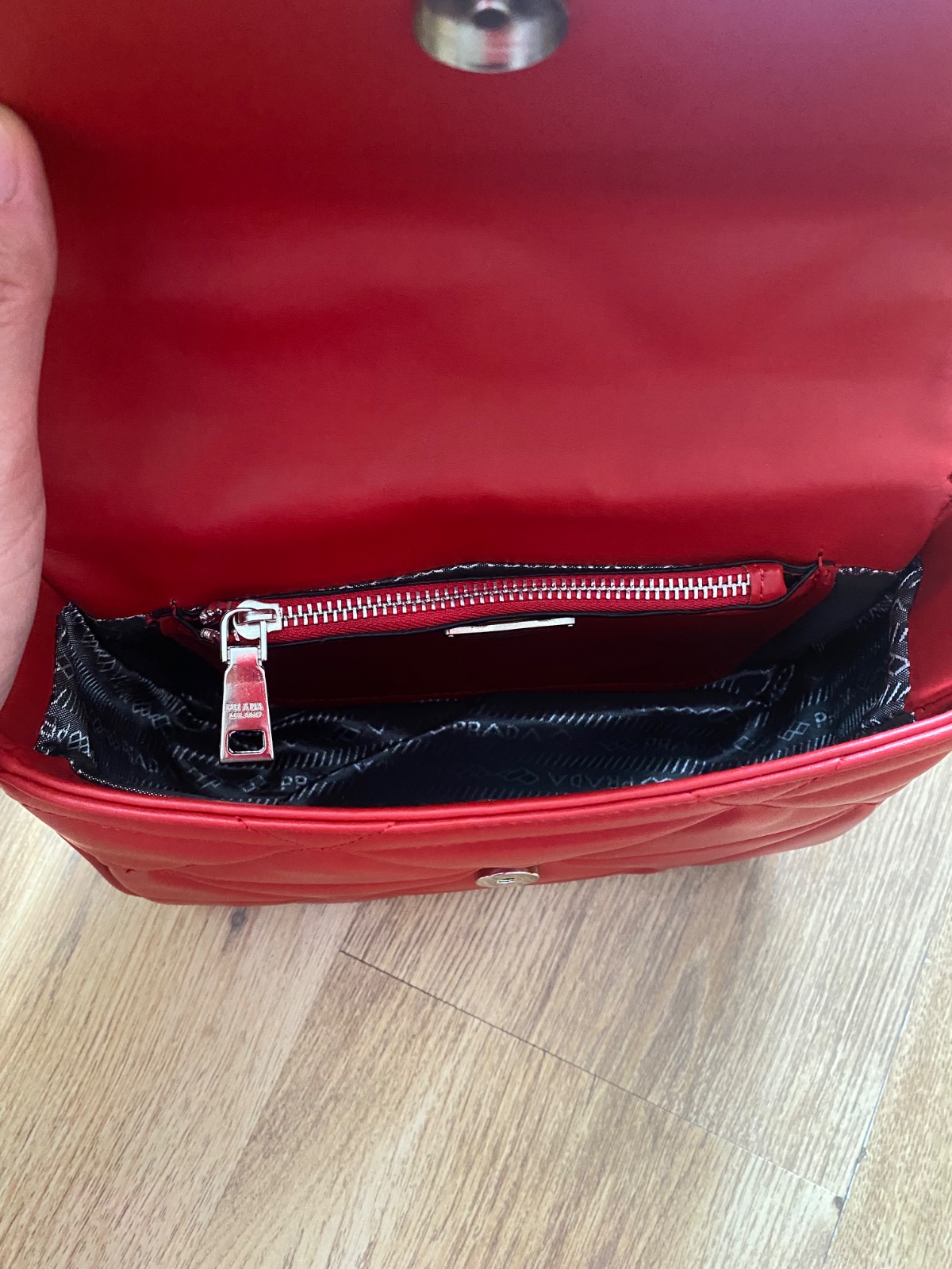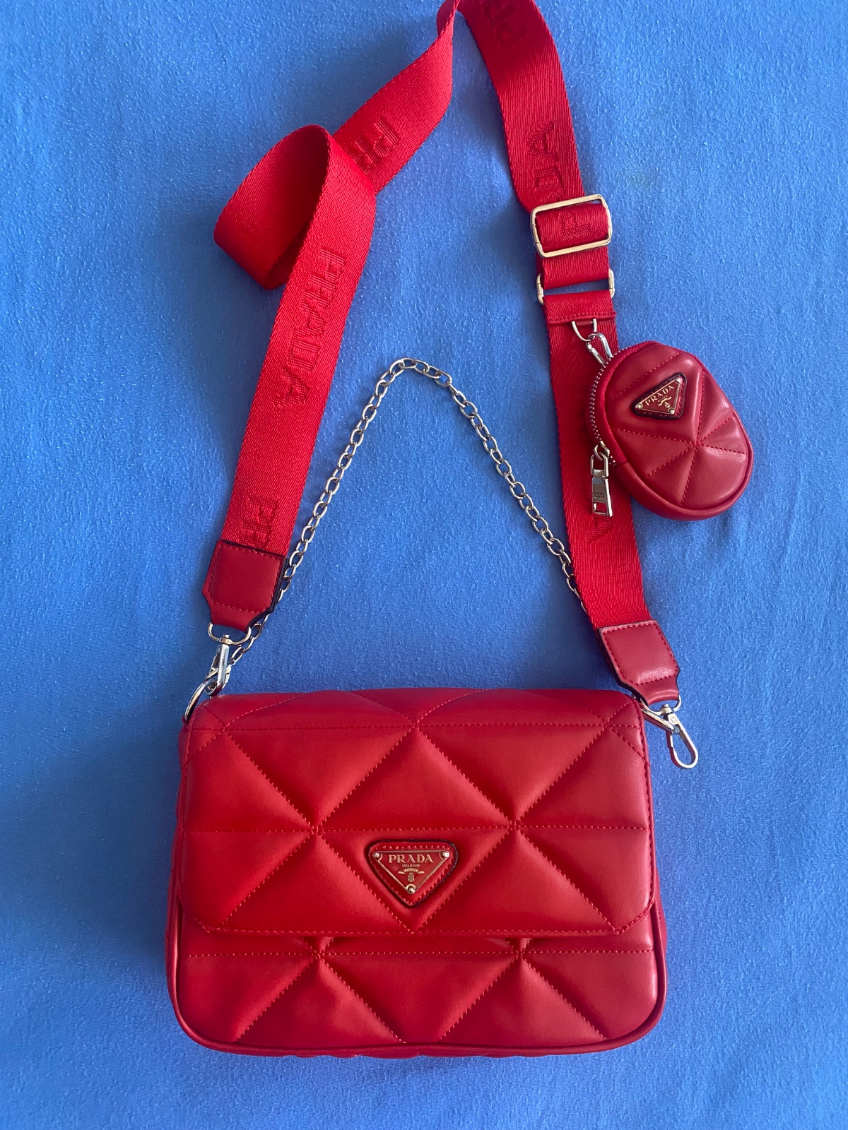 Nova nenosena crossbody kabelka cervena prada kozenkova v skutosnosti este krajsia.