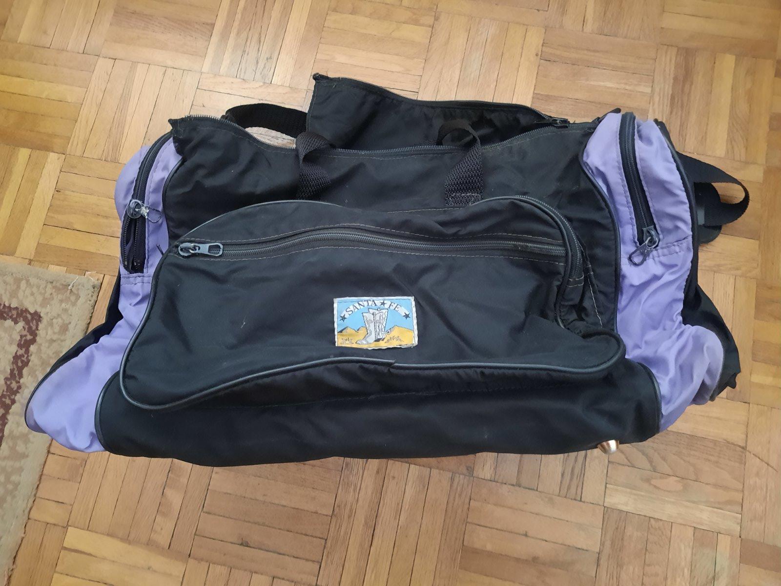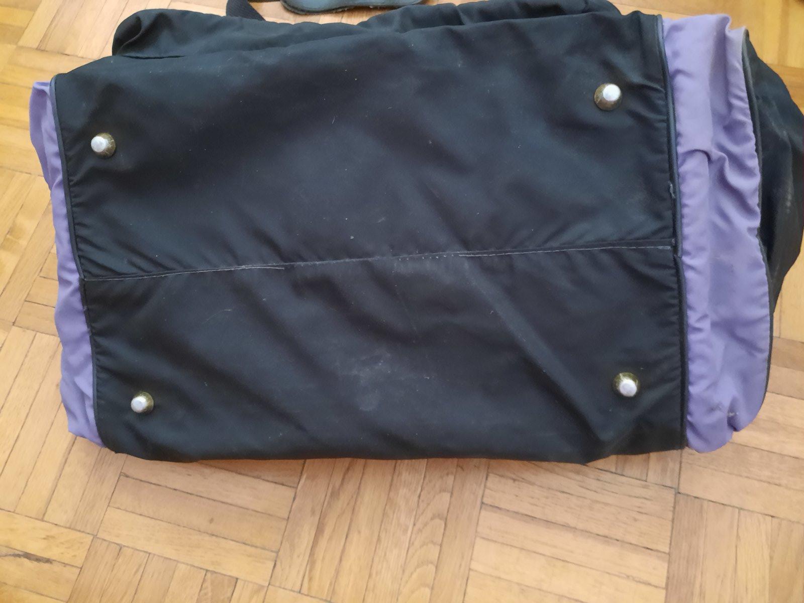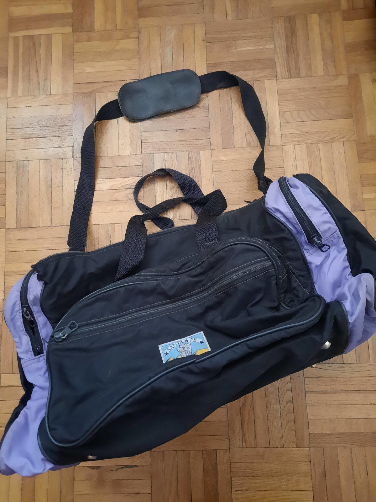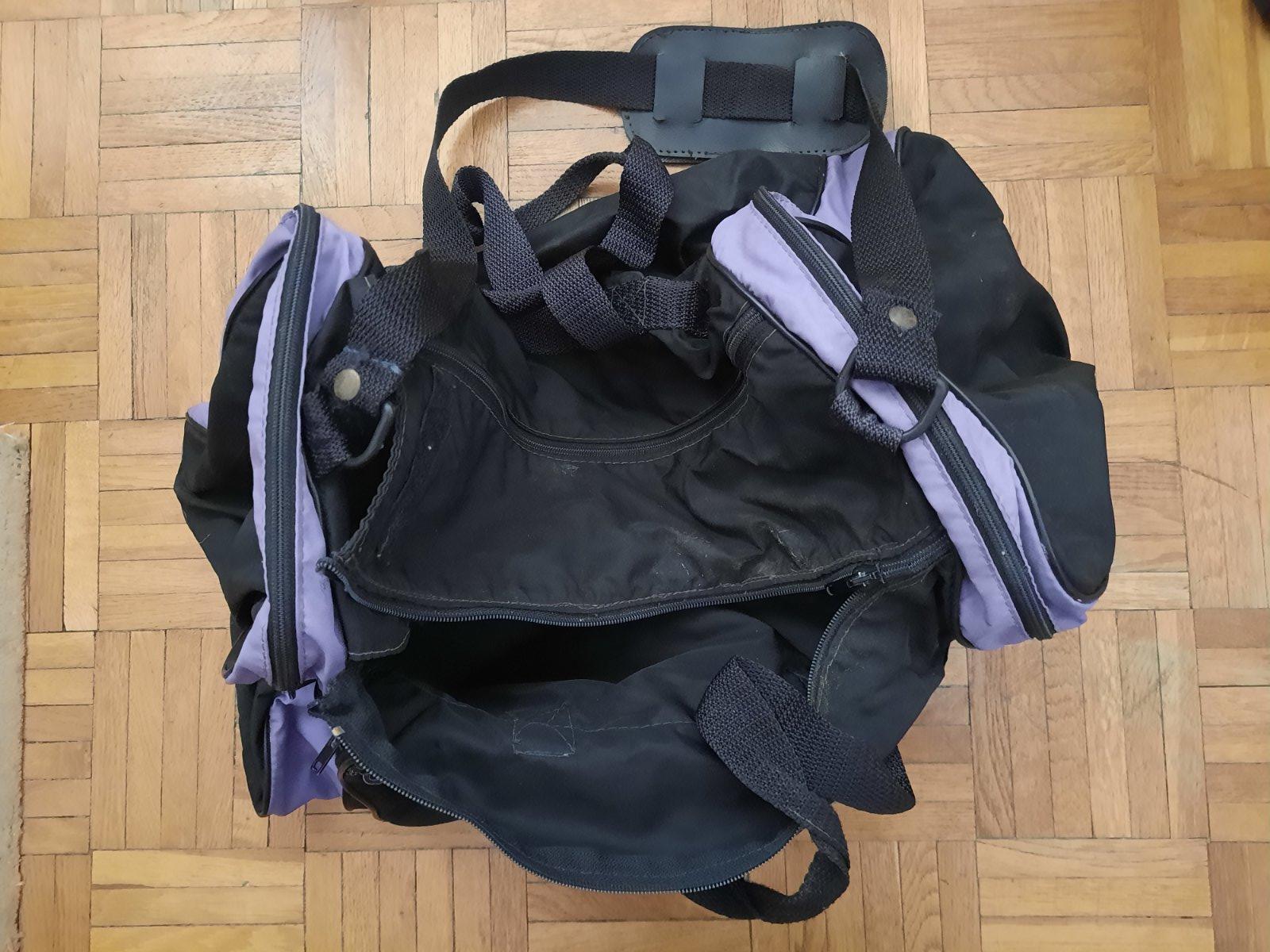 Predám stredne veľkú cestovnú tašku. Má veľa úložného priestoru, ktoré sa zapínajú na zips. V strede je veľký, 2 na bokoch, vpredu jeden väčší a jeden menší na doklady príp.niečo úzke. Poškodenie nemá, iba na 1 zipse chýba ten za čo sa dá chytiť. Má 2 malé úchytky do ruky+ 1 dlhý remienok na rameno.