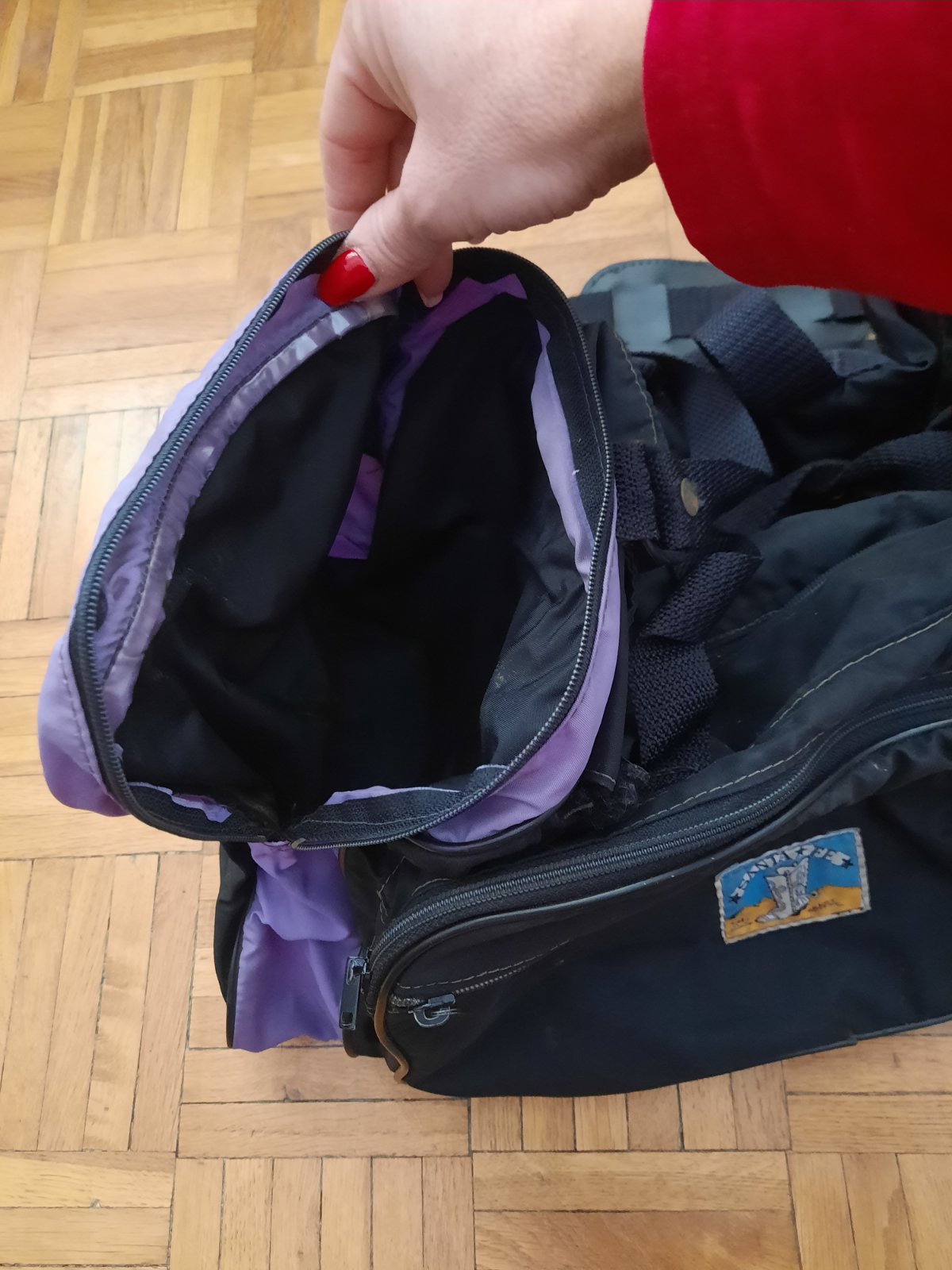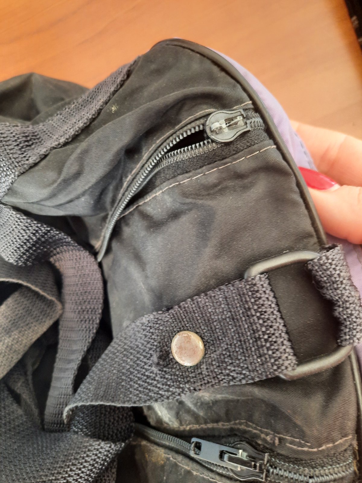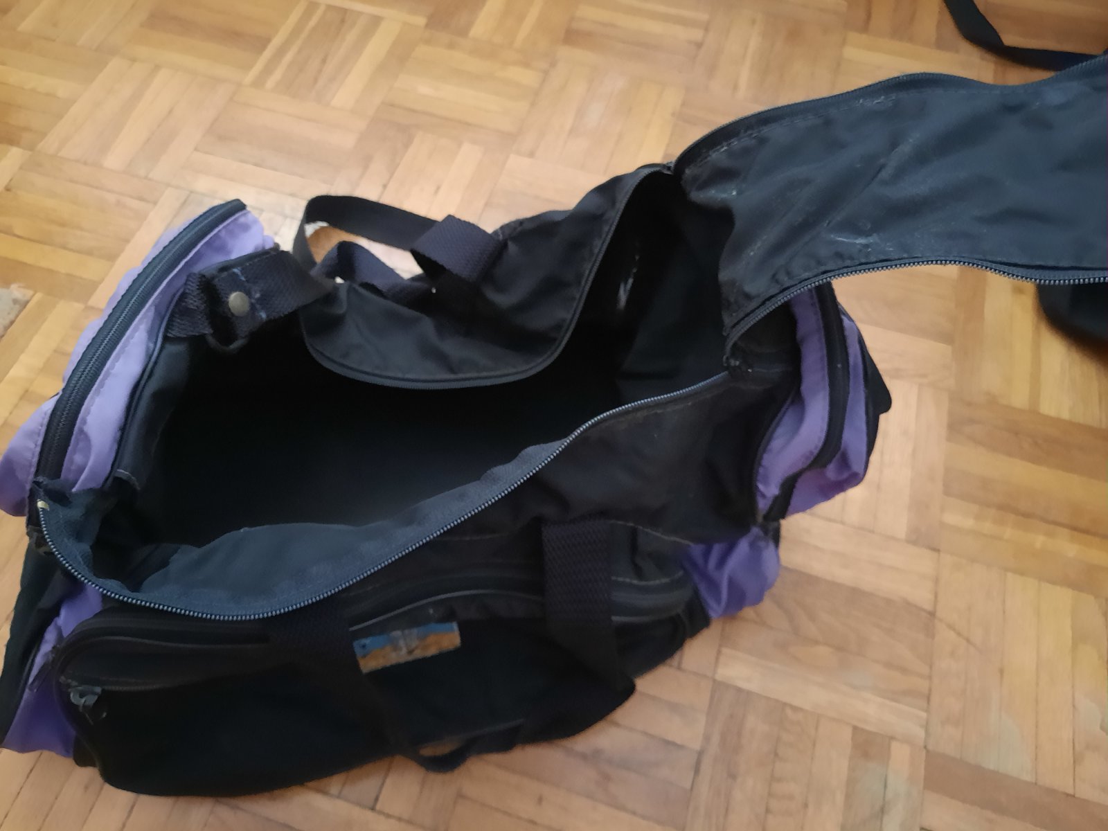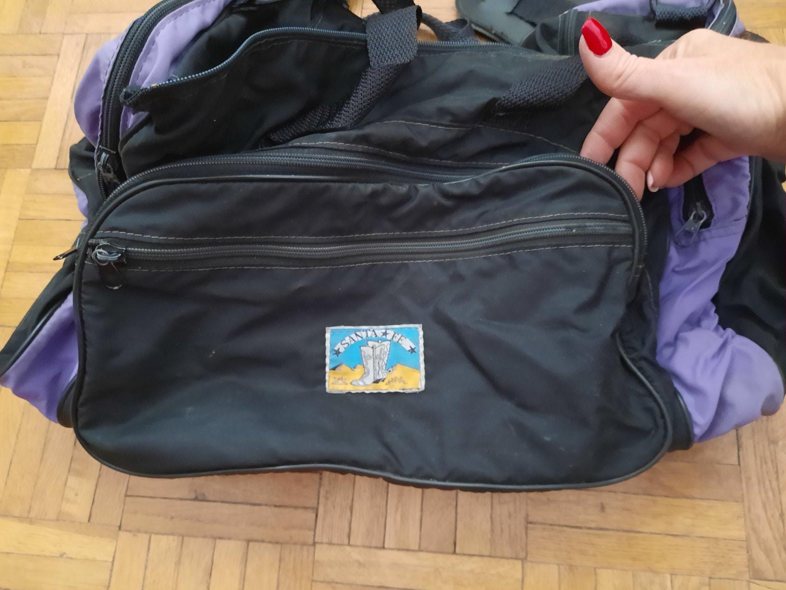 Predám stredne veľkú cestovnú tašku. Má veľa úložného priestoru, ktoré sa zapínajú na zips. V strede je veľký, 2 na bokoch, vpredu jeden väčší a jeden menší na doklady príp.niečo úzke. Poškodenie nemá, iba na 1 zipse chýba ten za čo sa dá chytiť. Má 2 malé úchytky do ruky+ 1 dlhý remienok na rameno.