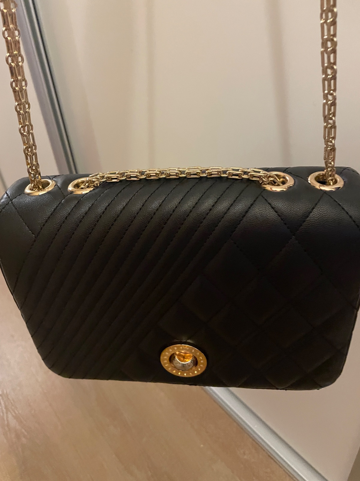 FURLA kabelka na rameno farba: čierna so zlatým kovaním materiál: koža rozmer: 35 x 30 cm