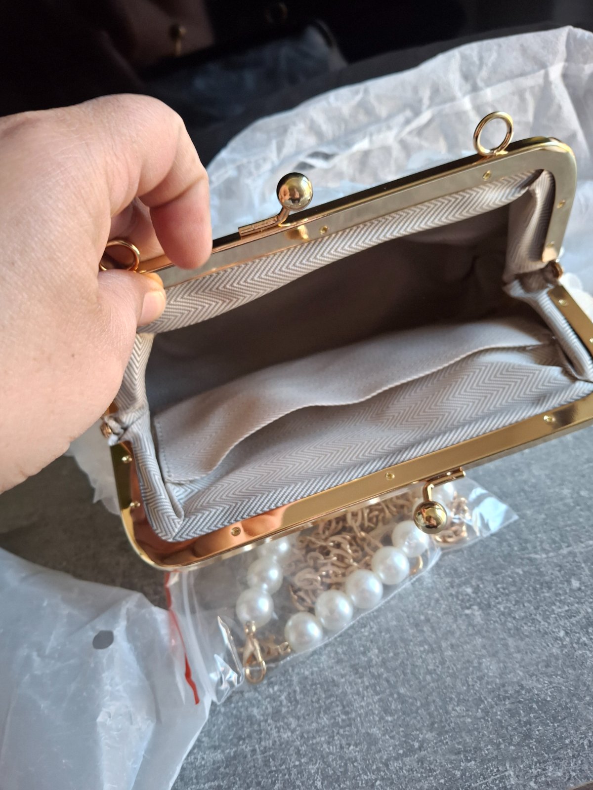 farba: jedna strana biela, druhá čierna so strieborným kovaním odopínateľný dĺžkovo nastaviteľný dlhý popruh + uško do ruky veľmi štýlový kúsok priemer kruhu 20 cm, hrúbka 9 cm materiál: neprav...