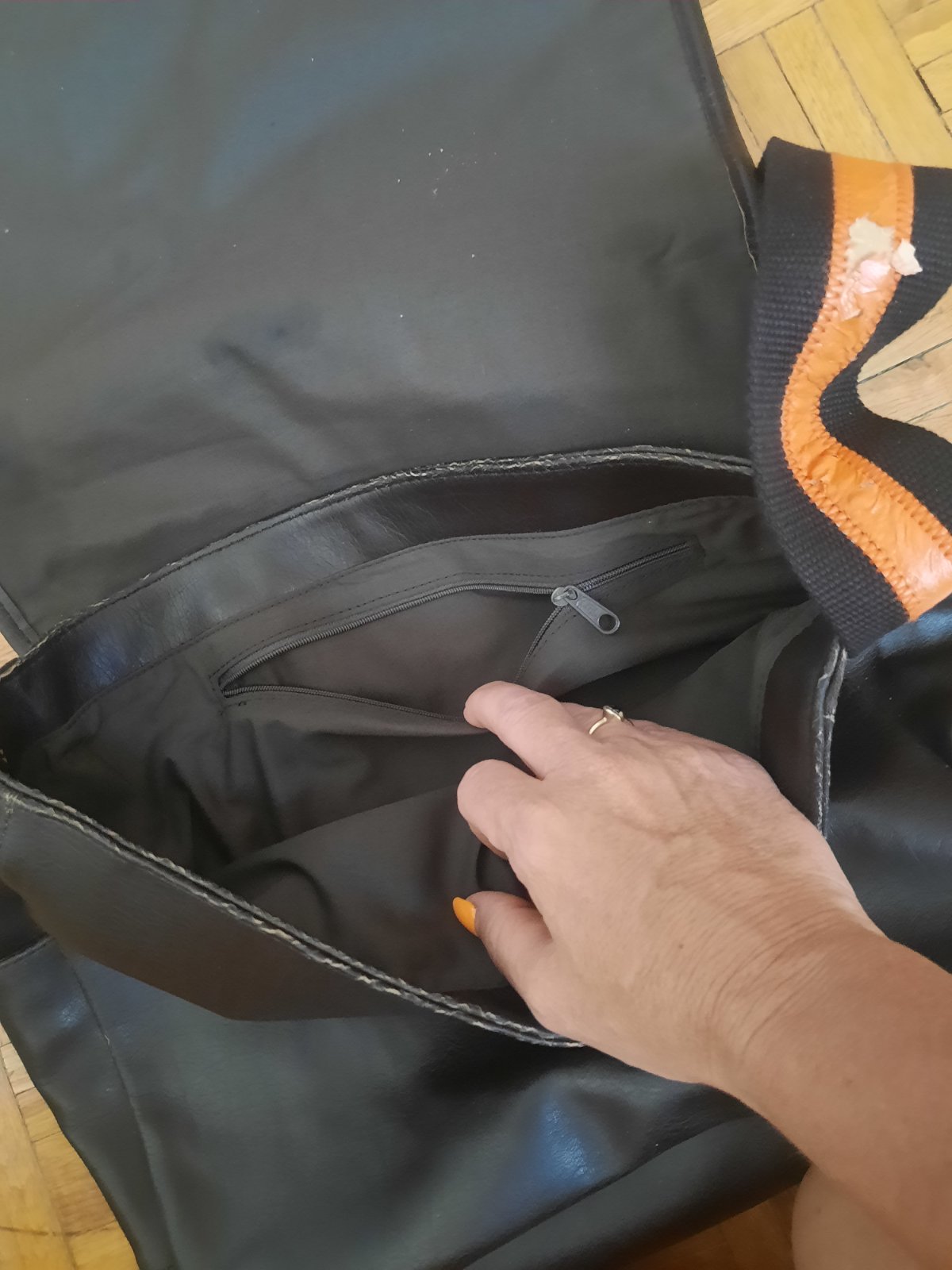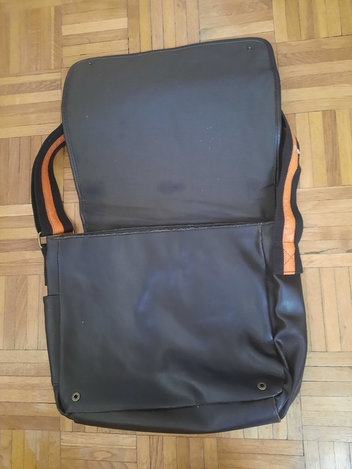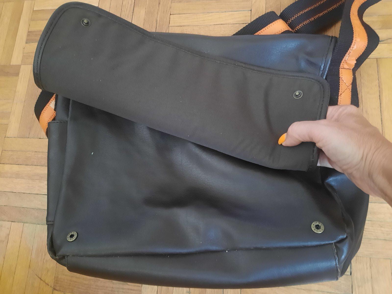 Predám väčšiu kabelu na plece. Remienko je nastaviteľné podľa potreby. Bola použitá max.2-3x potom už len stála v skrini. Super, mäkký materiál. Na boku z jednej strany je malý "vačok". Je vo veľmi dobrom stave, iba na remeni ten oranžový pás sa niekde olupuje.
