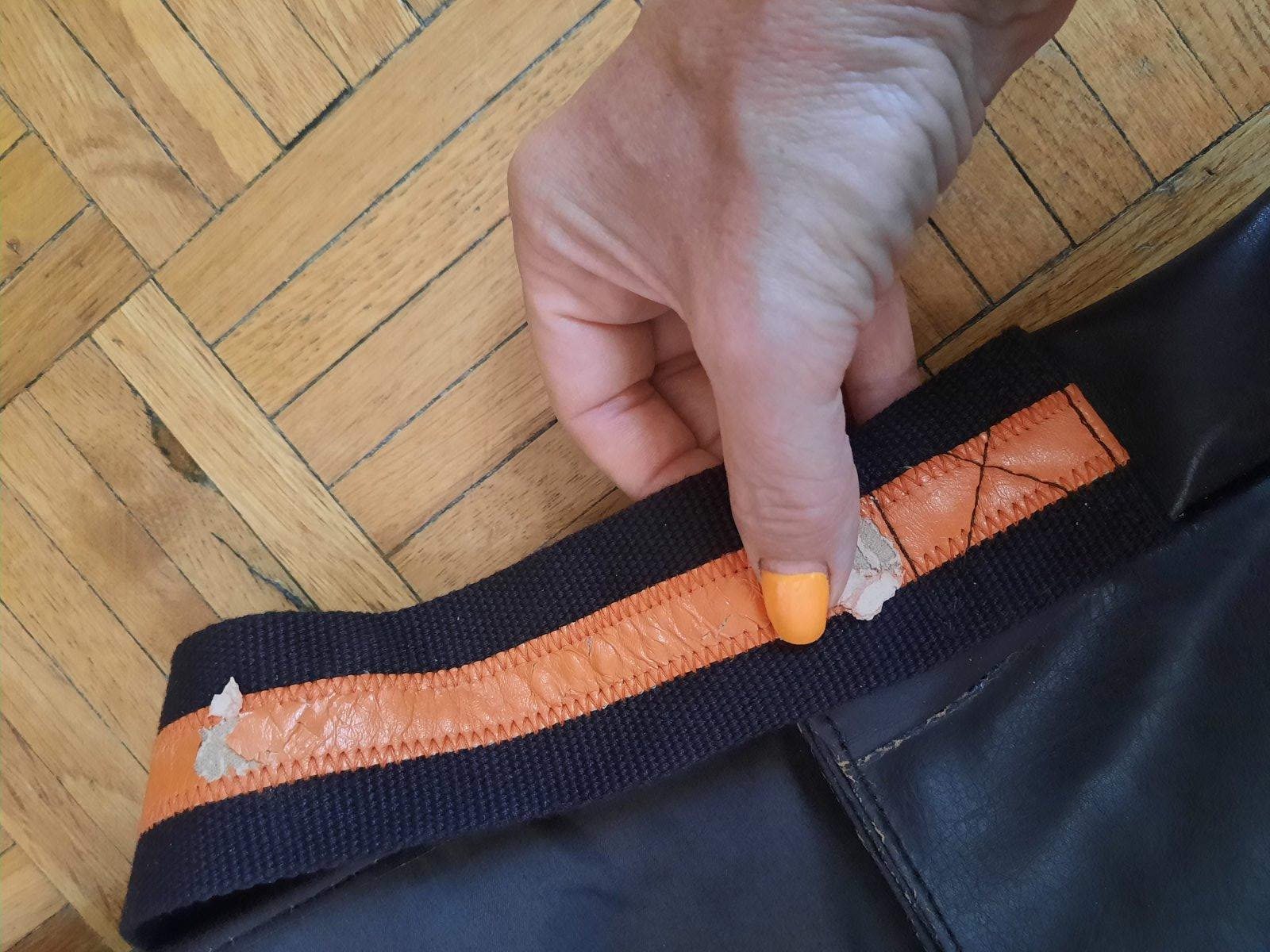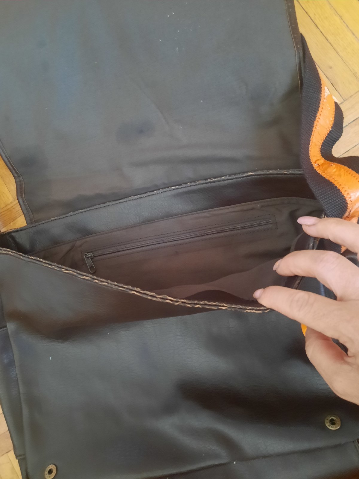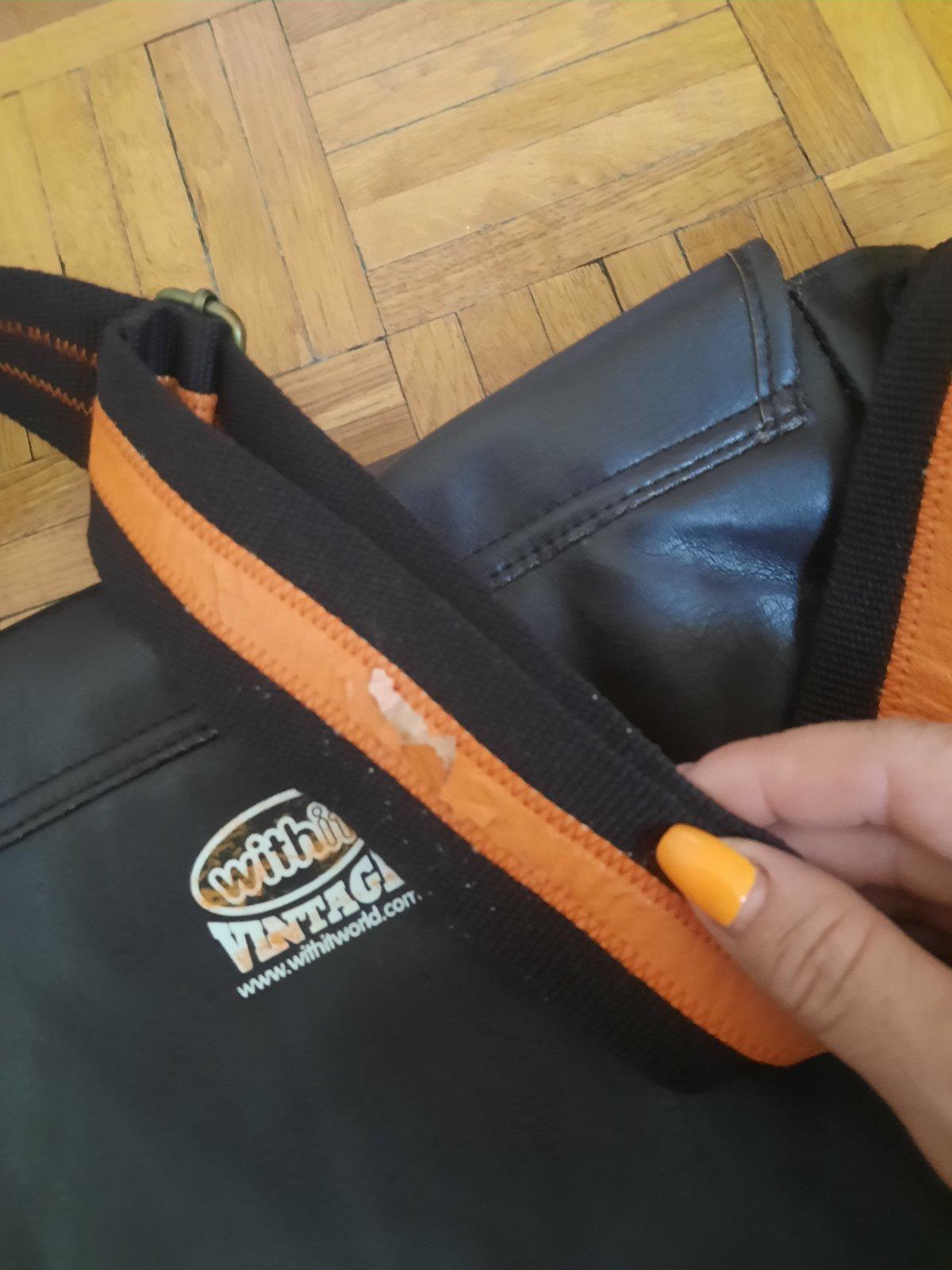 Predám väčšiu kabelu na plece. Remienko je nastaviteľné podľa potreby. Bola použitá max.2-3x potom už len stála v skrini. Super, mäkký materiál. Na boku z jednej strany je malý "vačok". Je vo veľmi dobrom stave, iba na remeni ten oranžový pás sa niekde olupuje.