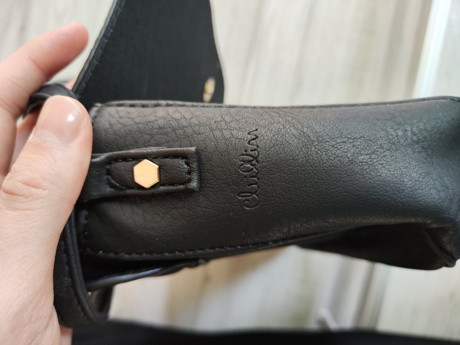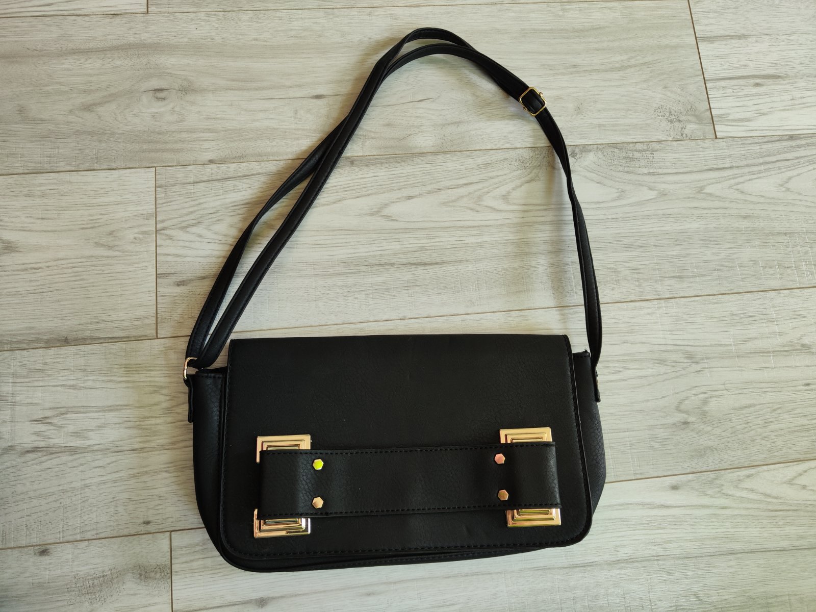 Kabelka so zlatými prvkami.