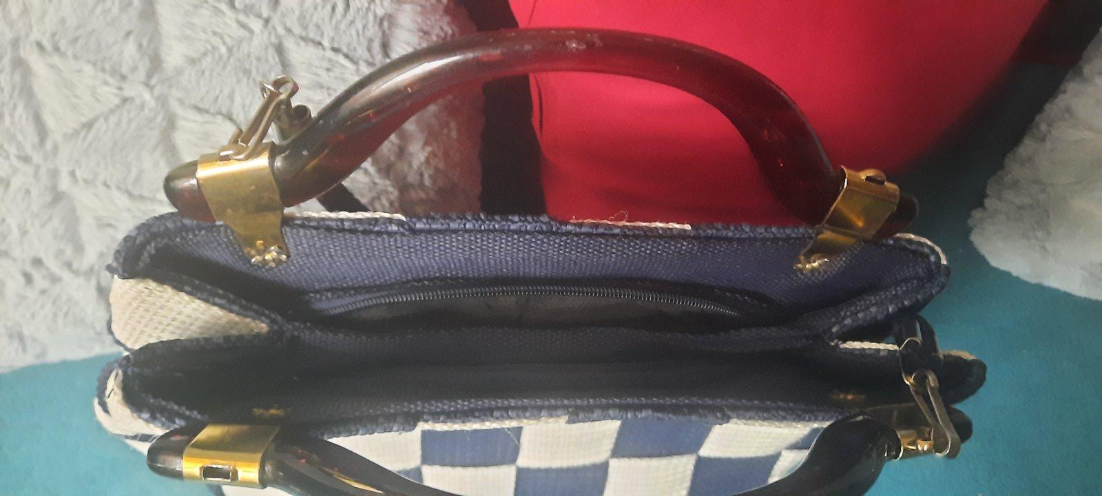 Predam kabelku, vzor sachovnica. Farba: tmavomodra , pekna modra, krajsia ako na obrazku a biela.