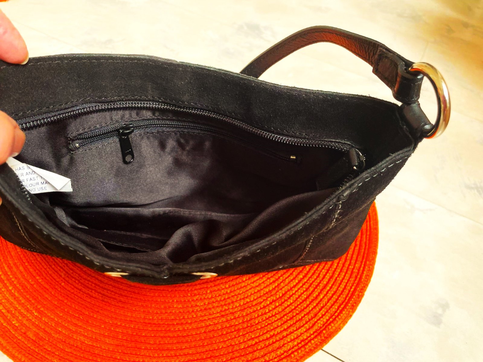 krásna celo kožená kabelka - vhodná aj do spoločnosti,na vrchu semišová úprava,možno použiť aj ako listovú kabelu,rúčka sa dá schovať a bude z nej listová kabela...top netuctový vzor,dnu vyfutrovaná saténom, kapsička na zipsík, a bočná kapsička,bez priehradok,28 x 17 cm, dno = 6 cm,rúčka = 62 cm