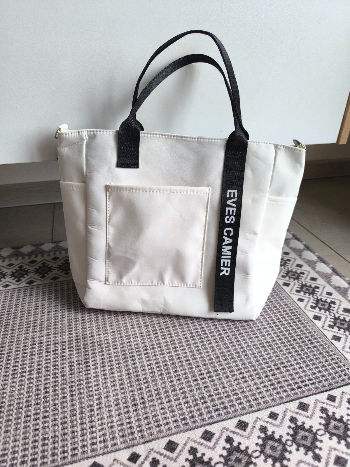 Priestranná kabelka do ruky, aj cez rameno s odopínateľným popruhom a dvomi bočnými priehradkami a priehradkou vpredu a vo vnútri, top stav, cena 7€.