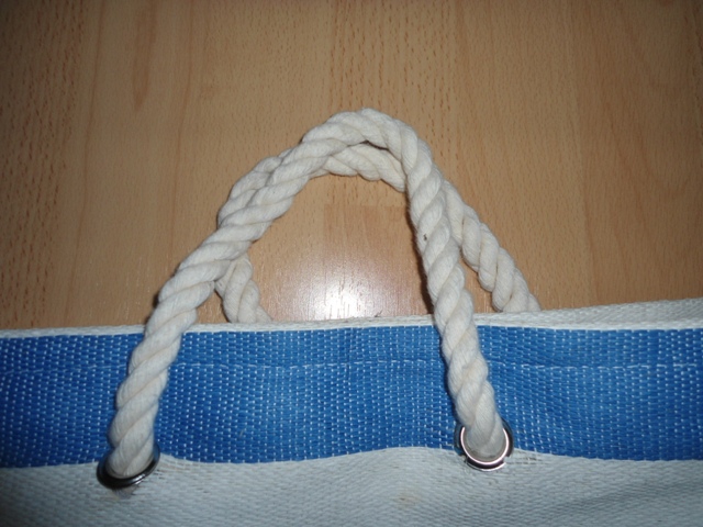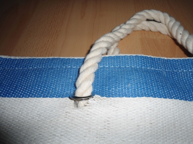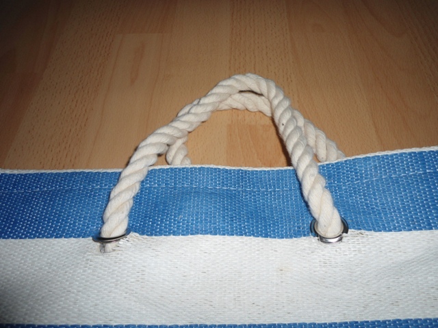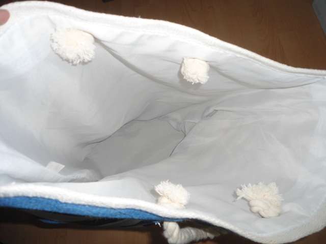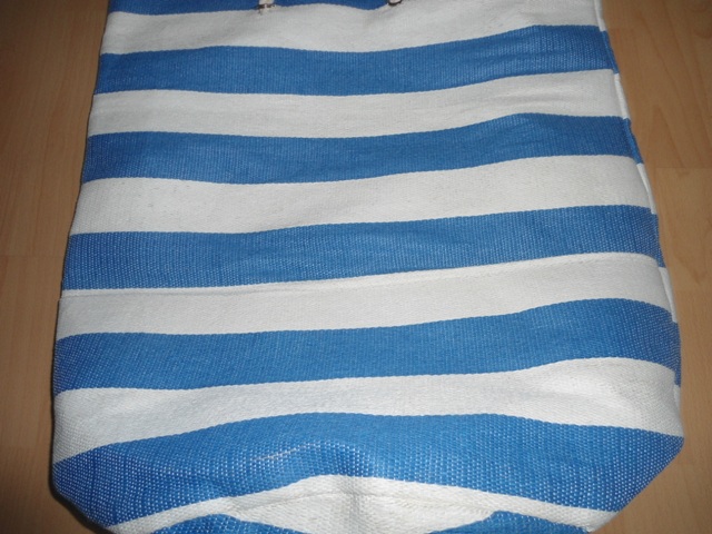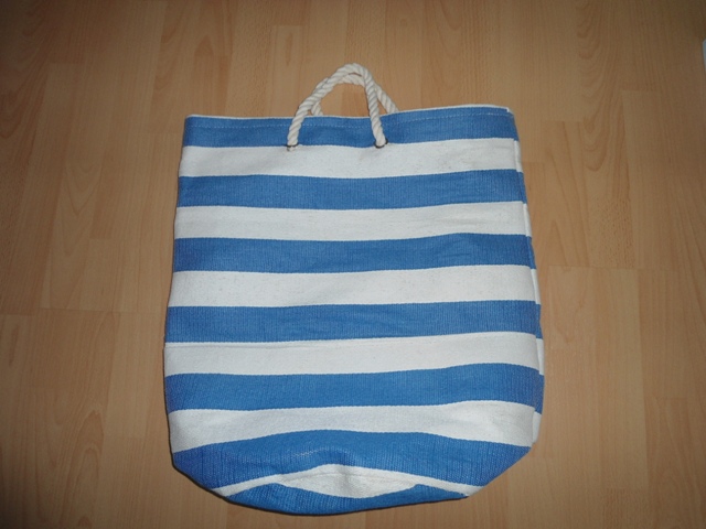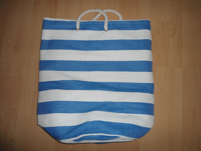 468a. velka bielo-modra plazova taska, vidno pouzivanie, no nie moc, stale velmi dobre sluzi, vo vnutri neroztrhana - vo vybornom stave, zvonku - foto, dlzka 54cm, sirka 53cm, rucka 16cm