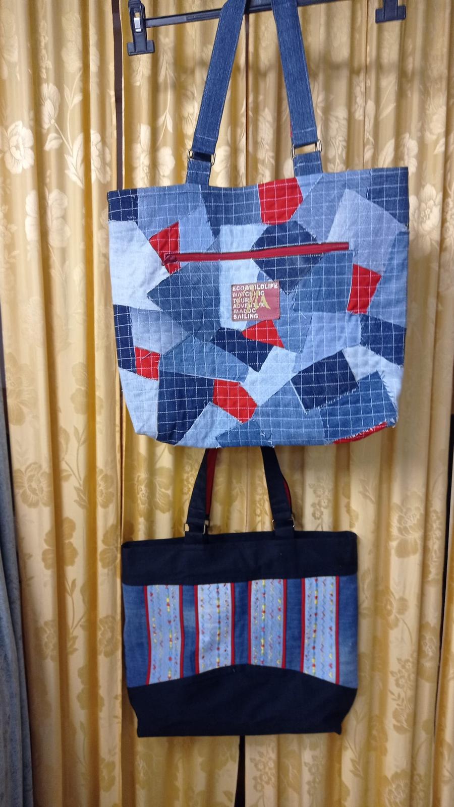 Vystužené v kombinácii koženka a bavlna poprípade nepremokavá látka.(podlepená - vystužená) Šírka 33 cm Výška 27 cm (merané v strede tašky) Hĺbka 10 cm Vo vnútri 2 vrecká. Z vonkajšej strany jedno ...