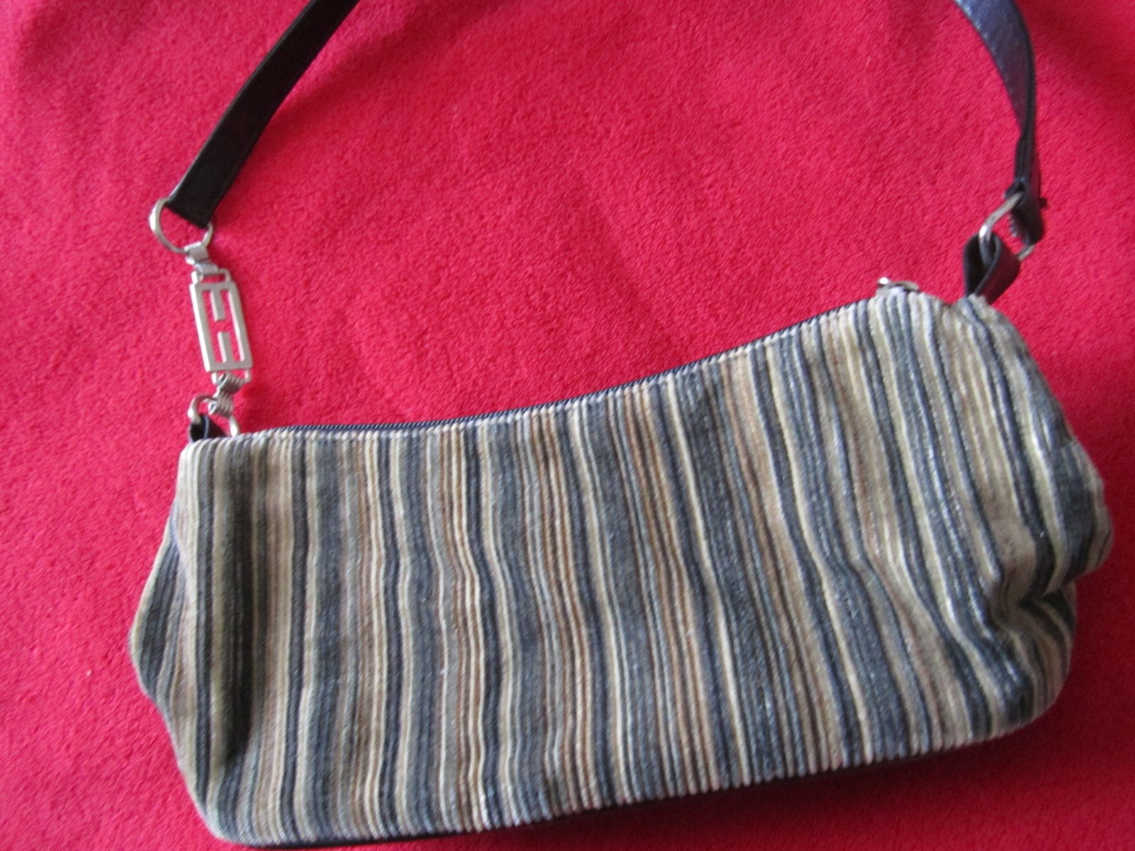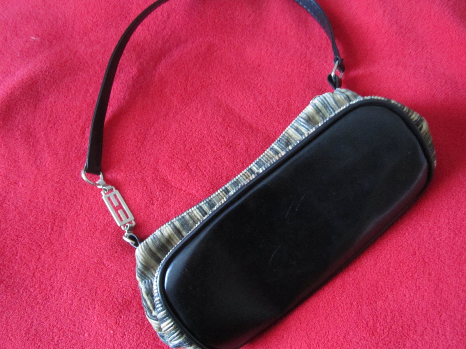 Kabelka v peknom nosenom stave,na zips,šírka-26cm,,výška-11cm a s ručkou-34cm,,je látková iba tá čierna časť je kožená-------------+ pošta
