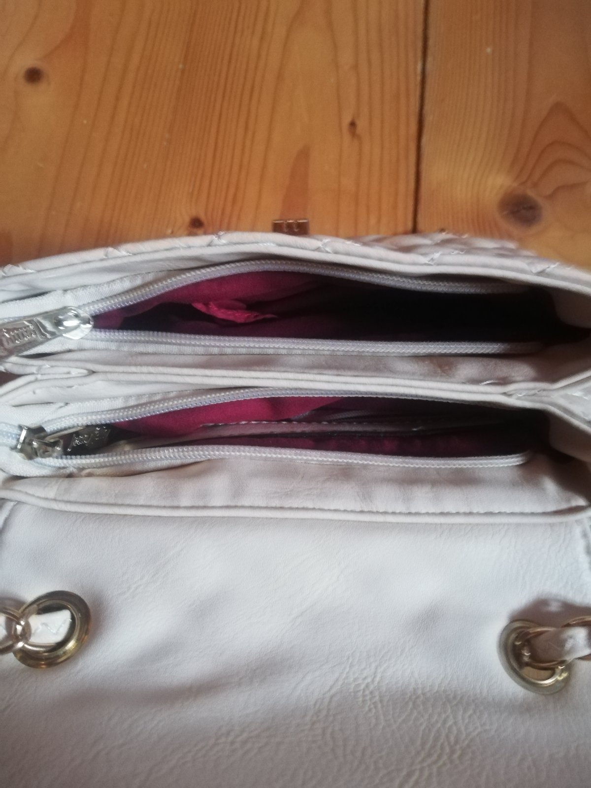 Raz vzatá, ako nová, nemá žiadne poškodenia, má jednu veľkú priehradku vo vnútri,bočnú priehradku vo vnútri a ešte dve priehradky vo vnútri na mobil,resp.vreckovky..ešte má priehradku na zadnej str...