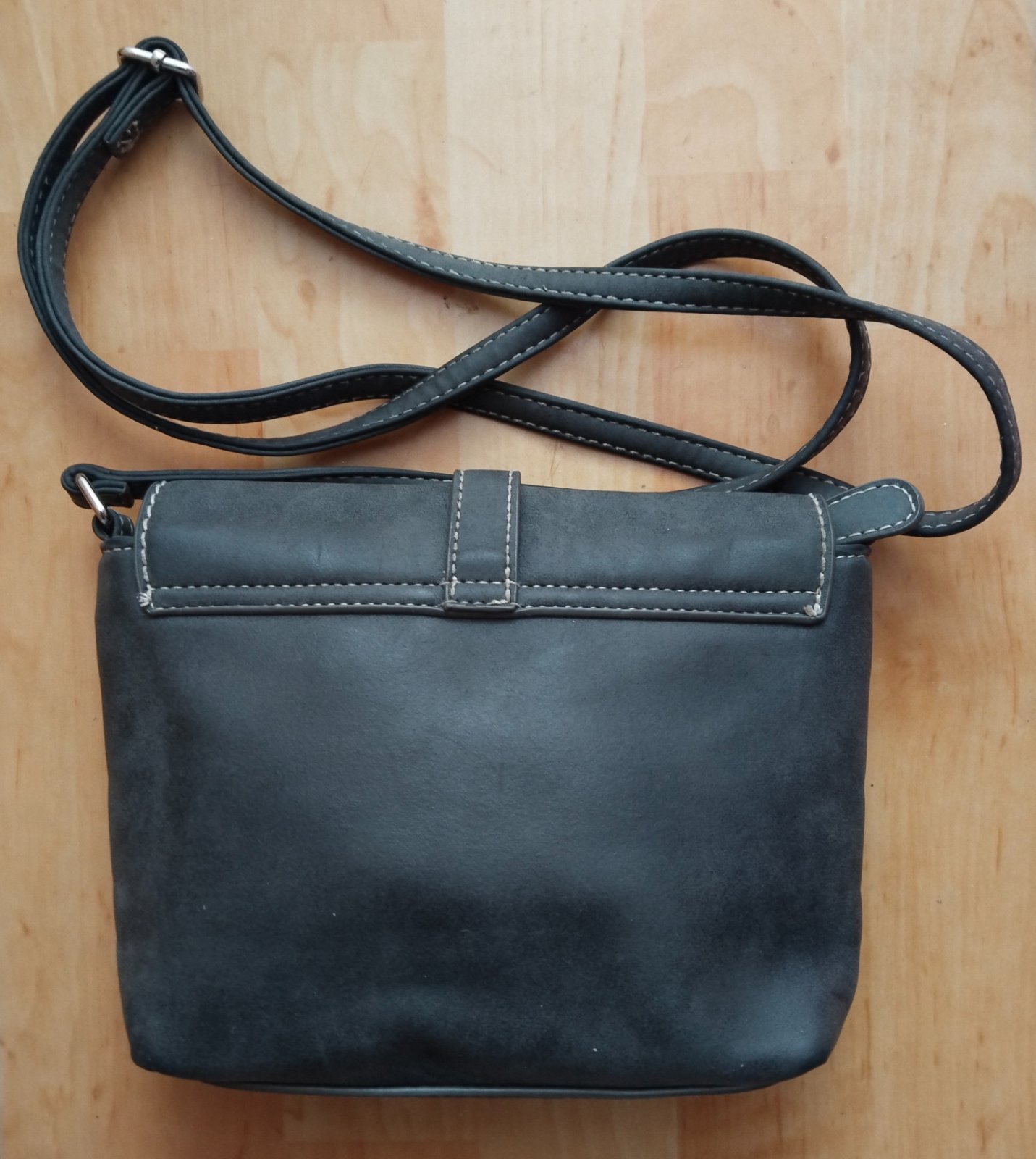 Predám kabelku v dobrom stave, malých rozmerov šírka x výška x hĺbka sú 18cm x 14,5cm x 5,5cm. Vnútro kabelky sa zapína zipsom a obsahuje menšie vrecko na zips a ešte jedno bez zapínania. Mimo hlavného priestoru kabelky je ďalšie vrecko bez zipsu, ktoré je zakryté vrchom kabelky, ktorý je na magnetické zapínanie.