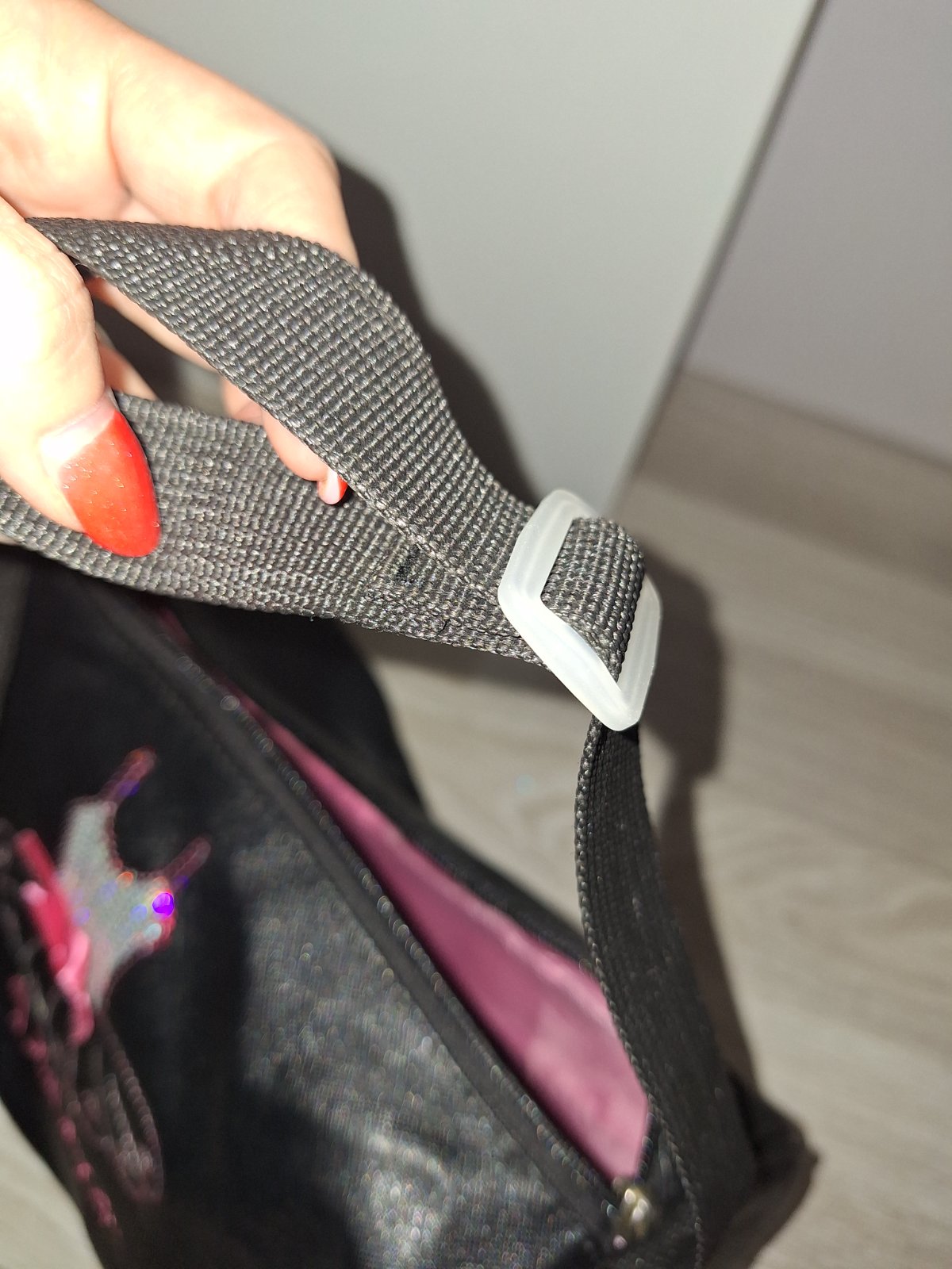 Koženková taška na tanečný krúžok (balet, gynnastiku, latino, ....) Bez poškodení, iba chýba úchytka na zips, dá sa dokúpiť v galantérii za drobné. Má trblietavú aplikáciu. Rúčka sa dá nastavovať podľa výšky. Tvar tašky = valec.